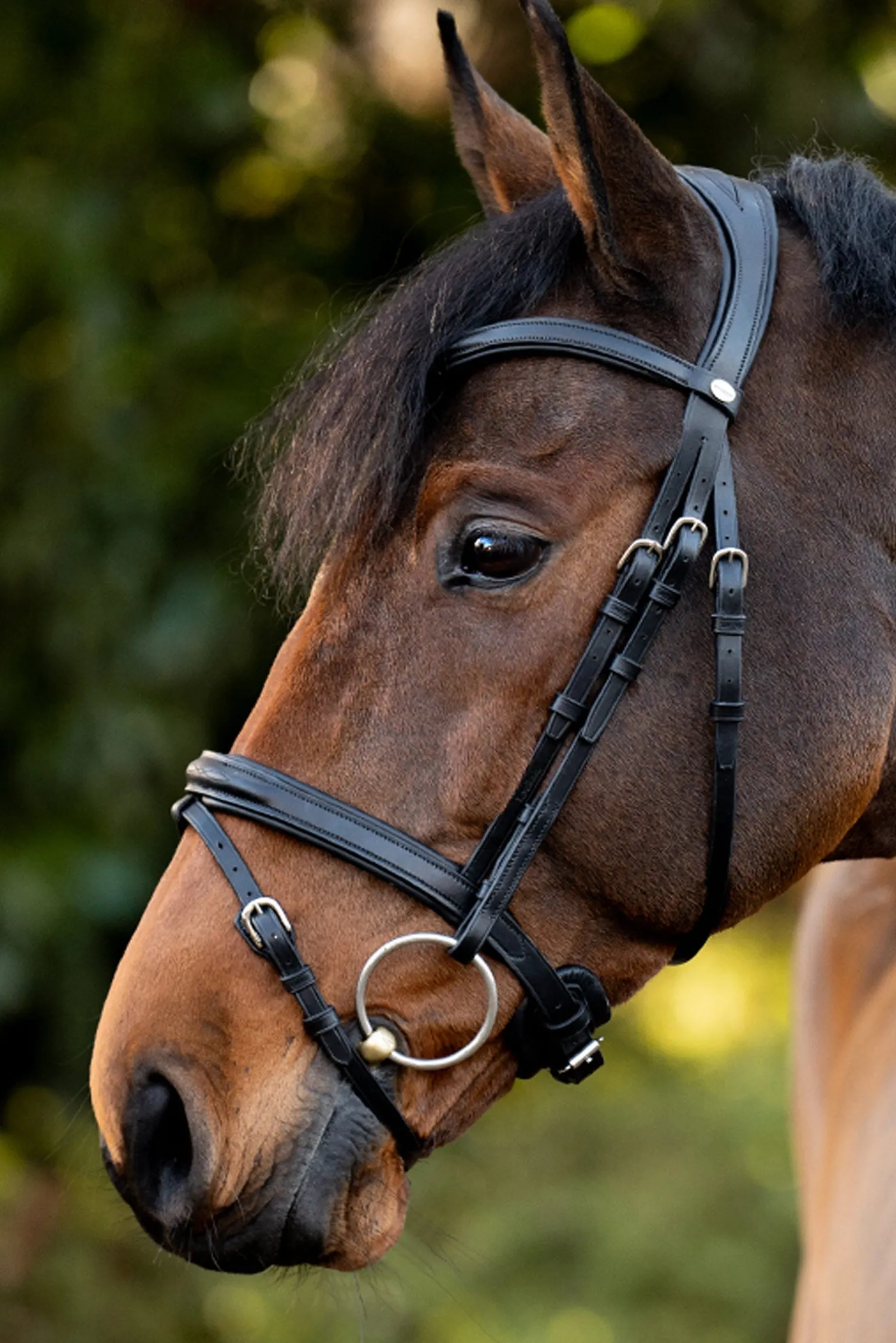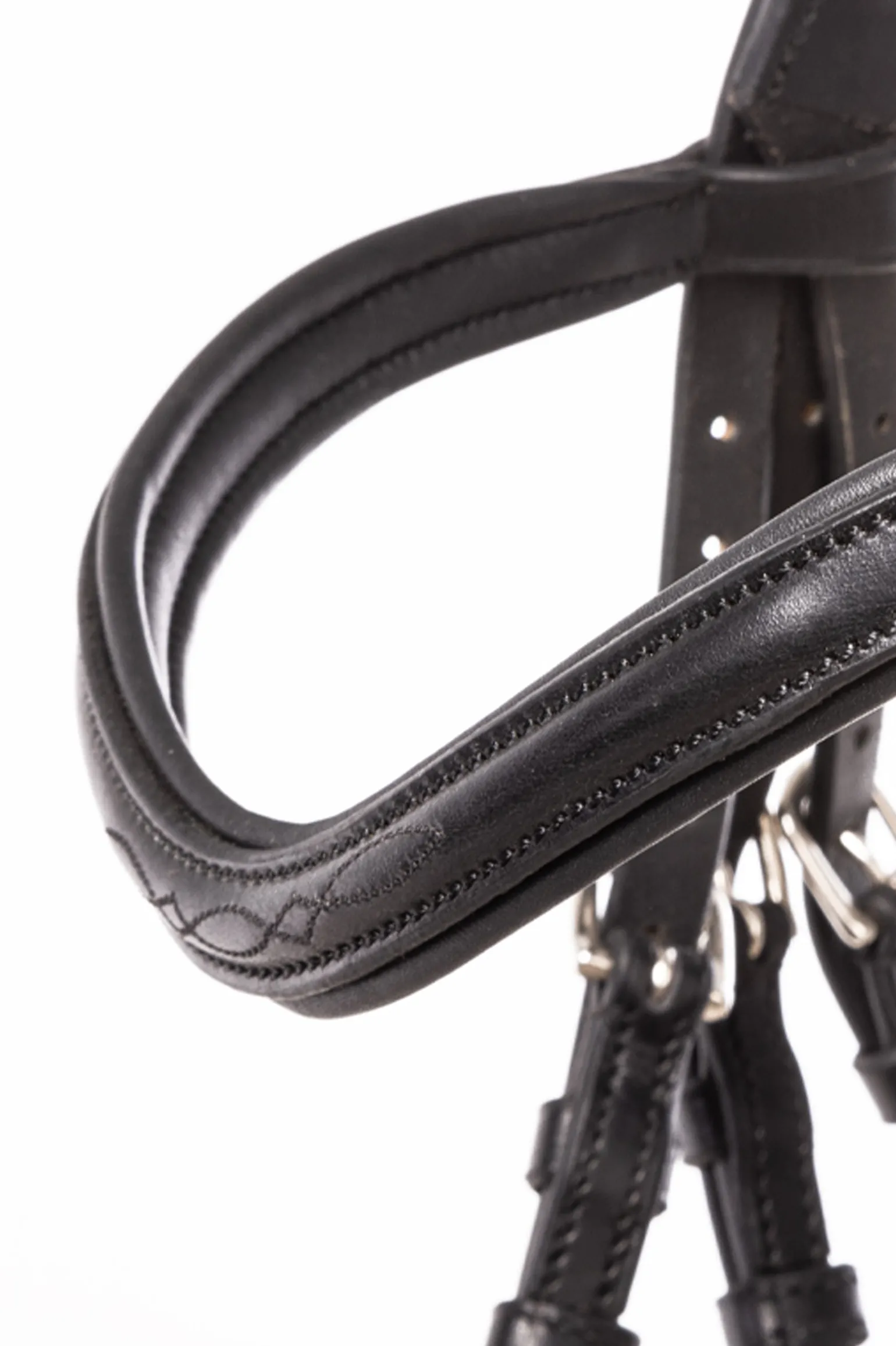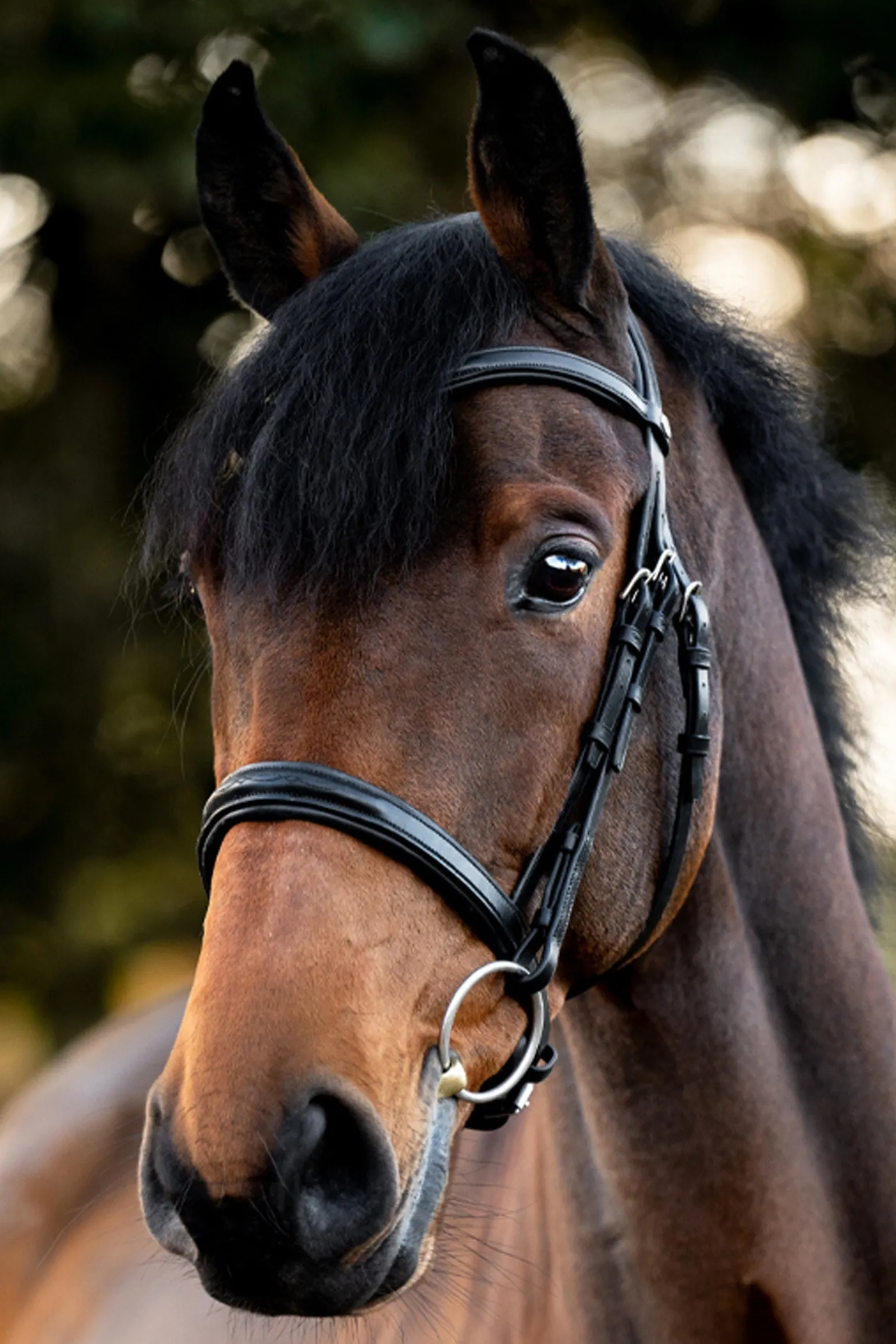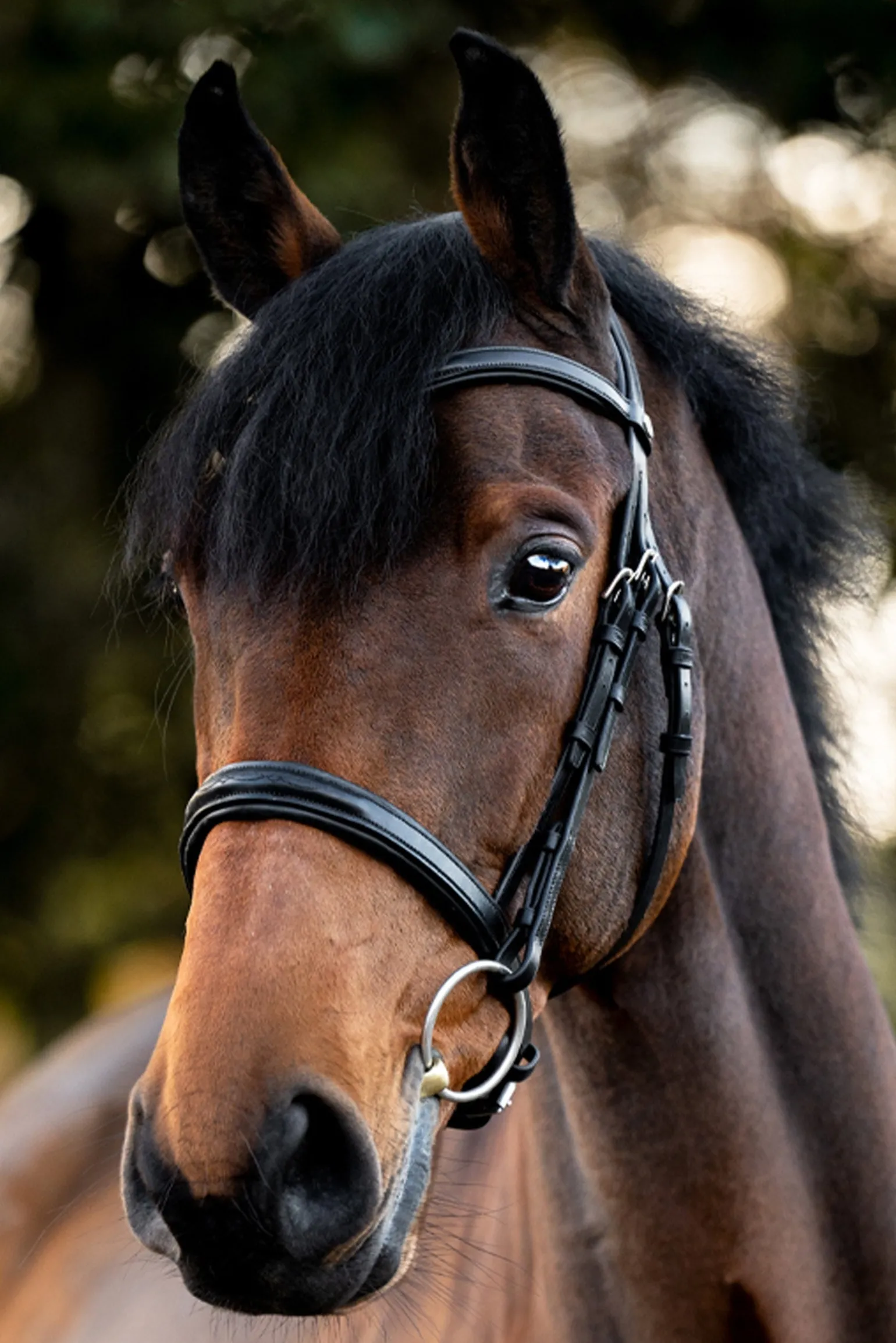 Die Dressurtrense Robin besteht aus hochwertigem deutschen Qualitätsleder sowie einem besonders weichen Genickstück, welches stark anatomisch geformt ist mit Einschnitt. Die weiche Polsterung vom Nasenriemen und Stirnband bieten ebenfalls einen besonderen Komfort für das Pferd. Das Reithalfter ist beidseitig verstellbar. Der Trensenzaum wird ohne Zügel geliefert.