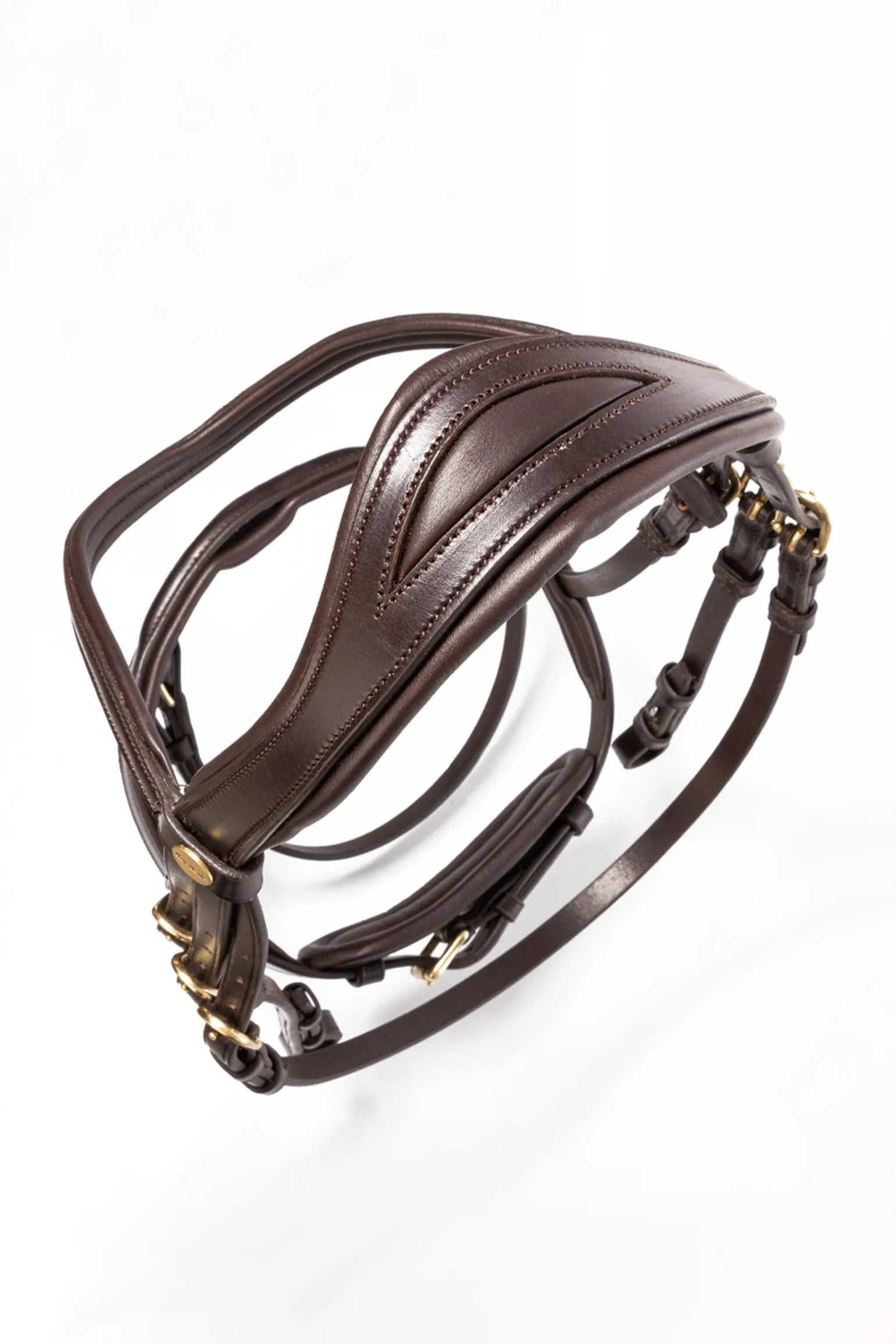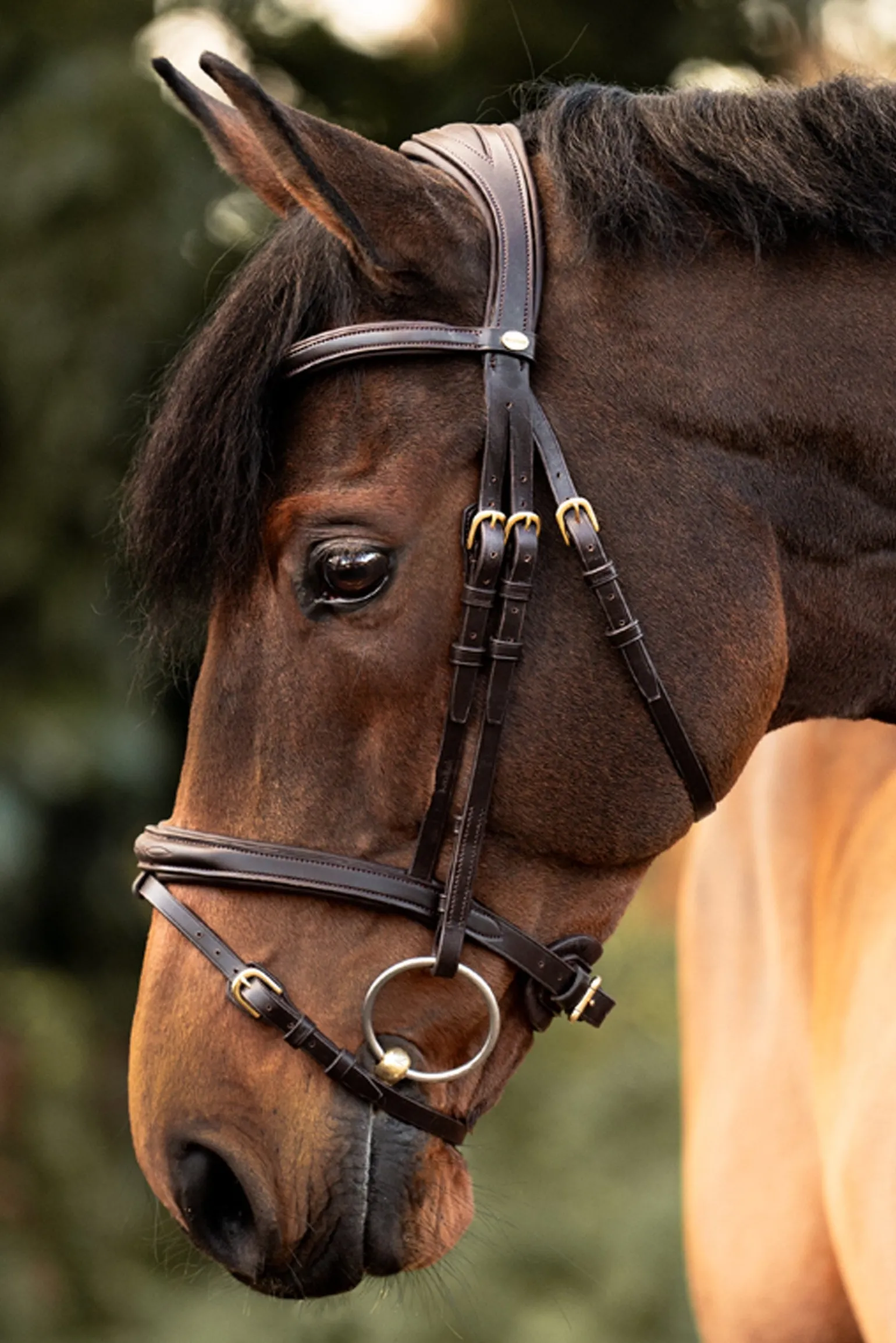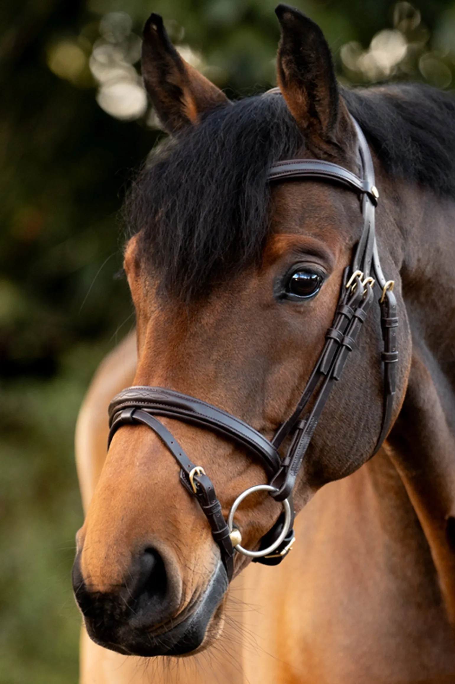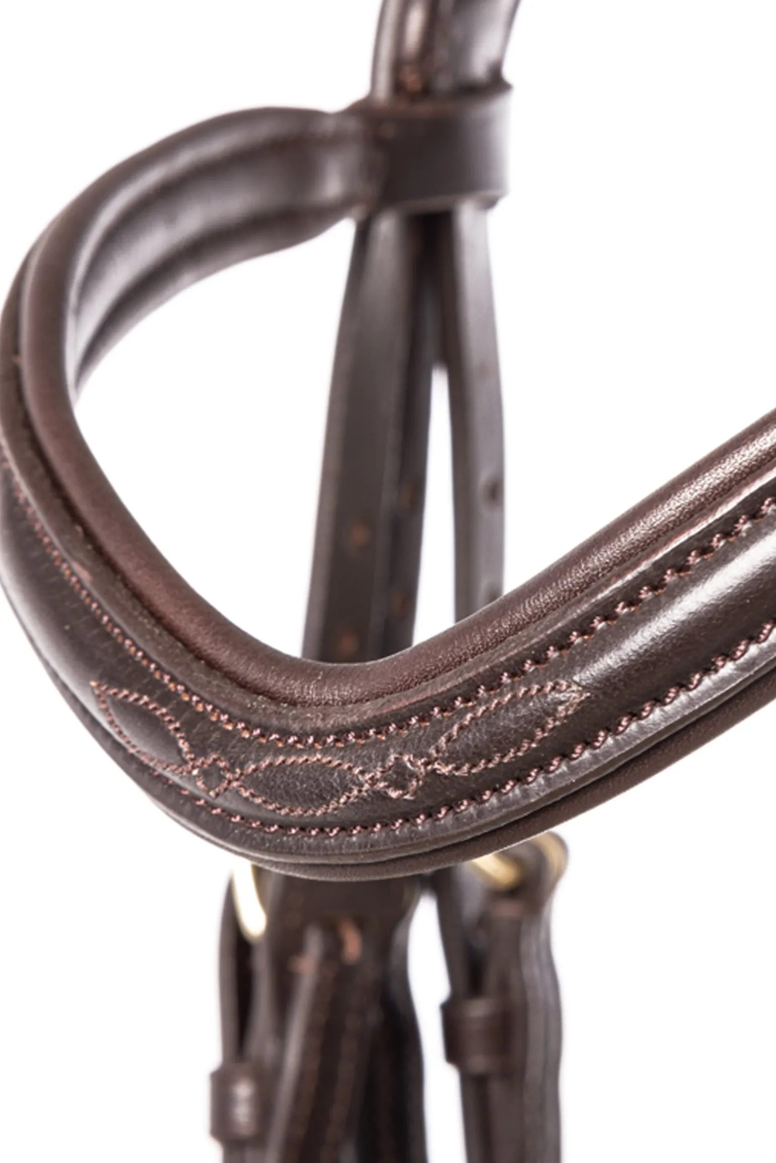 Die Dressurtrense Robin besteht aus hochwertigem deutschen Qualitätsleder sowie einem besonders weichen Genickstück, welches stark anatomisch geformt ist mit Einschnitt. Die weiche Polsterung vom Nasenriemen und Stirnband bieten ebenfalls einen besonderen Komfort für das Pferd. Das Reithalfter ist beidseitig verstellbar. Der Trensenzaum wird ohne Zügel geliefert.