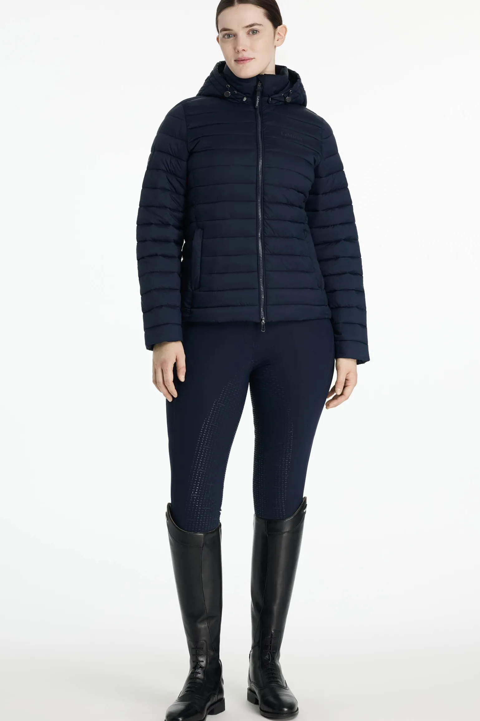 Diese leichte Steppjacke ist mit recycelter Füllung isoliert, die auch bei Nässe leicht bleibt und im Mantel nicht herunterrutscht oder sich zusammenballt. Das wasserabweisende Außenmaterial ist ideal für leichten Regen, während die Windschutzbündchen aus Stretchmaterial die Zugluft abhalten. Ein Zwei-Wege-Reißverschluss vorne ist ideal für den Reitkomfort. Seitentaschen mit Reißverschluss und eine Innentasche mit Reißverschluss bieten viel Platz für deine Essentials. Eine abnehm- und verstellbare Kapuze bietet Flexibilität für Tage, an denen Regen zu erwarten ist. Fällt regulär aus. Wenn du eine großzügigere Passform wünschst, empfehlen wir, eine Nummer größer zu wählen.