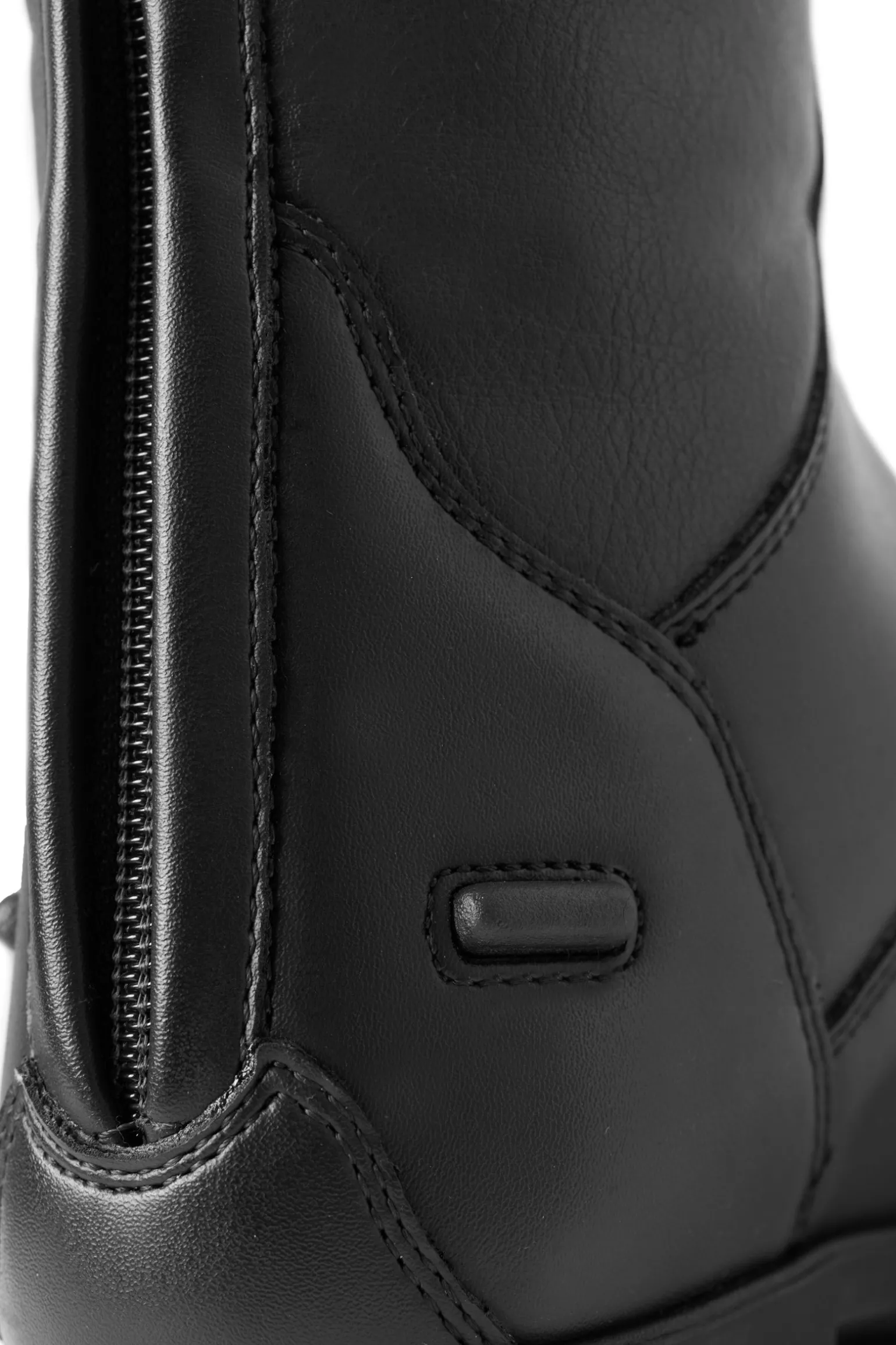 Diese Reitstiefel bestehen aus weichem synthetischem Leder mit atmungsaktivem Mesh Futter. Die elastischen Schnürsenkel sehen klassisch aus, während ein Reißverschluss hinten das Anziehen erleichtert. Eine bequeme Sohle sorgt dafür, dass Kinder die Stiefel den ganzen Tag lang tragen können – im Sattel, Paddock oder im Stall. Das klassische Design ist zeitlos und passt perfekt zu den Outfits junger Reiter.