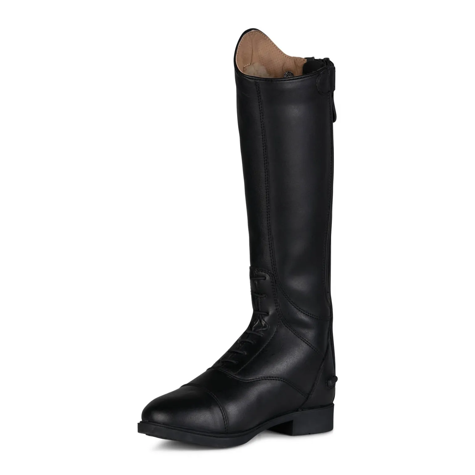 Diese Winterreitstiefel bestehen aus weichem synthetischem Leder mit warmem Winterfutter. Die elastischen Schnürsenkel sehen klassisch aus, während der Reißverschluss auf der Rückseite einen einfachen Einstieg ermöglicht und ein Druckknopf sicher schließt. Die bequeme Sohle macht sie den ganzen Tag lang tragbar – im Sattel, auf der Koppel oder im Stall. Der klassische Stil ist zeitlos und passt perfekt zu den Outfits kleiner Reiter.