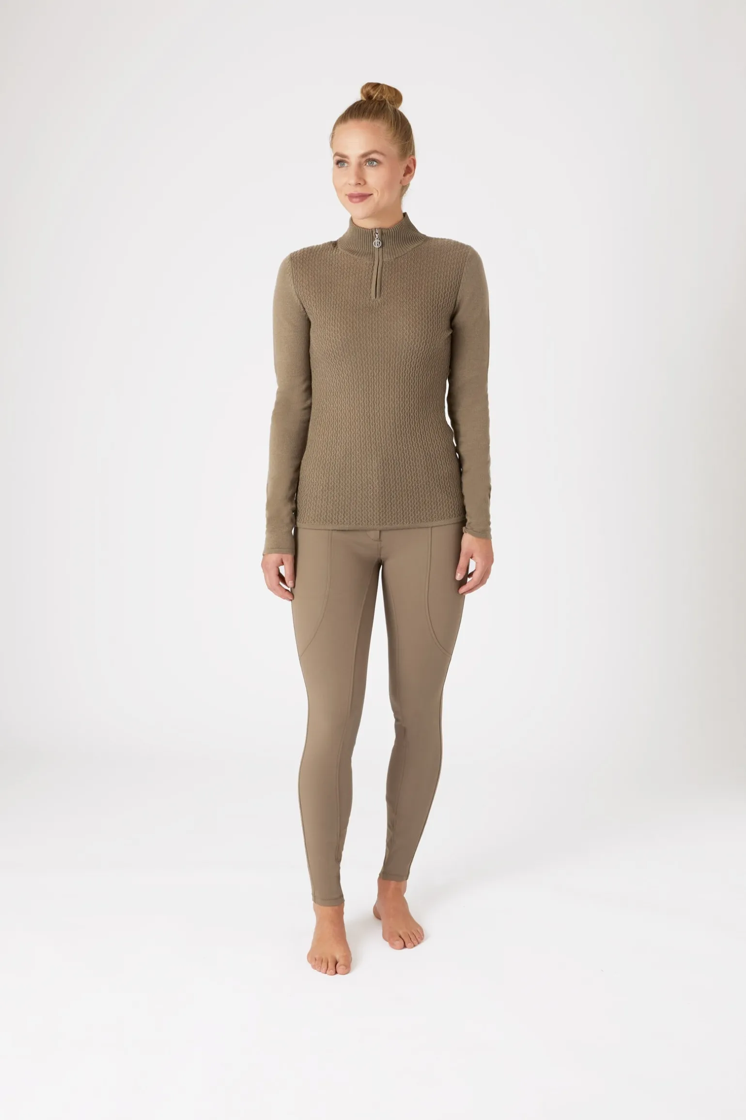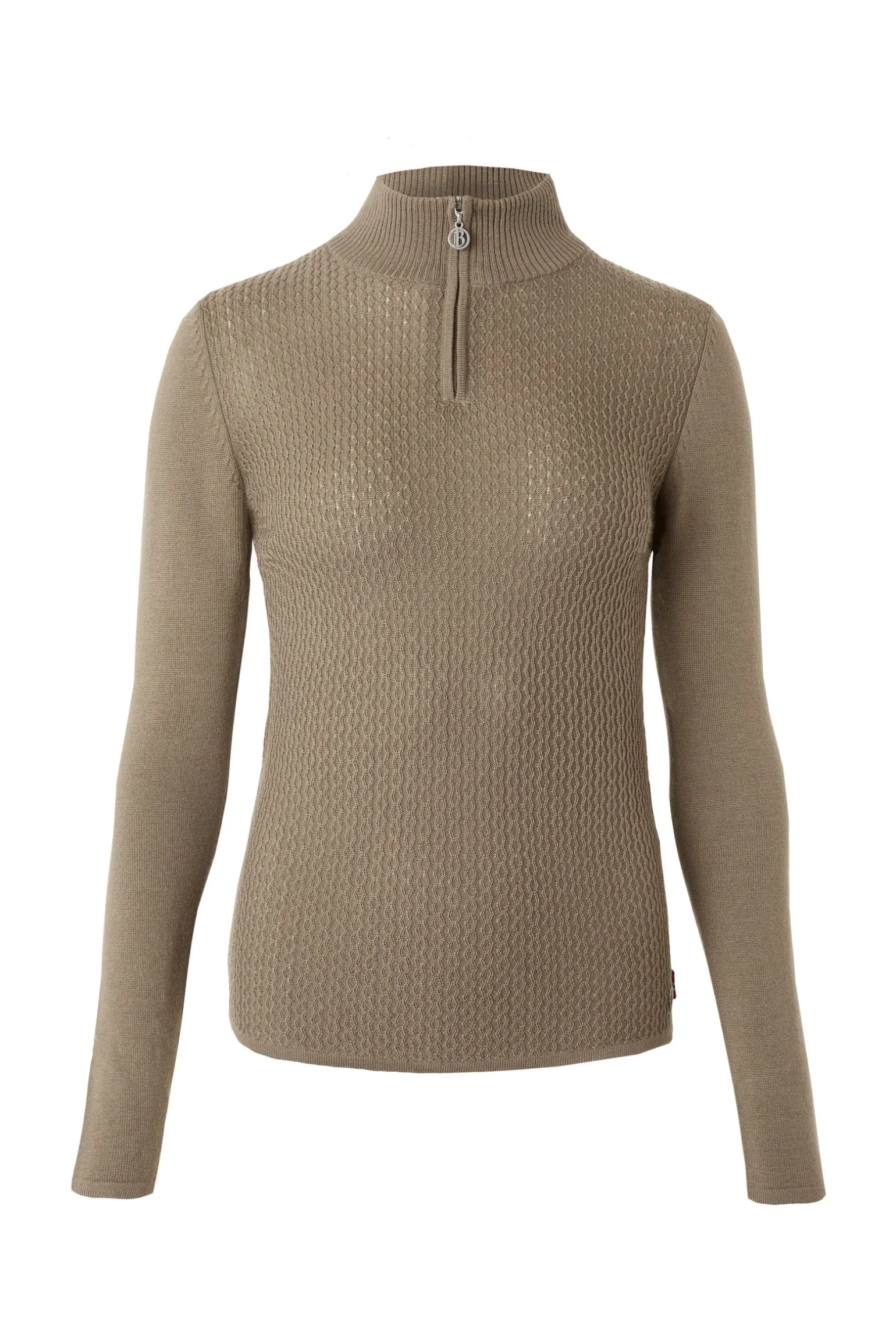 Der gestrickte B Vertigo Ruth Pullover ist ein Klassiker für deine Reitgarderobe. Der weiche Wollmix in Zopfmuster hält dich warm, und der hohe Hals ist mit einem Reißverschluss verstellbar. Er lässt sich perfekt mit einer gefütterten Weste kombinieren und hält dich auf Winterausritten warm.