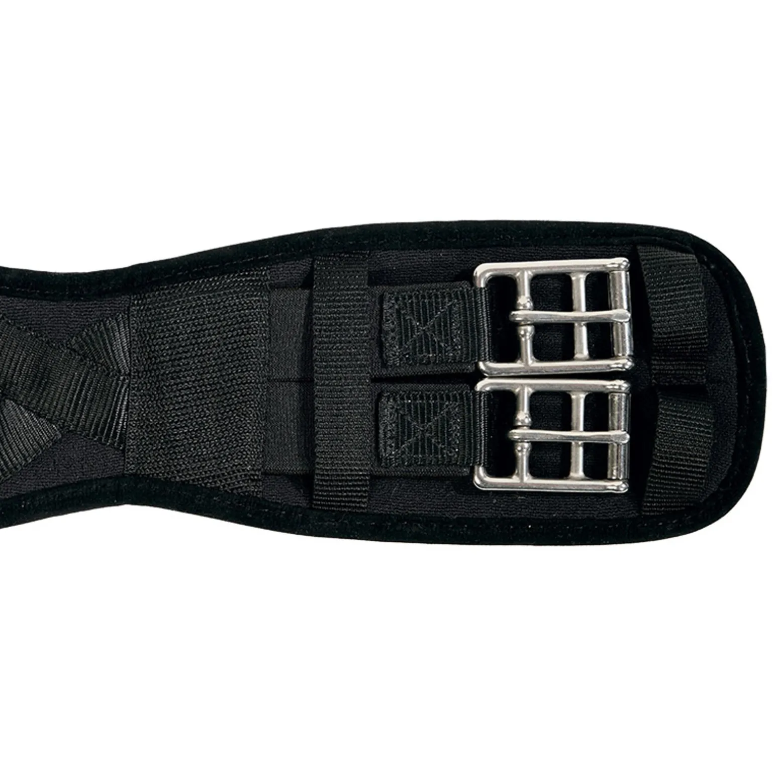 Aus strapazierfähigem Mischgewebe. Innenliegend ist ein Abstandsgewirk eingearbeitet, welches zusammen mit der gekreuzten Gurtführung eine gleichmäßige Druck- und Zugkraftverteilung garantiert. Hervorragende Schweißweiterleitung! Mit rostfreien Edelstahl-Rollschnallen (29mm Innenmaß).