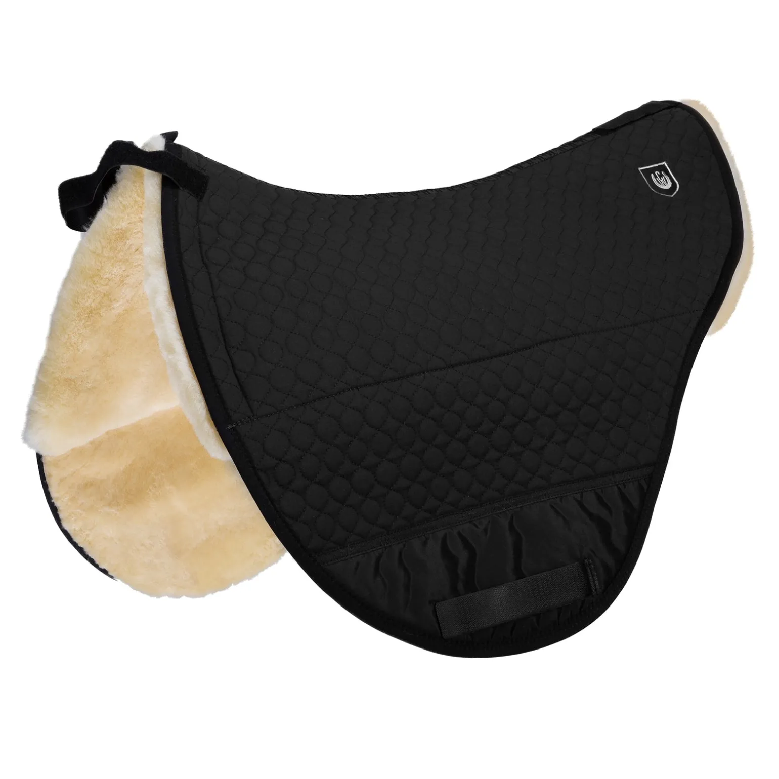 Die Satteldecke mit komplett Lammfell. Im Sitzbereich mit einer Wollhöhe von 30 mm ausgestattet und an den Blättern mit 15 mm. Durch das geschorene Lammfell im Blattbereich wird die Nähe zum Pferd gewährleistet. Befestigung durch Klettstrupfen vorne und hinten. Zu öffnende Gurtführung am Nylon-Scheuerschutz. In die eingearbeiteten Einschubtaschen/Kammern, können Polster eingelegt werden. Lieferung ohne Polster. Diese können optional bestellt werden.