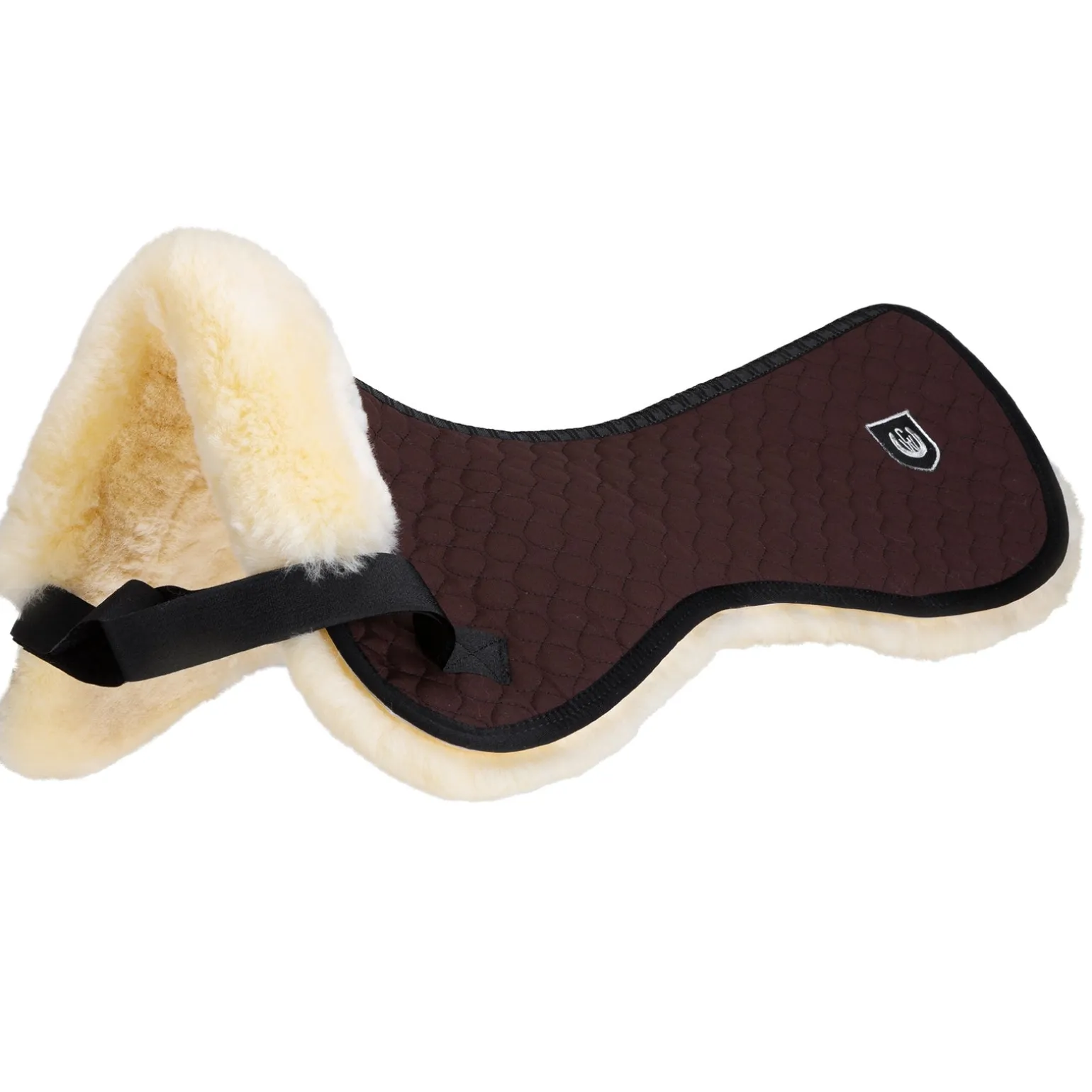 Das Sattelpad Standard verfügt über eine gängige und bewährte Paßform. Die Rückenlinie ist dem Pferderücken angepasst. Die Unterseite besteht aus echtem Lammfell mit einer Wollhöhe von ca. 30mm. Die Befestigung am Sattel erfolgt mit Klettstrupfen an den Gurtriemen des Sattels. Der verwendete Spezial- Satteldeckenstoff besteht aus mehreren Komponenten, die miteinander versteppt sind. Vorne wird das Lammfell bis auf die Oberseite herumgezogen und dient als Sattelanlage. Maschinenwaschbar mit einem Lammfellwaschmittel sowie trocknerbeständig. Als Waschmittel empfehlen wir das Produkt „C7“. Bitte beachte die Pflegehinweise.