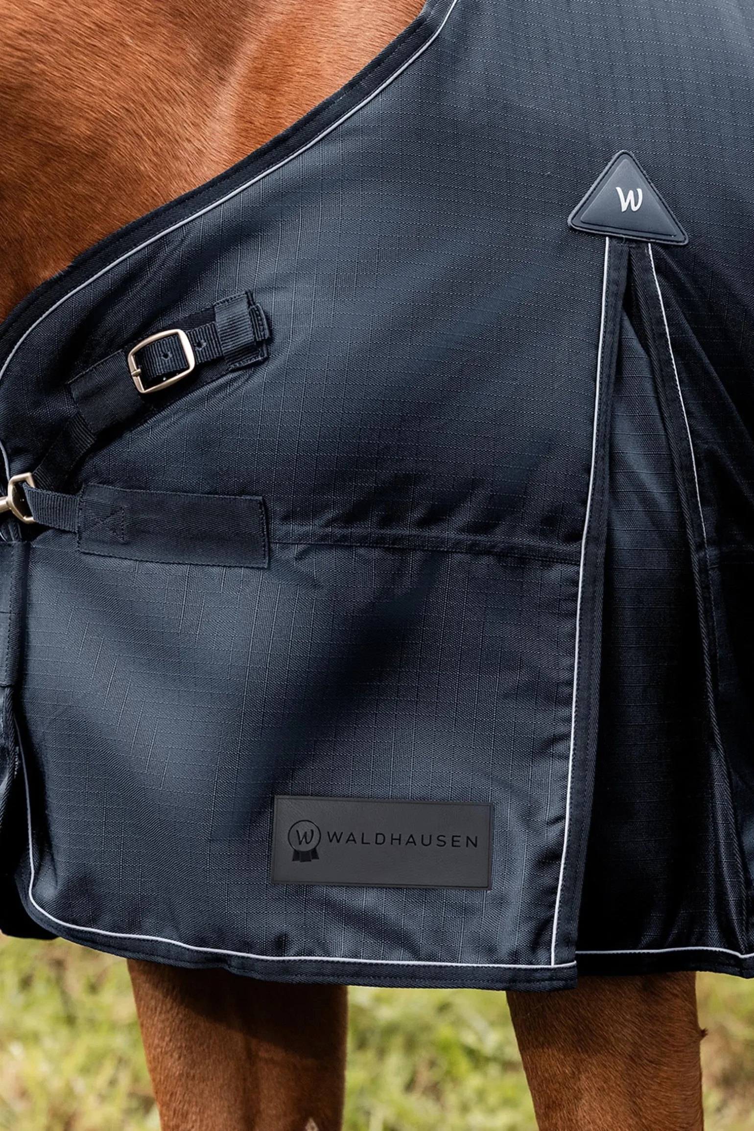 Die Waldhausen Scandic Outdoordecke ist die ultimative Kombination aus Komfort, Funktionalität, hochwertigen Materialien und innovativen Funktionen. Das antibakterielle Innenfutter gewährleistet höchsten Komfort. Der neue V-Frontverschluss und die große Gehfalte sorgen für eine ideale Passform und optimale Bewegungsfreiheit. Die reflektierende Biese erhöht die Sichtbarkeit und Sicherheit ihres Pferdes bei schlechten Lichtverhältnissen. Das 1200 Denier Außenmaterial garantiert eine robuste und strapazierfähige Decke, die den Herausforderungen des Outdoor-Einsatzes standhält.
