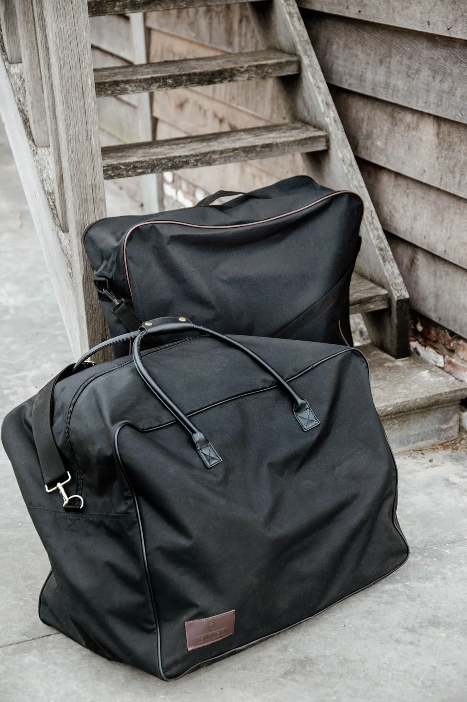 Diese elegante und praktische Schabrackentasche besteht aus einem strapazierfähigem 600D Polyestergewebe mit wasserdichtem Reißverschluss. Gleichzeitig wirkt sie durch ihre Bordüre aus Kunstleder auch sehr edel. Sie ist dabei speziell auf die Lagerung oder den Transport von 3 bis 5 Schabracke ausgelegt. Benutzt wird sie hauptsächlich für die Aufbewahrung Ihrer Schabracken nach dem Waschen oder beim Transport, um sie trocken und sauber zu halten. Sie ist das ideale Utensil im Stall oder auf Turnieren, um Ihre Schabracken sauber zu halten.