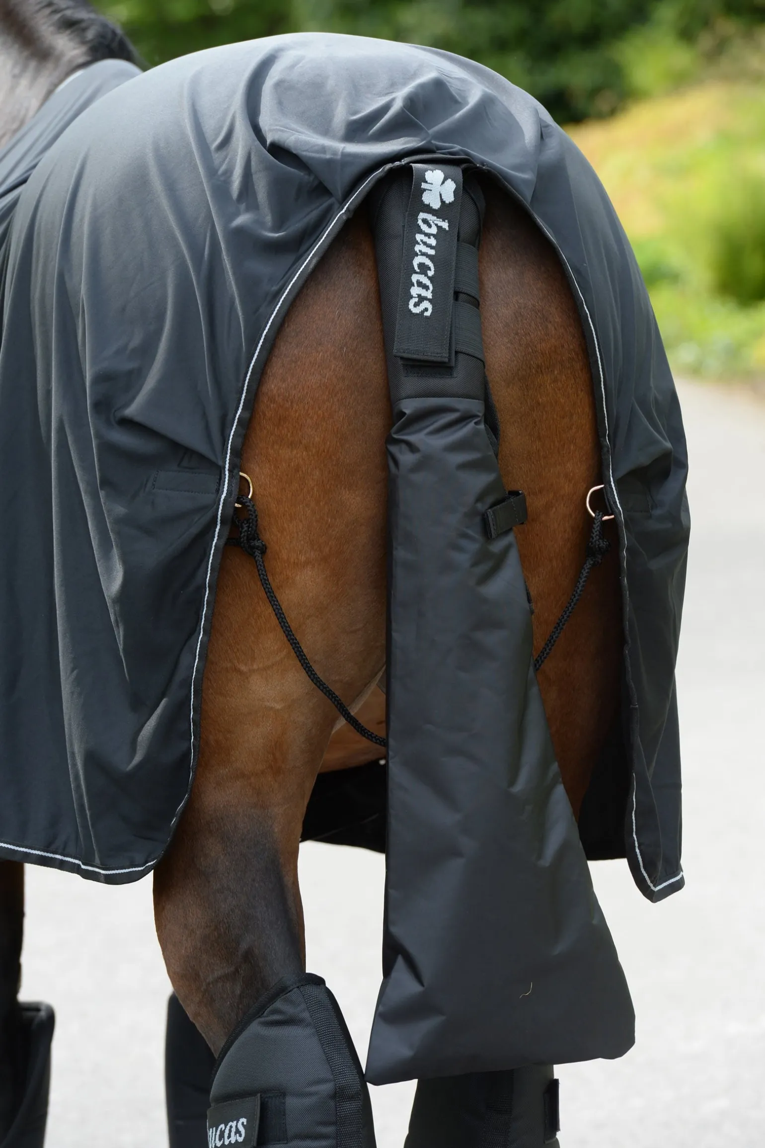Der Bucas Schweifschutz bietet hervorragenden Schutz für den Schweif des Pferdes durch eine gepolsterte Ummantelung um die Schweifrübe und eine sichere, elastische Befestigung um den Schweif. Die zusätzliche Sicherheit eines Klettverschlusses verhindert das Verrutschen. Außerdem verfügt er über eine wasserdichte, integrierte Schweiftasche, die den Schweif des Pferdes während des Transports sauber hält. Der Schweifschutz kann zu allen Bucas Abschwitzdecken mit einer entsprechenden Schweifschlaufe hinzugefügt werden (mit Ausnahme der Prize Abschwitzdecken und der Show-Line-Kollektion).
