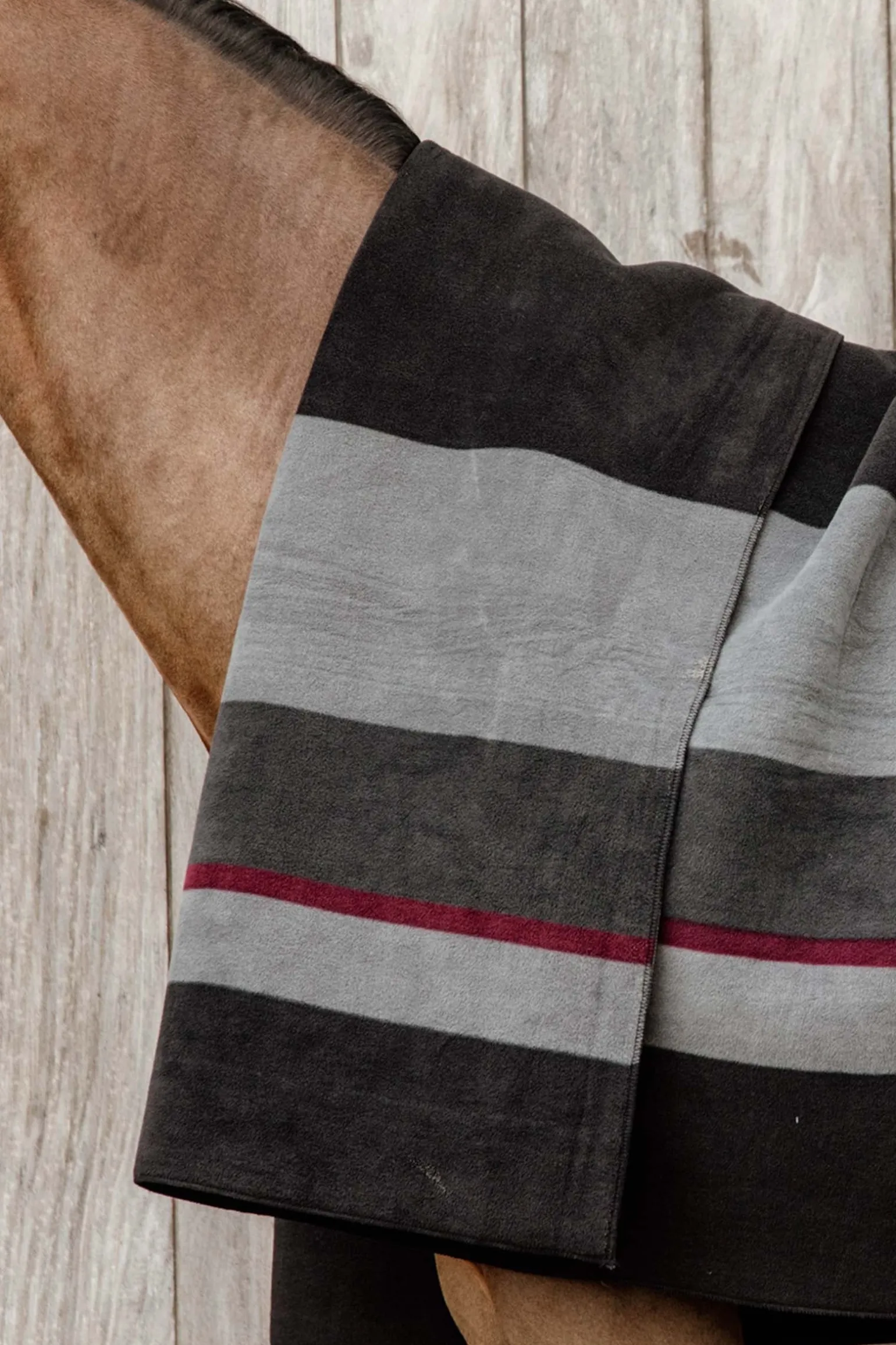 Das schwere Fleecematerial, das für die quadratische Decke verwendet wird, trocknet schnell und transportiert Feuchtigkeit auf die Außenseite der Decke. Dort verdunsten Schweiß und Feuchtigkeit schnell. Selbst im Winter trocknet dein Pferd in 5 Minuten und erkältet sich nicht. Der Polyester-Stoff sieht aus wie Wolle, aber im Gegensatz zu Wolle lassen sich Späne leicht von der Decke bürsten. Darüber hinaus ist die Decke robuster und nutzerfreundlicher, da sie waschbar ist und dabei keine Qualität verliert.