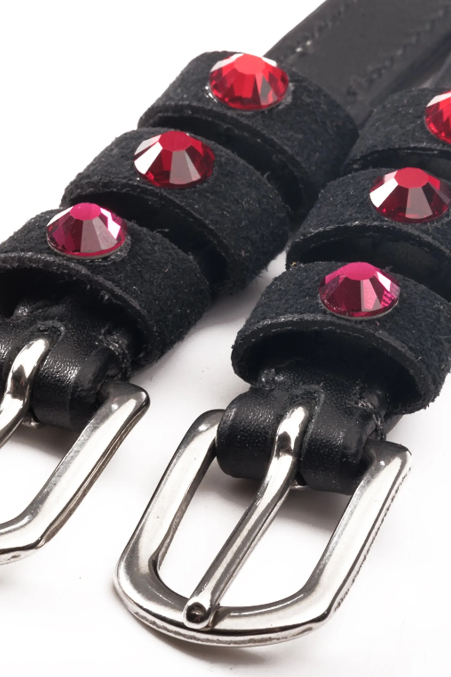 Sporenriemen „Seasons dreams“ aus weichem, langlebigem Qualitätsleder mit farbigen Strasssteinen auf den Schlaufen. Paarweise. Passendes Browband „Seasons dreams“ mit Knopfverschluss.