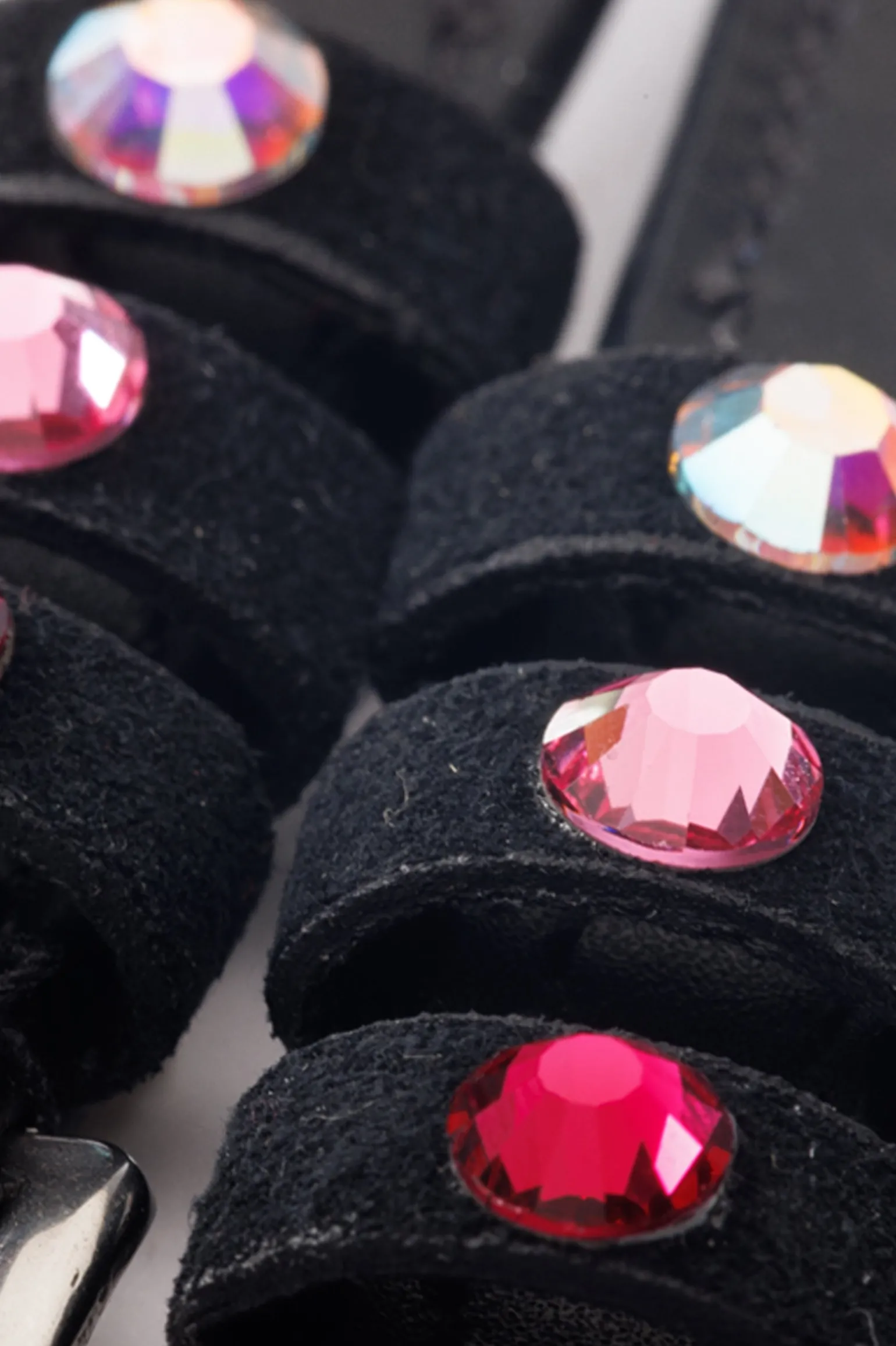 Sporenriemen „Seasons dreams“ aus weichem, langlebigem Qualitätsleder mit farbigen Strasssteinen auf den Schlaufen. Paarweise. Passendes Browband „Seasons dreams“ mit Knopfverschluss.
