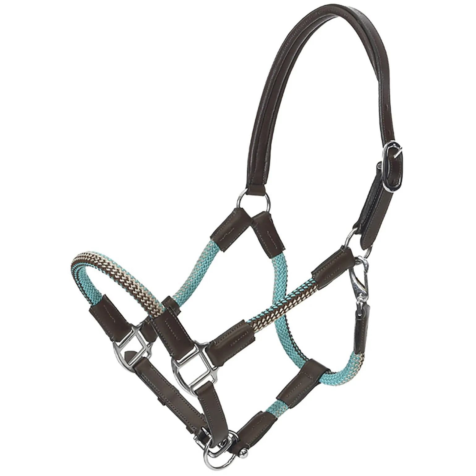 Das elegante Seil-Halfter „Cavo“ besteht aus einem weichem Leder hauptsächlich im Genickbereich und geht über in ein weiches Seil, was an den Seiten und im Nasenbreich vernäht wurde. Mit einem super weich gepolsterten Leder Genickstück verleiht das Halfter ein unglaublichen Tragekomfort für das Pferd. Der Strick ist mit einem Karabinerhaken versehen und liegt hervorragend in der Hand.