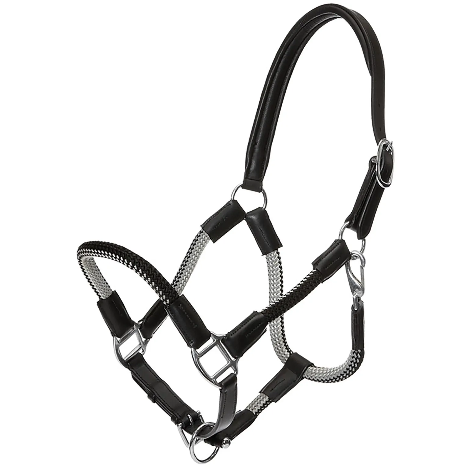 Das elegante Seil-Halfter „Cavo“ besteht aus einem weichem Leder hauptsächlich im Genickbereich und geht über in ein weiches Seil, was an den Seiten und im Nasenbreich vernäht wurde. Mit einem super weich gepolsterten Leder Genickstück verleiht das Halfter ein unglaublichen Tragekomfort für das Pferd. Der Strick ist mit einem Karabinerhaken versehen und liegt hervorragend in der Hand.