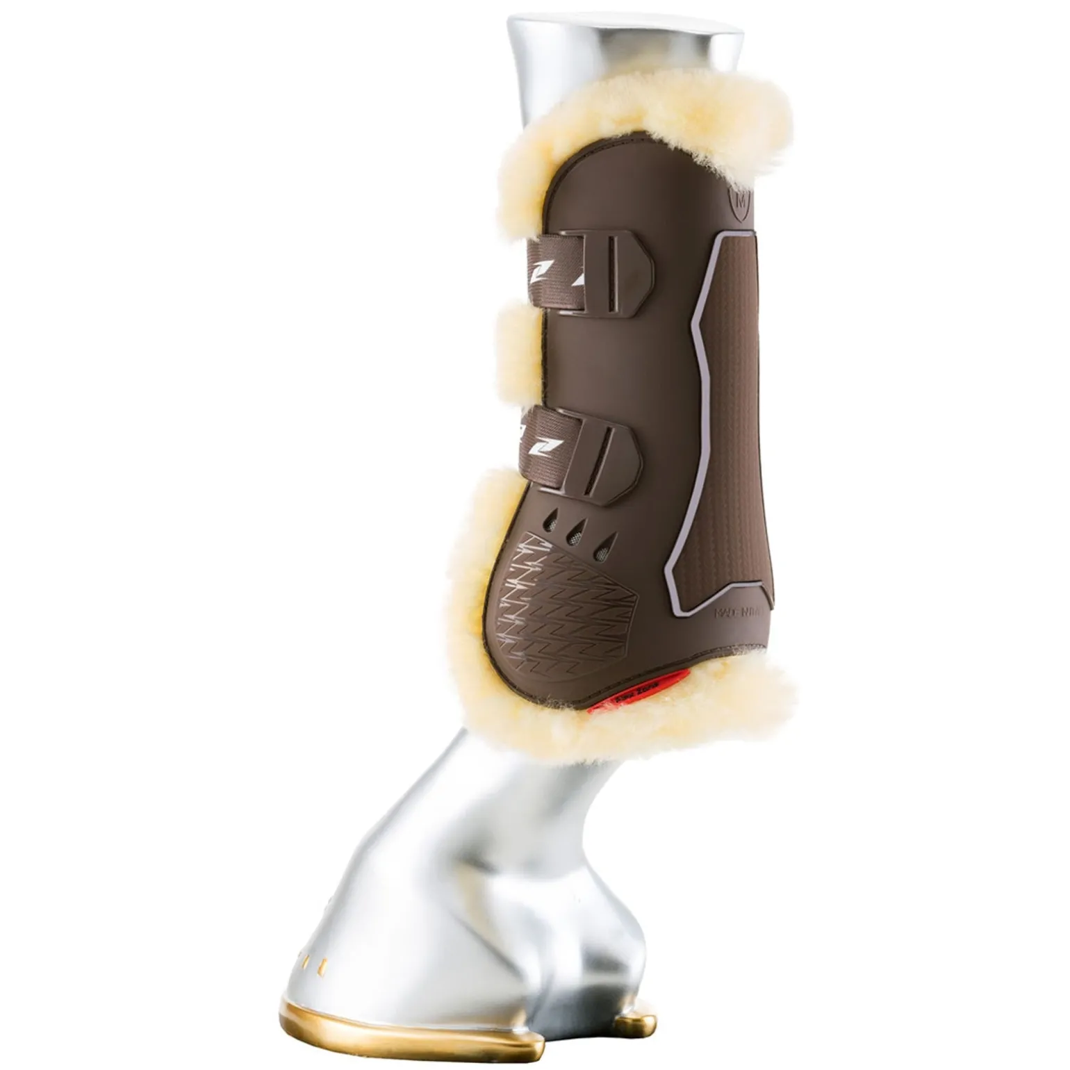 Das zu 100 % in Italien hergestellte Schutzsystem “SENSITIVE+ Tendon“ wurde entwickelt, um Springpferde vor Aufprall und Hämatomen an den vorderen Fesseln und einem Teil des Schienbeins zu schützen und gleichzeitig Halt für die Sehnen zu bieten. Ihre Innenbeschichtung mit natürlichen Lammfell um maximalen Komfort und antiallergische Eigenschaften, ideal für empfindliche Pferdebeine. Es besteht aus einer äußeren TPU-Struktur mit differenzierter Dicke, belüftet mit 6 Lüftungsöffnungen über der Fessel. Zwischen der äußeren TPU-Struktur und dem Innenbeschichtung befindet sich Gel-Tech, das, wenn nötig, als Stoßdämpfer und ansonsten als bequemes Polster dient. Kohlenstofffaser Elemente sind unter der Schale thermisch zu isolieren die Gelenke von der Wärme, die durch äußere Reibung erzeugt, bei gleichzeitiger Erhöhung der mechanischen Festigkeit gegen Stöße. Auf der Innenseite, zum langen Fesselknochen hin geschlossen, wurde eine Flex-Zone geschaffen, die nötig ist, um dem Bein maximale Bewegungsfreiheit zu geben. Die elastischen Bänder mit Schnellöffnern wurden für einen sicheren Verschluss kalibriert, der eigentlich aus einem doppelten Verschlusssystem besteht (horizontal/vertikal). Die Maße und die absolut ergonomische Form wurden als ge – naue Kopie der Beinstruktur entwickelt, was eine perfekte Positionierung garantiert und jegliche Spannung vermeidet.