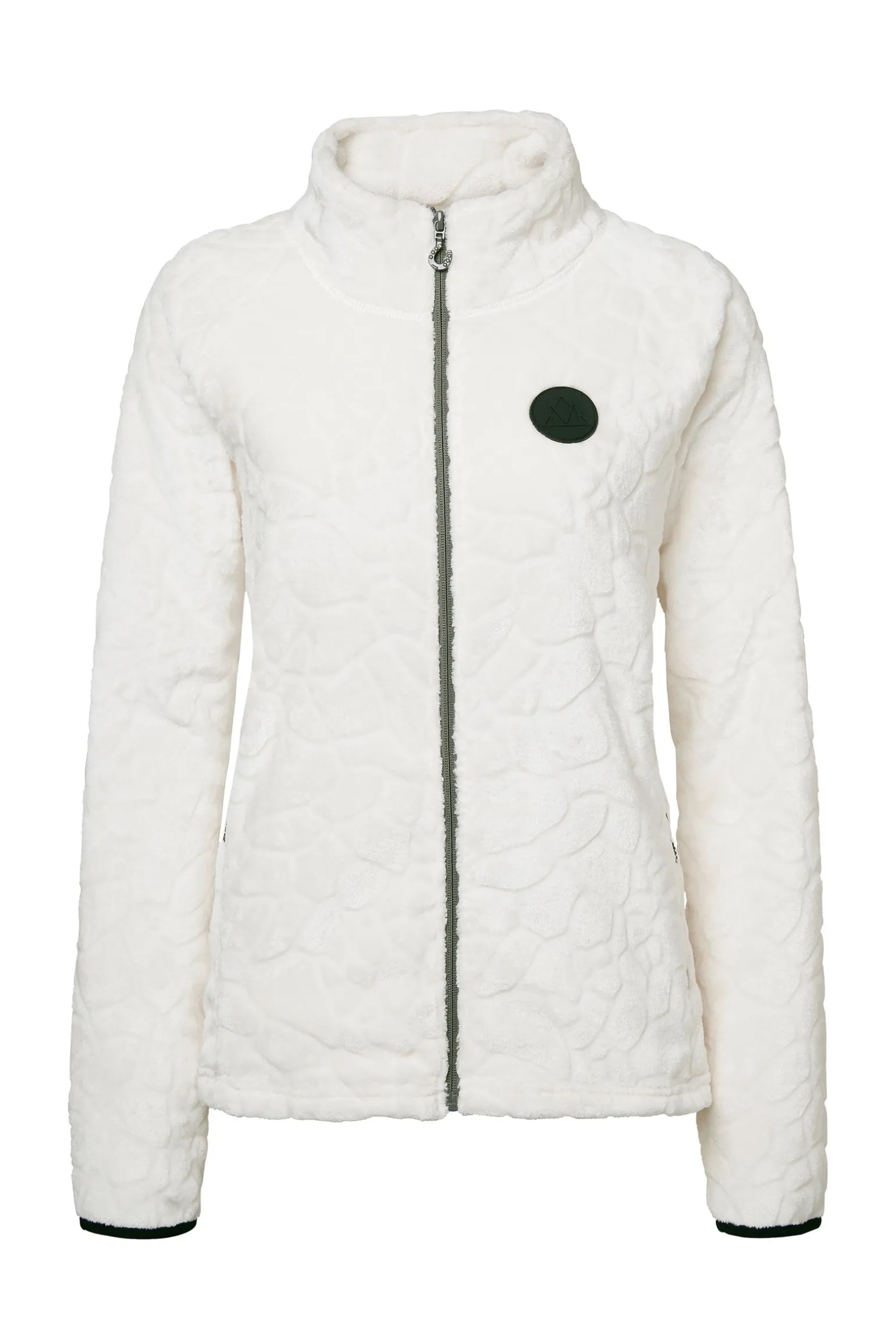 Weicher Fleecestoff mit superbequemer und weicher, samtiger Oberfläche, kuscheliger hoher Kragen und Fronttaschen mit Reißverschluss.