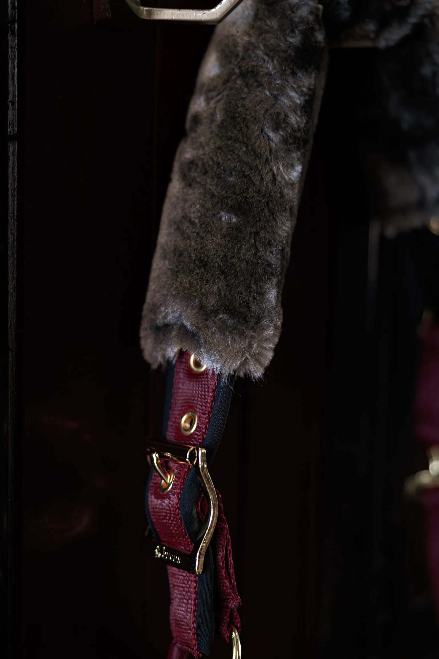 Das Show-Line Full Fur Halter ist das ultimative Fellhalfter für dein Pferd. Es bietet vollen Fellschutz für Gesicht und Kopf und schützt optimal vor Reibung. Das Kopfstück ist beidseitig verstellbar, um eine perfekte Passform zu gewährleisten. Der Kehlriemen wird mit einem gebogenen Ring befestigt, wodurch verhindert wird, dass der Karabinerhaken an der Wange reibt. Erhältlich in den Größen Pony, Cob und Full.