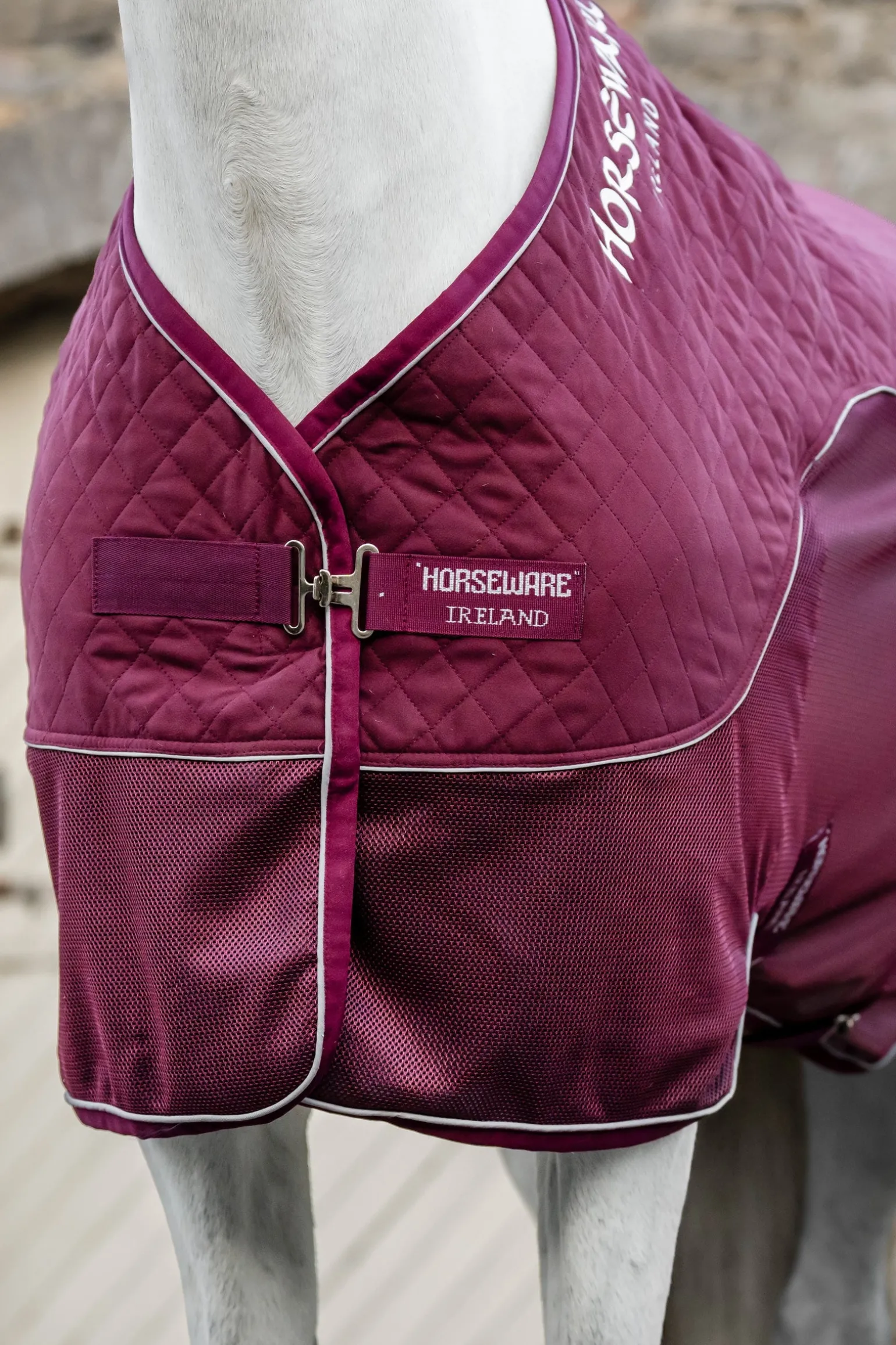 Die Horseware® Signature Transportdecke ist eine Hybriddecke aus Fleece und Mesh, die auf langen Reisen für Komfort und optimale Temperaturregulierung sorgt. Gestepptes Mikrofaser-Polarfleece hält die wichtigsten Muskelgruppen locker und warm und leitet Feuchtigkeit aktiv ab, während Mesheinsätze an den Seiten Luft an den Pferdekörper lassen und Wärme abführen. Entlang des Rückens pflegt und glättet das glanzgebende Futter unter dem Fleece das Fell, damit dein Pferd am Ziel so gut aussieht wie es sich wohlfühlt.
