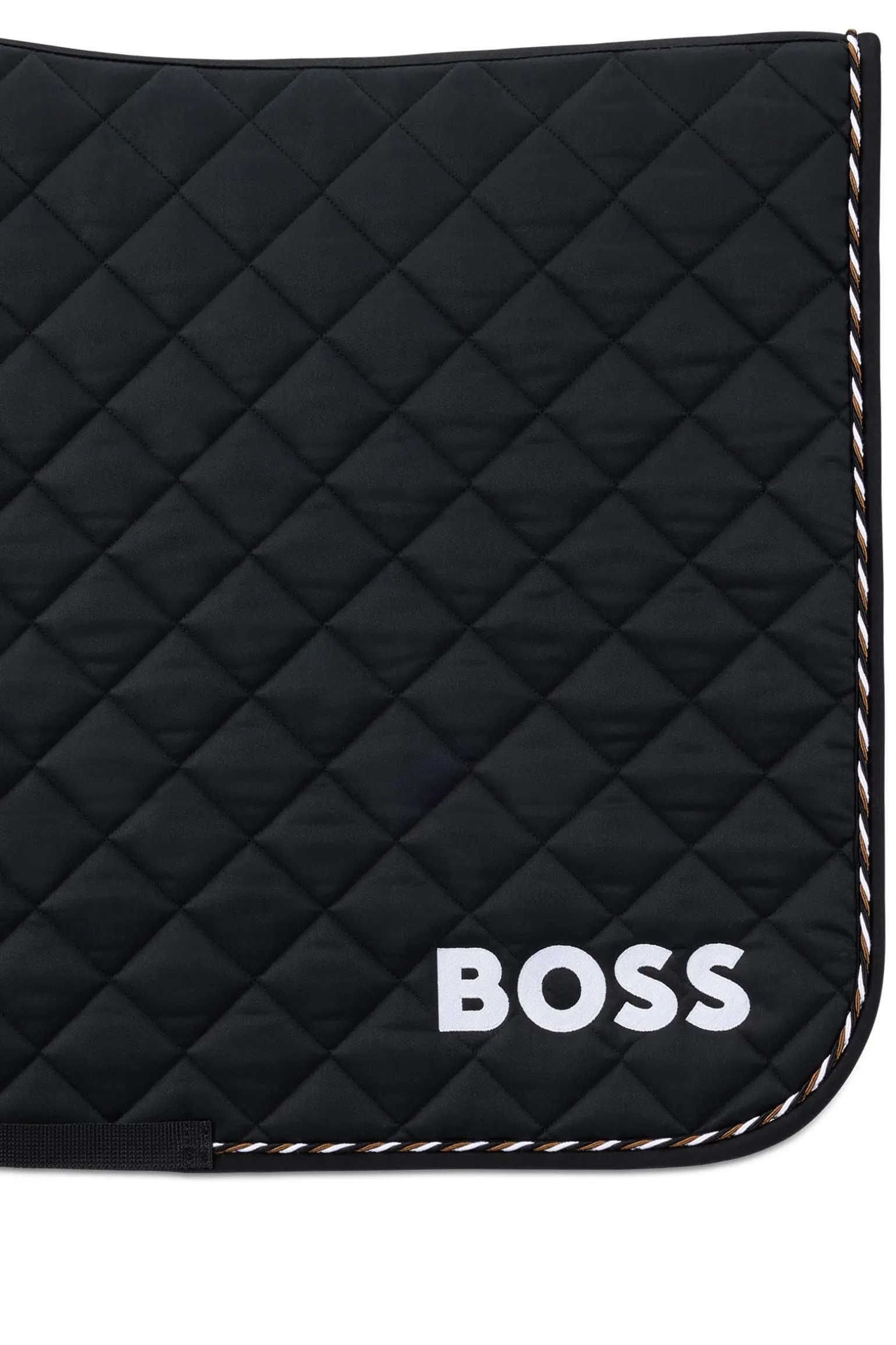Ein starker Auftritt ist dir mit dieser Schabracke in Kontrastfarben garantiert. Am Widerrist ist sie höher geschnitten für einen guten Sitz, gleichzeitig bietet sie Schulterfreiheit und einen optimalen Halt unter dem Sattel. Die Füllung leitet Feuchtigkeit optimal ab um dein Pferd komfortabel zu halten.