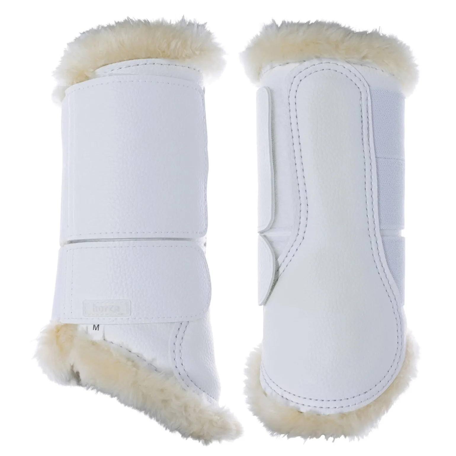 Die qualitativ hochwertigen Gamaschen schützen Ihr Pferd während des Trainings oder des Turniers mit einem weichen Fellimitat aus Schaffell und einer harten, aber flexiblen Hülle. Diese Gamaschen umschließen das Röhrbein und den Fesselkopf und bieten Schutz vor Schlägen und Stößen.