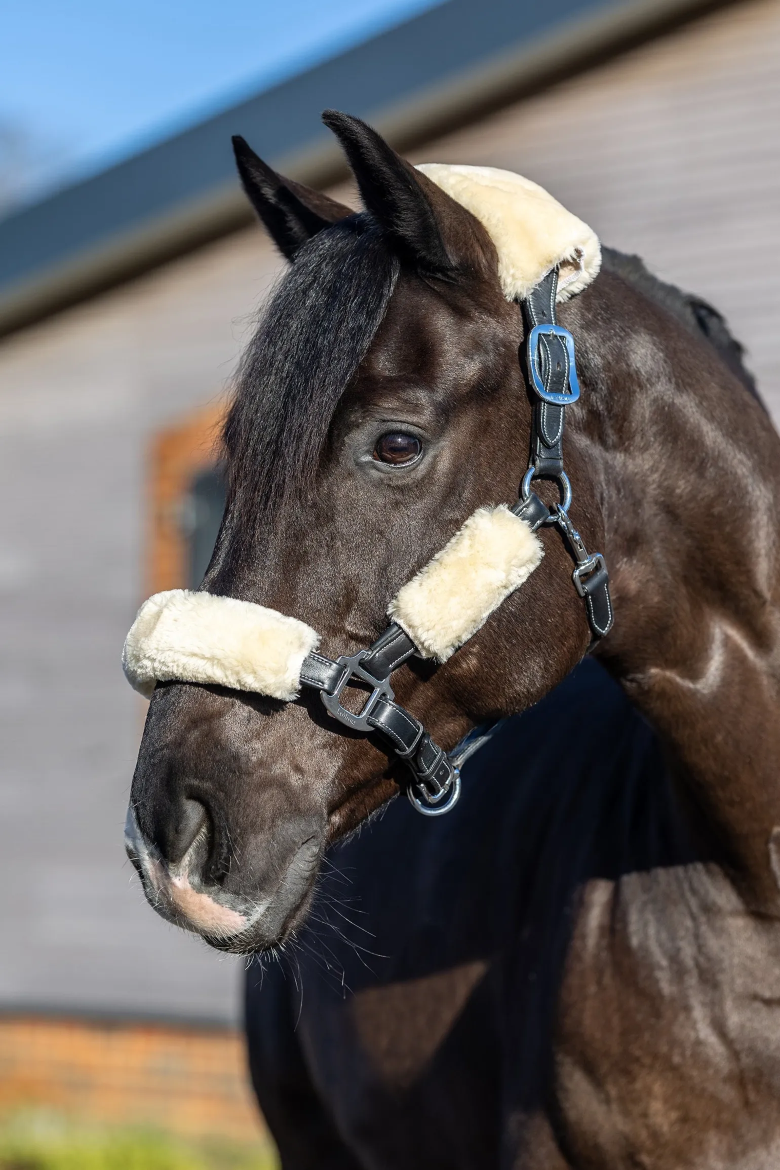 Dieses vierteilige Halfter-Set wurde entwickelt, um optimalen Komfort zu bieten. Das hochdichte Fellimitat ist ultraweich und sorgt dafür, dass die Haut des Pferdes vor Reibung und Scheuerstellen geschützt ist.