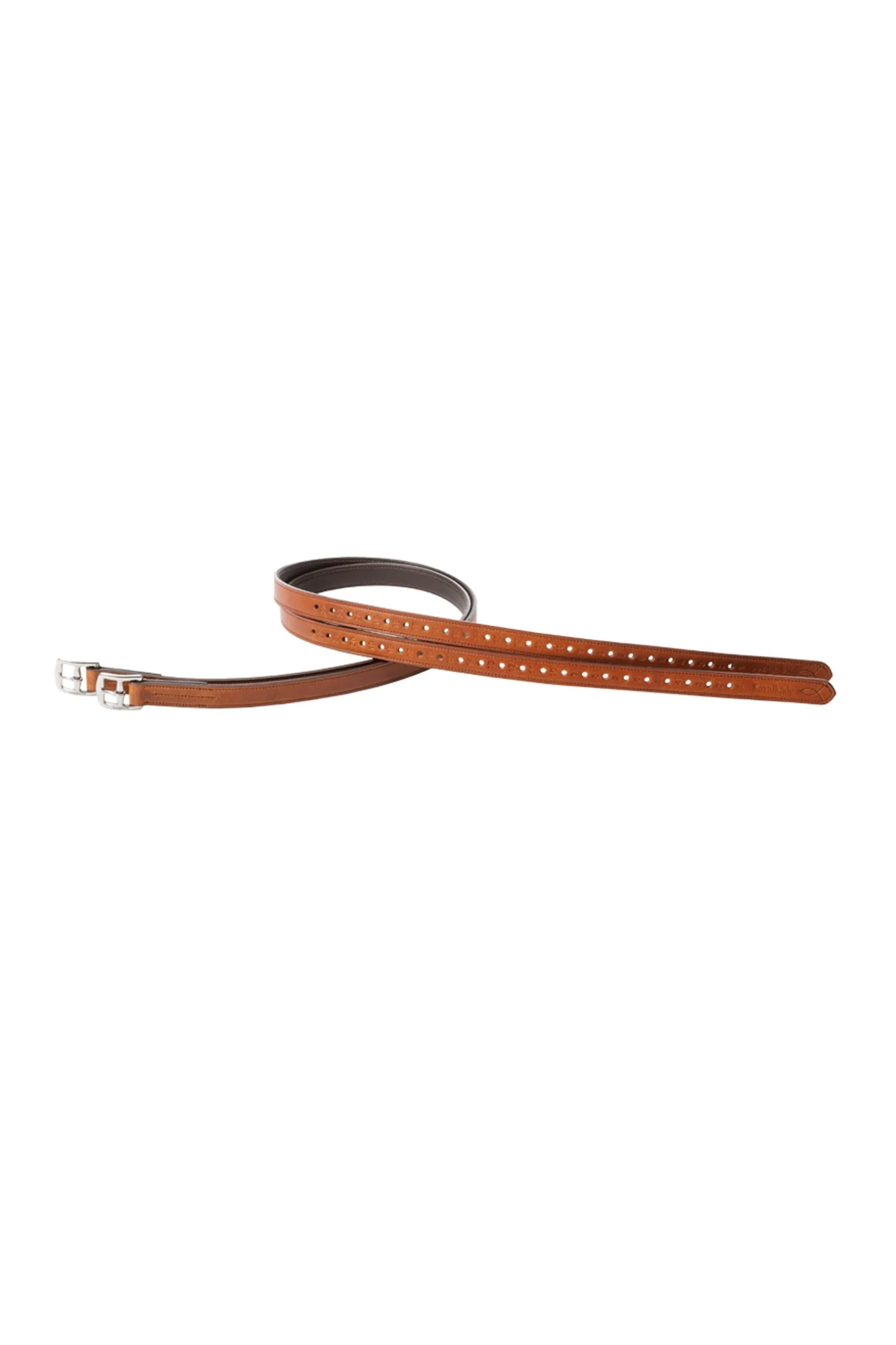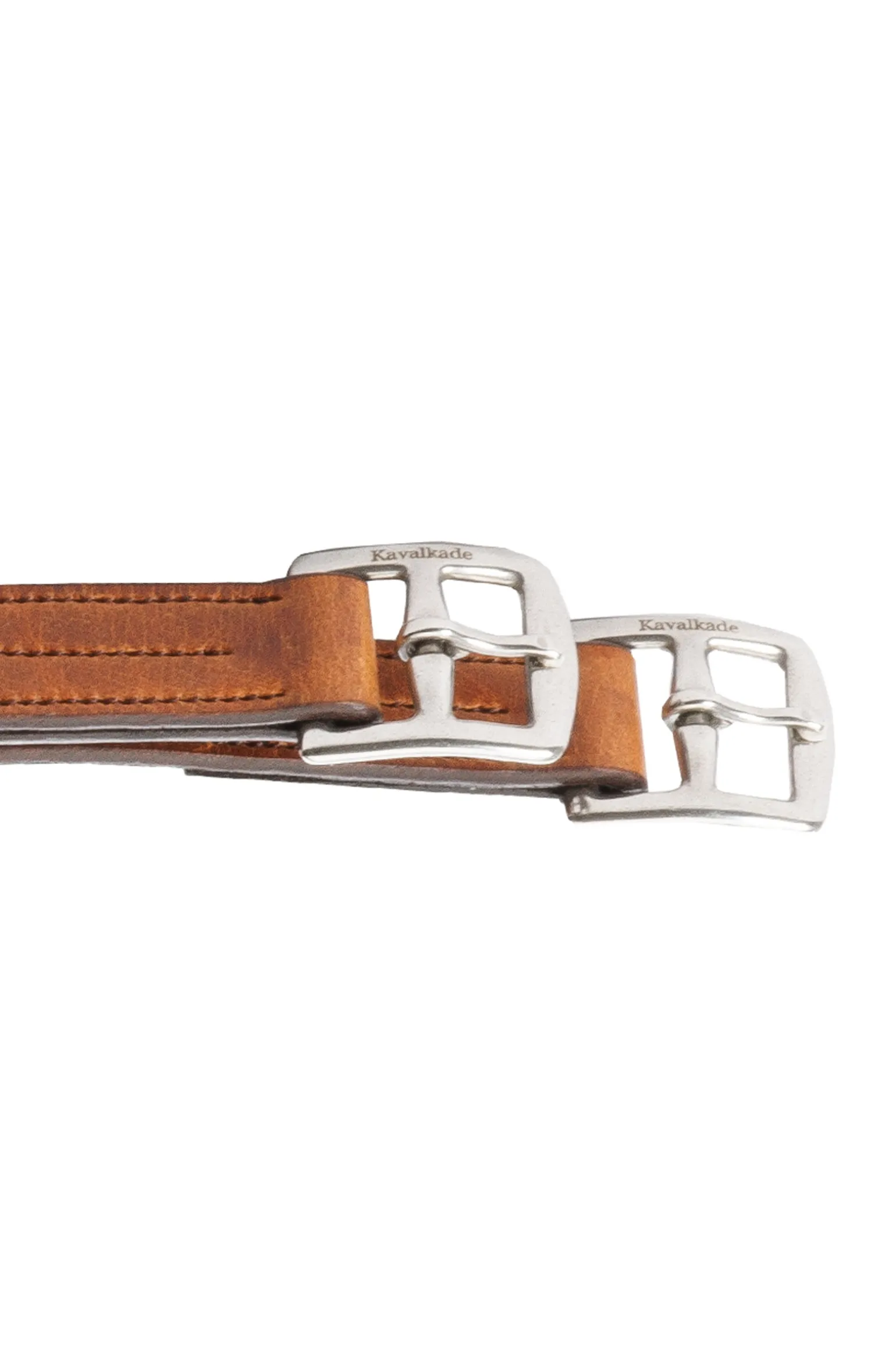 Die Steigbügelriemen bestehen auf der Oberseite aus geöltem Leder und auf der Unterseite aus weichem Leder. Das geölte Leder macht die Steigbügelriemen haltbarer, während das weiche Leder für Geschmeidigkeit sorgt. Ein Nylonband im Inneren verleiht den Steigbügelriemen extreme Stabilität. Die gebogene Schnalle sorgt für einen angenehmeren Sitz.
