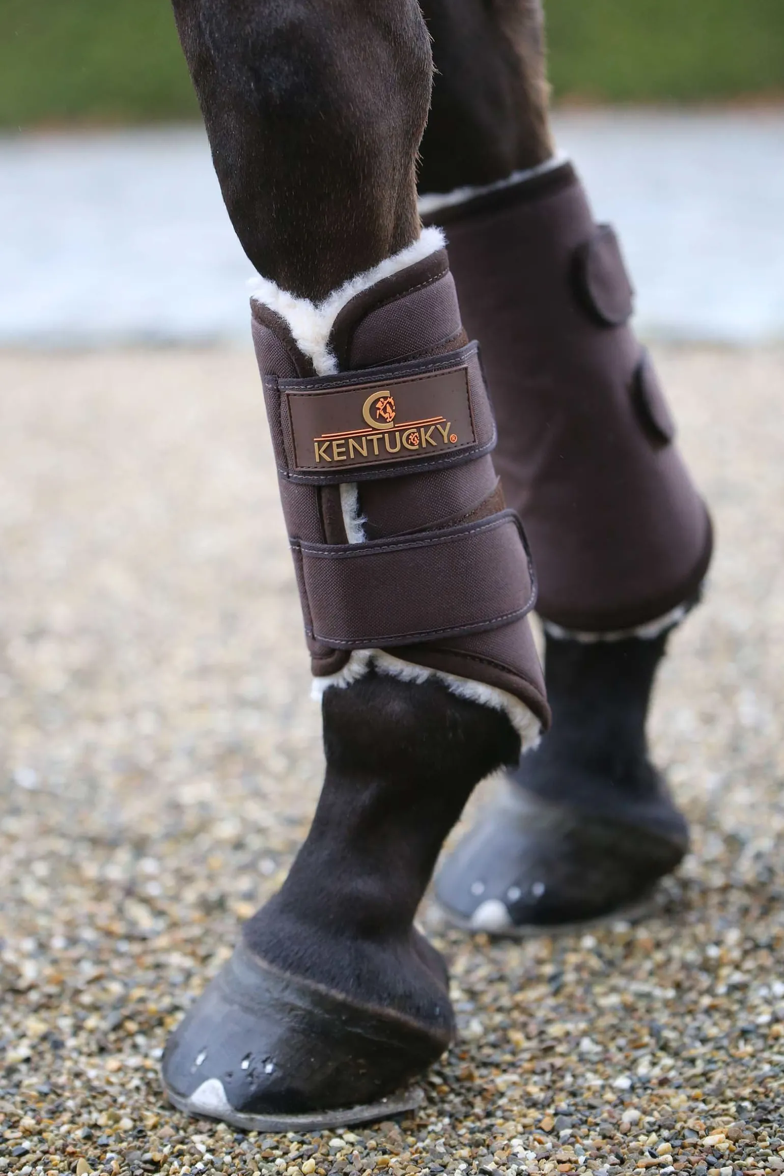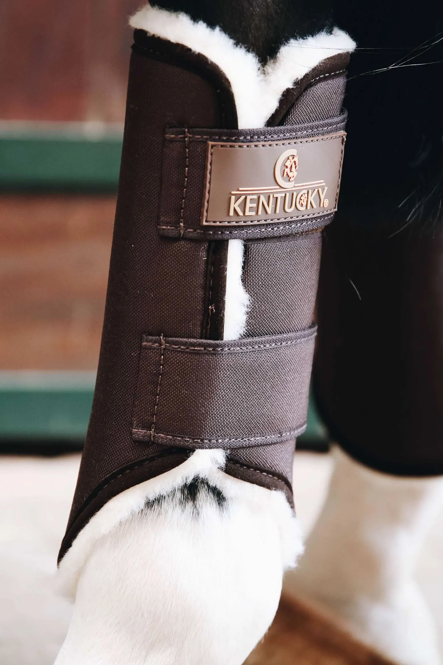 Wenn es um brilliantes Design in Verbindung mit überragender Performance geht, sind die Kentucky Horsewear Gamaschen führend bei Top Reitern weltweit. Diese Arbeitsgamaschen sind brandneu – sie bestechen durch eine klassische Optik und feinste Verarbeitung. Die Kentucky Solimbra Turnout Boots Arbeitsgamaschen bestehen aus dem starken 100%ig wasserdichten Solimbra Material mit Kunstlammfell-Innenfutter und EVA Schutz. Sie sind die Lösung für Reiter, die qualitativ hochwertige Gamaschen für den täglichen Gebrauch benötigen ohne allzu tief in die Tasche greifen zu müssen. Die Kentucky Solimbra Turnout Boots Arbeitsgamaschen sind anatomisch geformt, haben 2 große, sichere Klettverschlüsse, sind 100% atmungsaktiv und leicht zu reinigen. Einfach die ideale Wahl für Reiter aller Diziliplinen und Levels. Die hinteren Gamaschen sind etwas länger, als die vorderen.