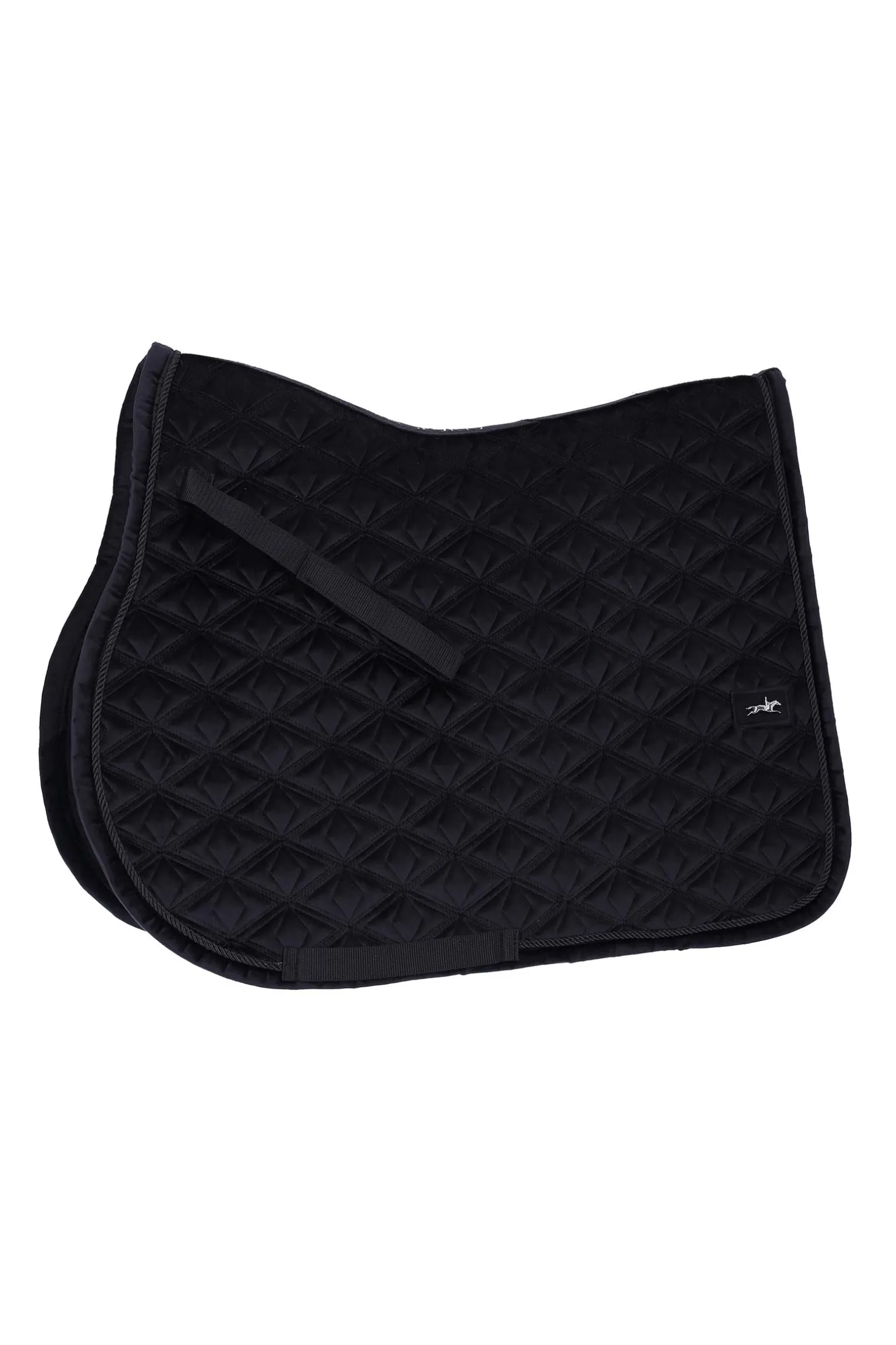 Die Saddle Pad Velvet Style ist eine edle Samt-Schabracke mit einer schnell trocknenden Rückseite, die für optimalen Komfort sorgt. Dezent dekoriert mit einer Kordel und einem hochwertigen Logopferd aus Metall, besticht sie durch modernes Steppmuster und elegantes Design.