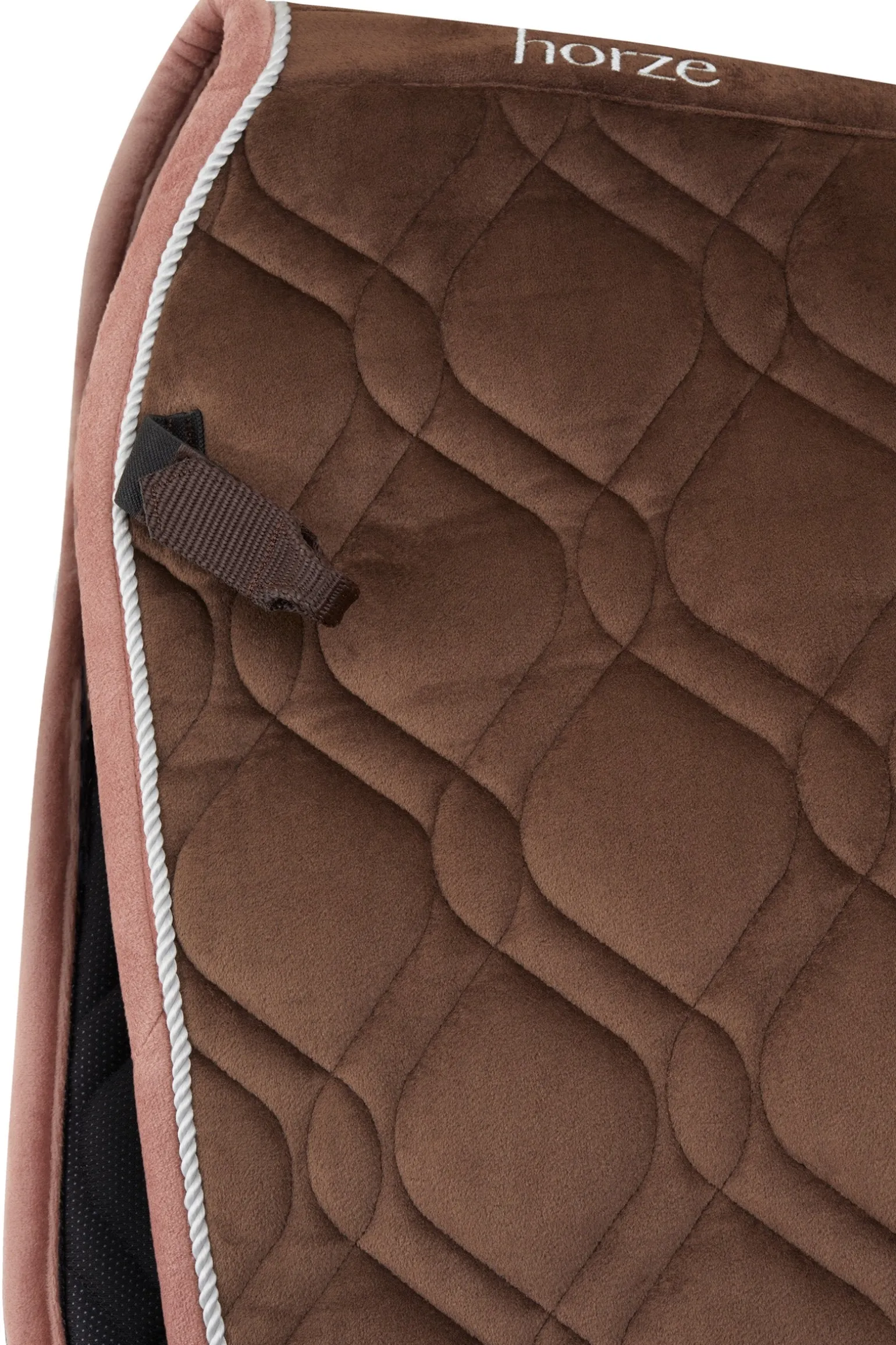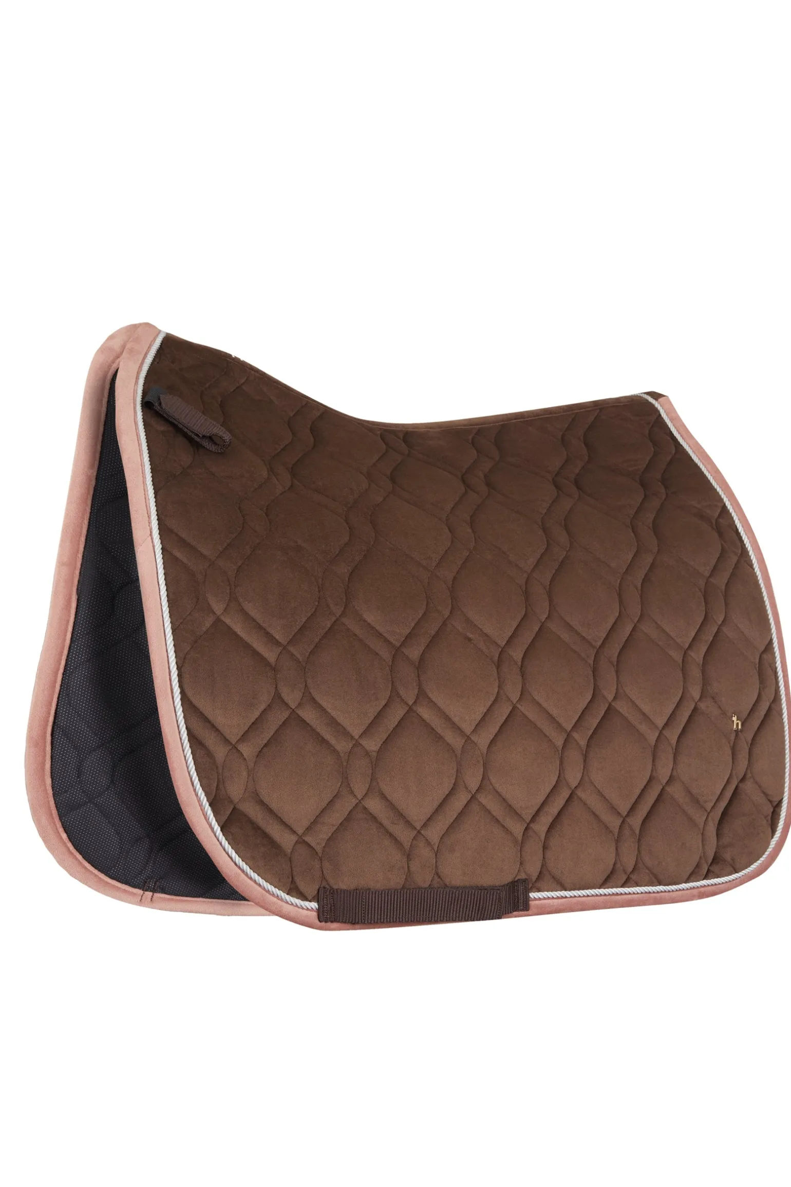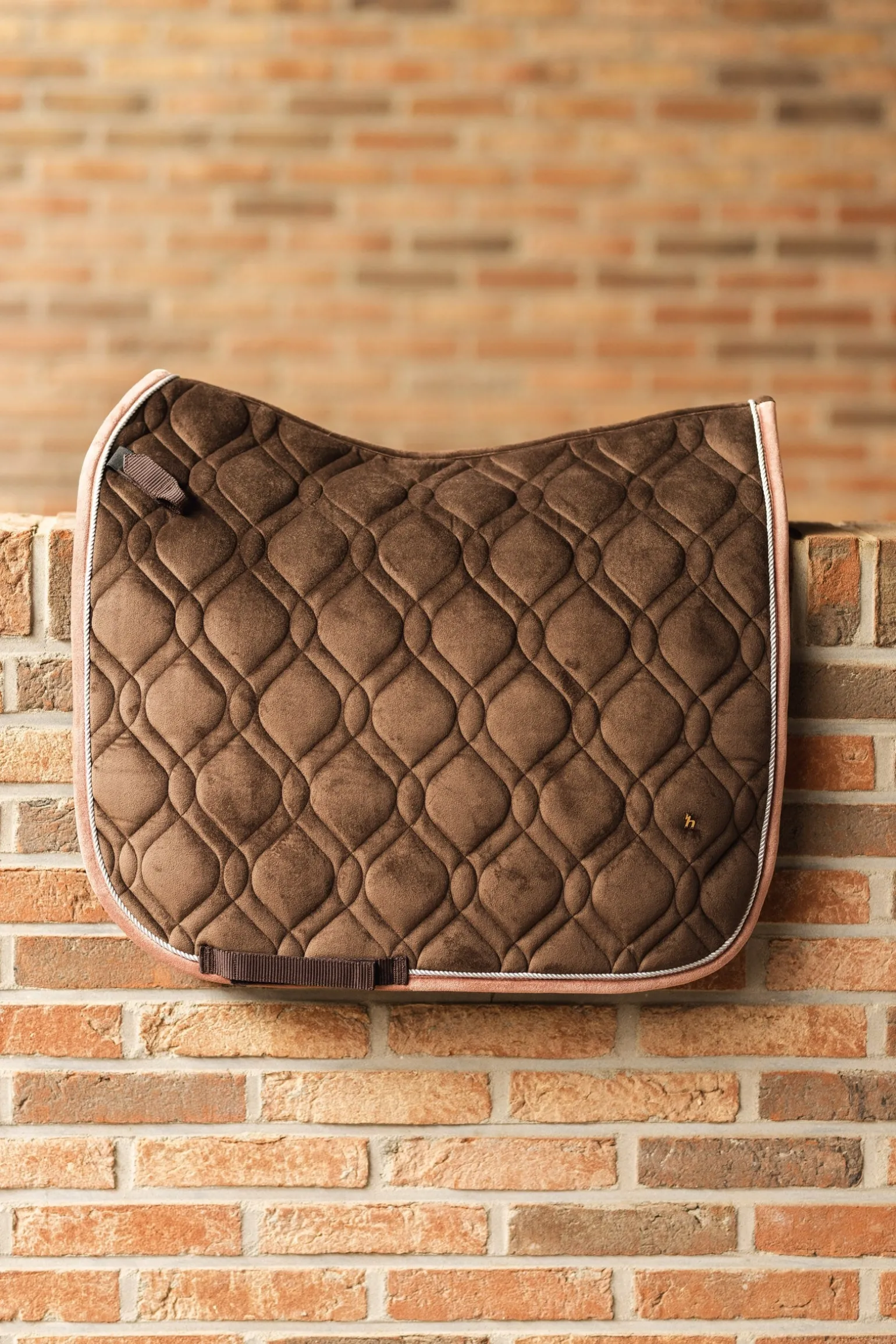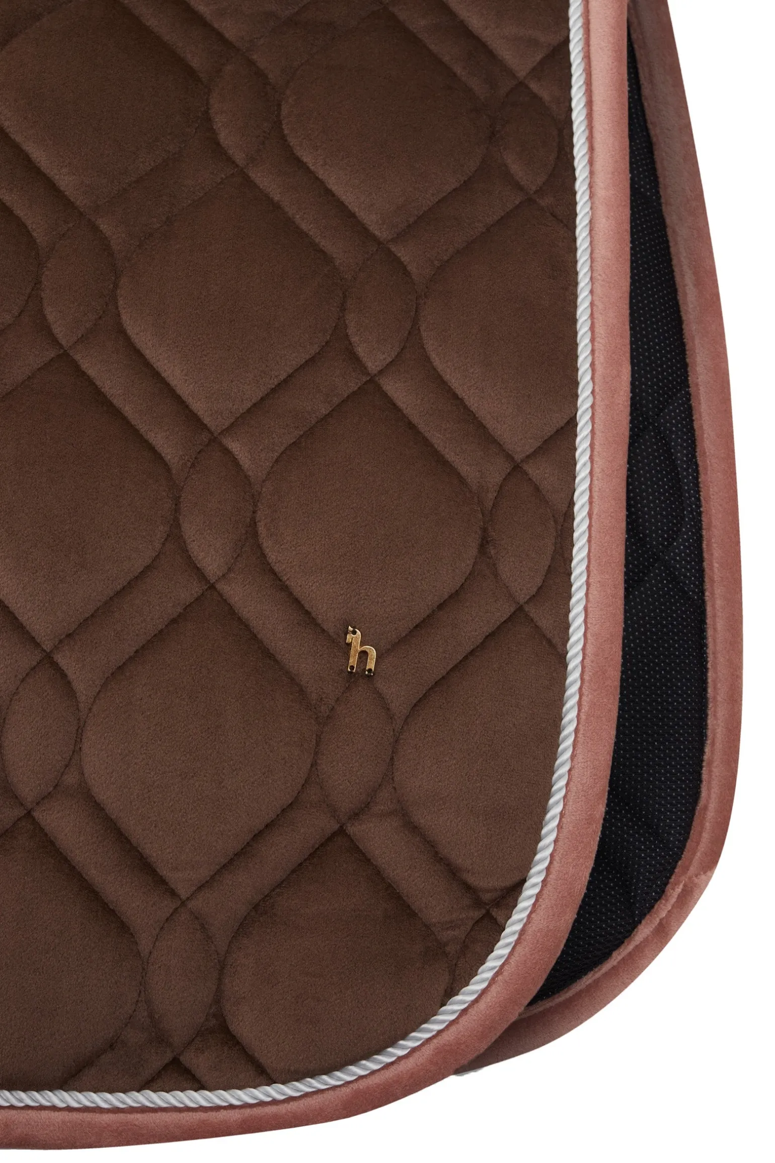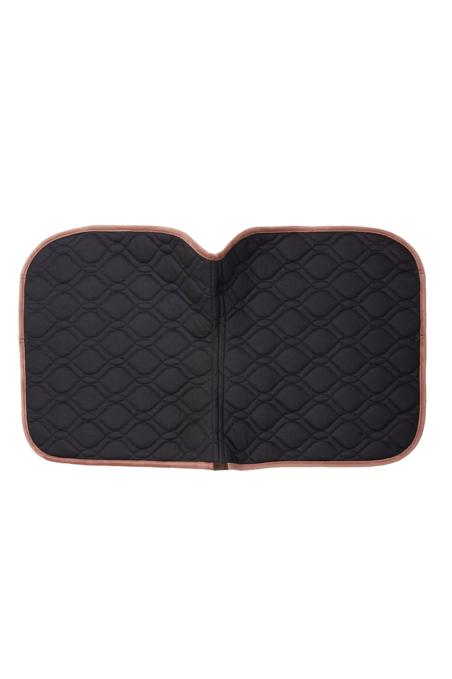 Diese Schabracke ist mit einem neuen Steppmuster versehen, das deinem Reitsport-Equipment einen Hauch von Eleganz verleiht. Das Coolmax-Futter sorgt für hervorragende feuchtigkeitsableitende Eigenschaften und hält dein Pferd auch bei intensiven Ritten trocken und komfortabel. Der Samtstoff sorgt nicht nur für eine ansprechende Optik, sondern verringert auch das Verrutschen des Sattels und bietet einen sicheren Sitz. Ausgestattet mit einer D-Ring-Befestigung und einer verstellbaren Gurtschlaufe, bietet diese Schabracke Komfort und Stabilität. Die Stickerei entalng der Wirbelsäule und das kleine goldene „h“ machen die Schabracke zu einem echten Unikat.