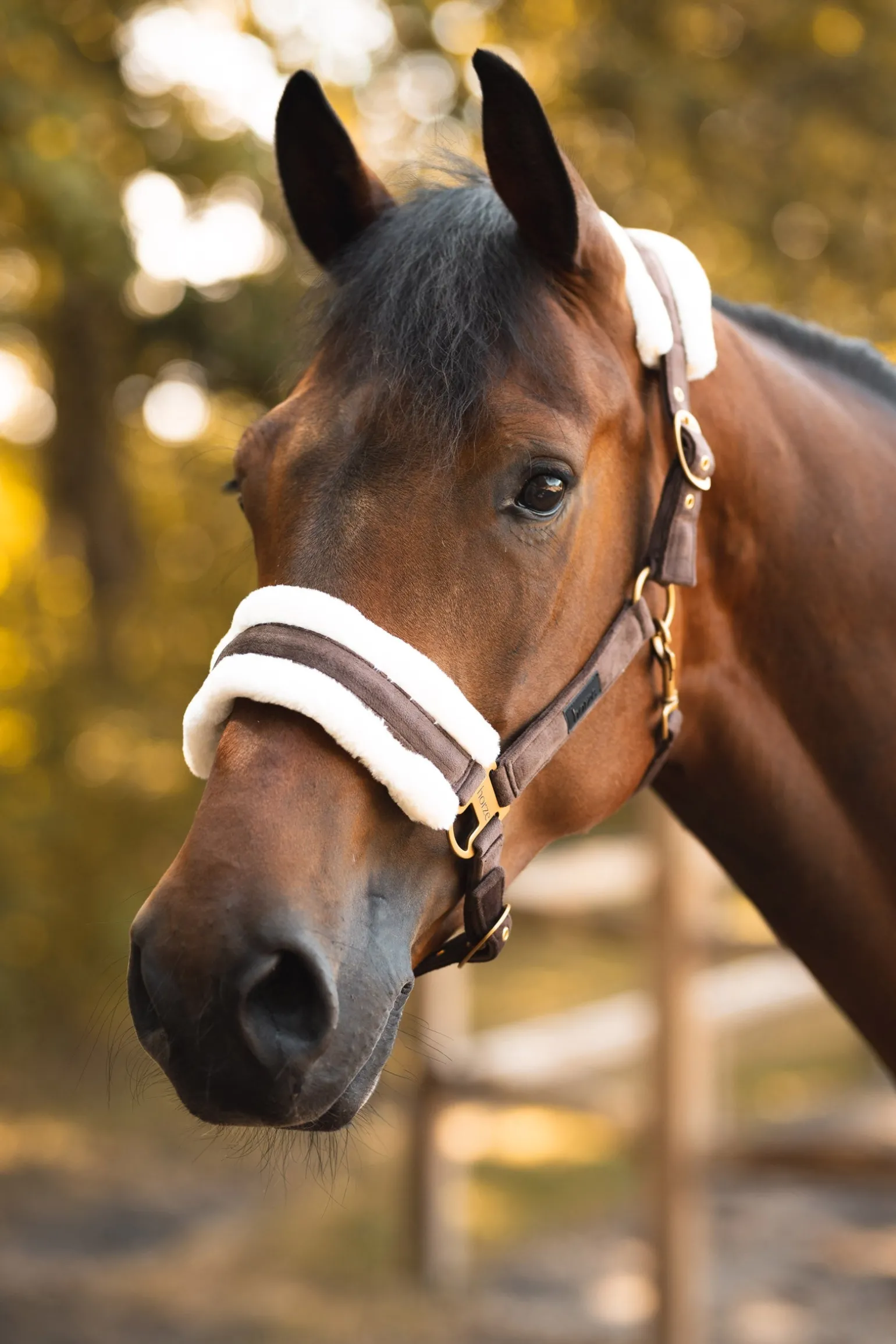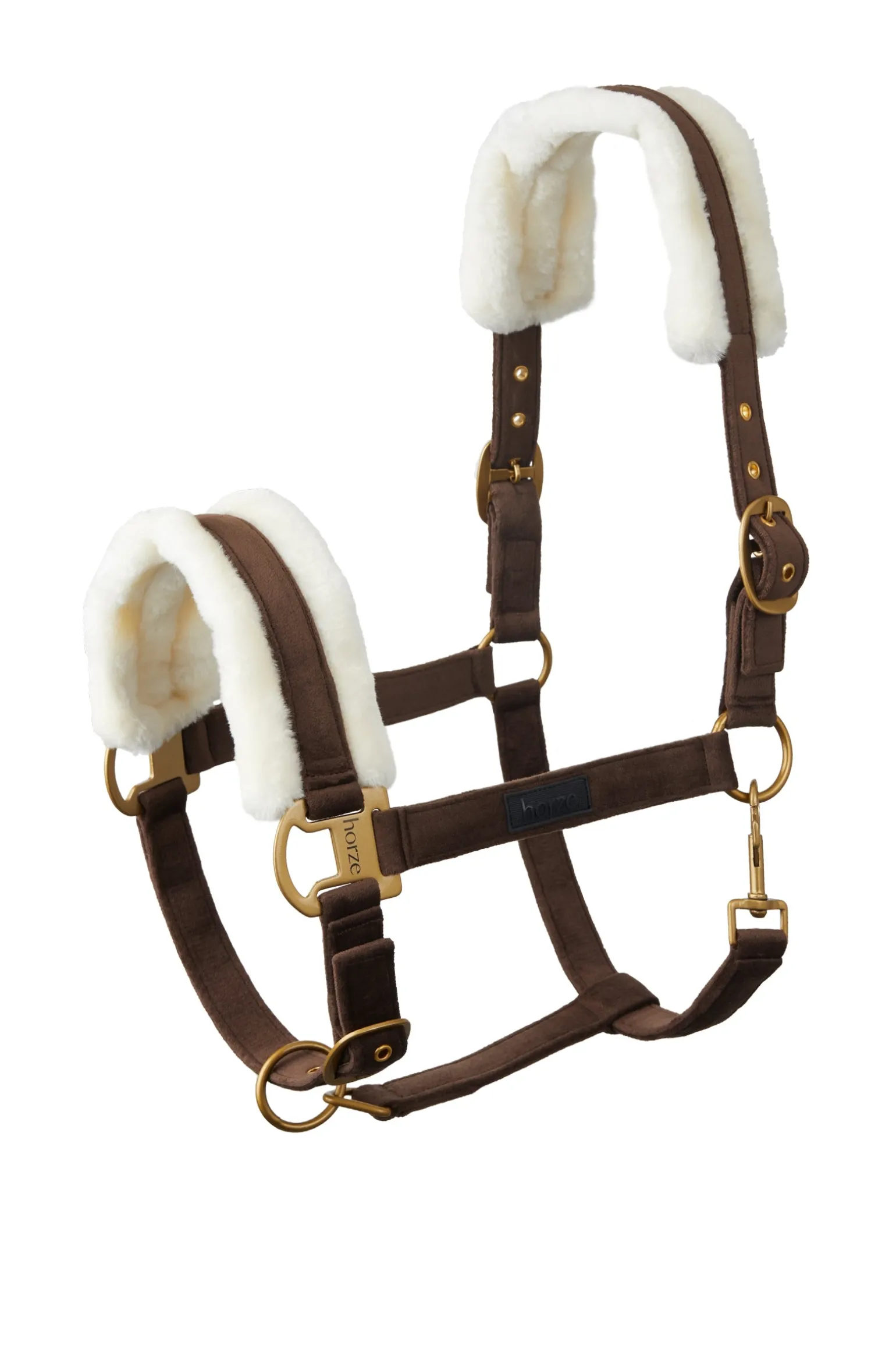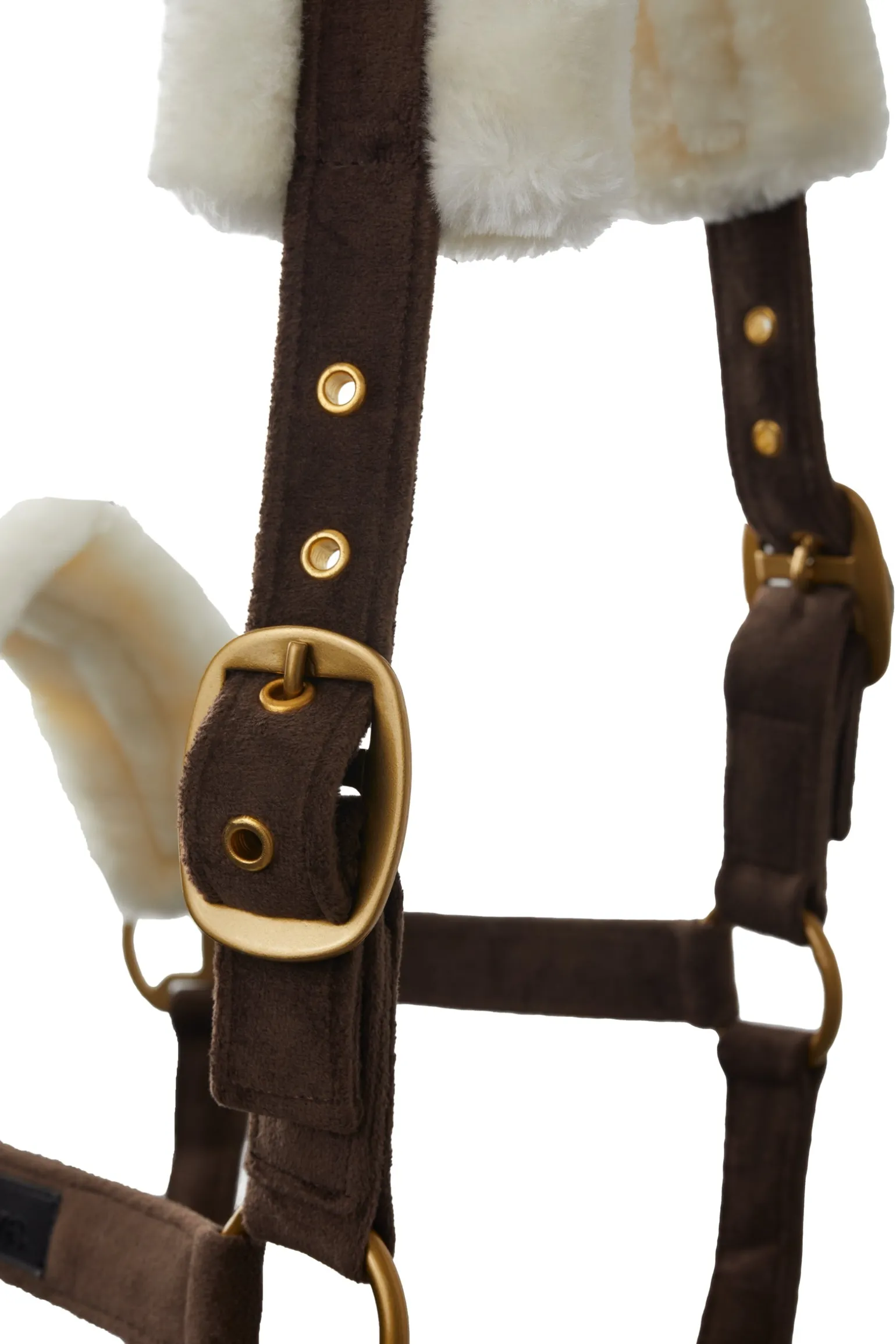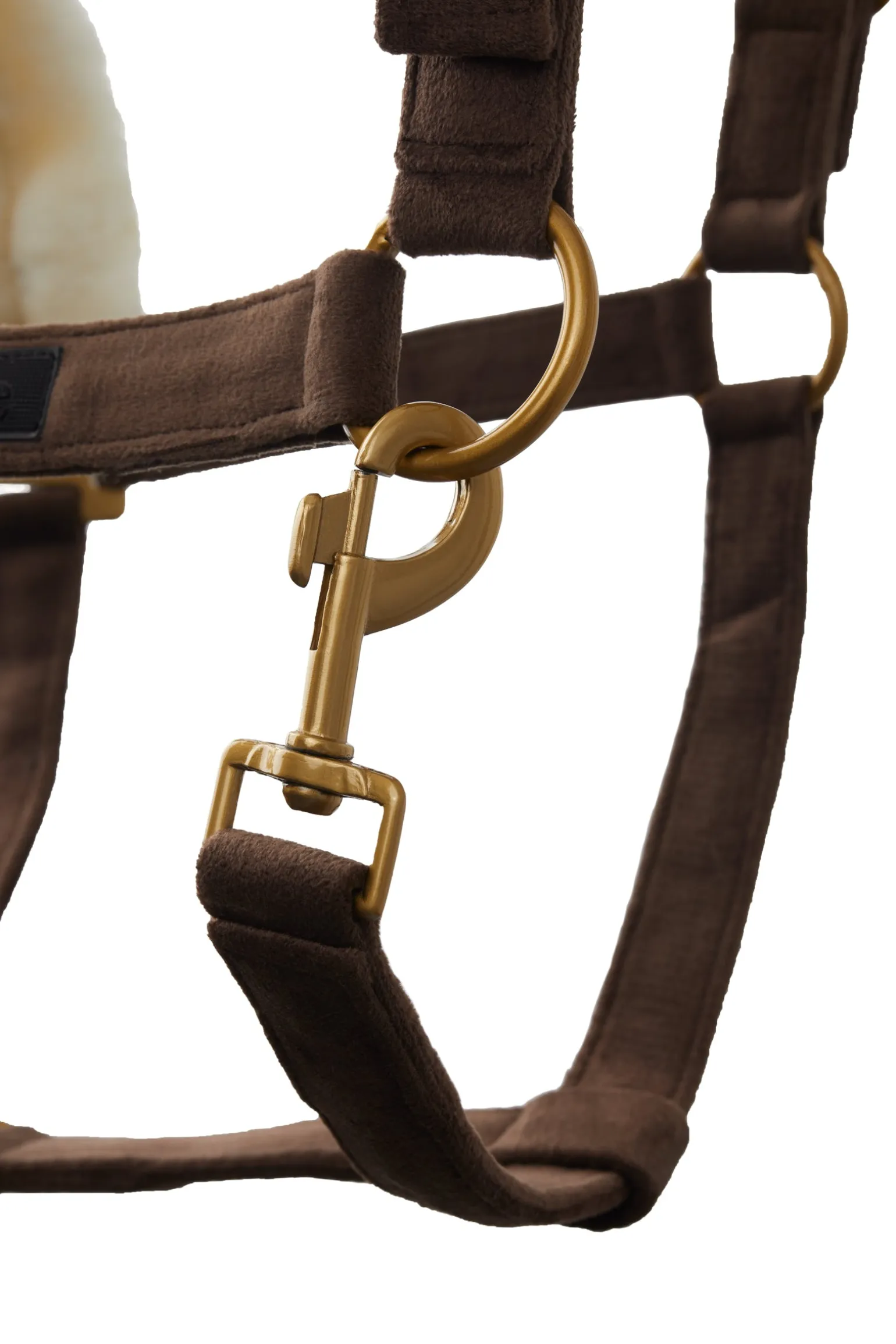 Das Halfter aus weichem Samtstoff bietet ein luxuriöses und weiches Gefühl, ohne dabei an Stabilität einzubüßen. Das strapazierfähige Gurtband im Inneren sorgt für zuverlässige Leistung und eine lange Lebensdauer. Mit den verstellbaren Beschlägen an Nase und Genick kannst du die Passform ganz einfach an den Bedarf deines Pferdes anpassen.