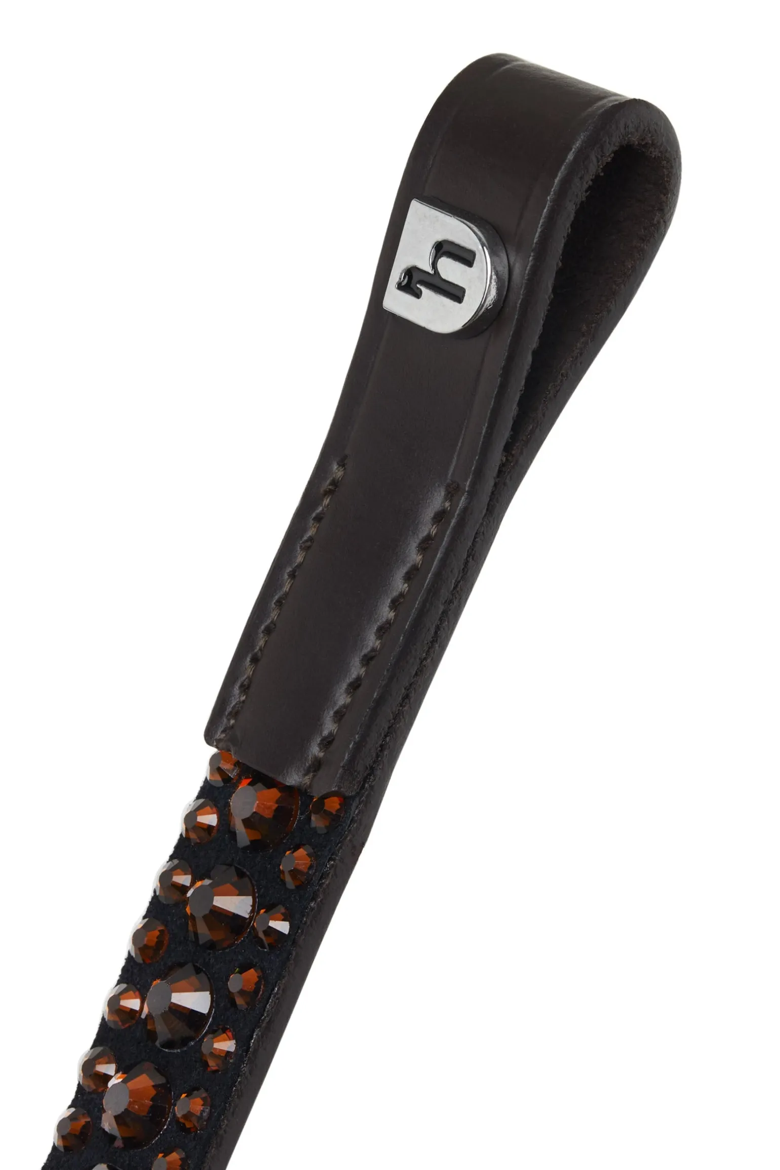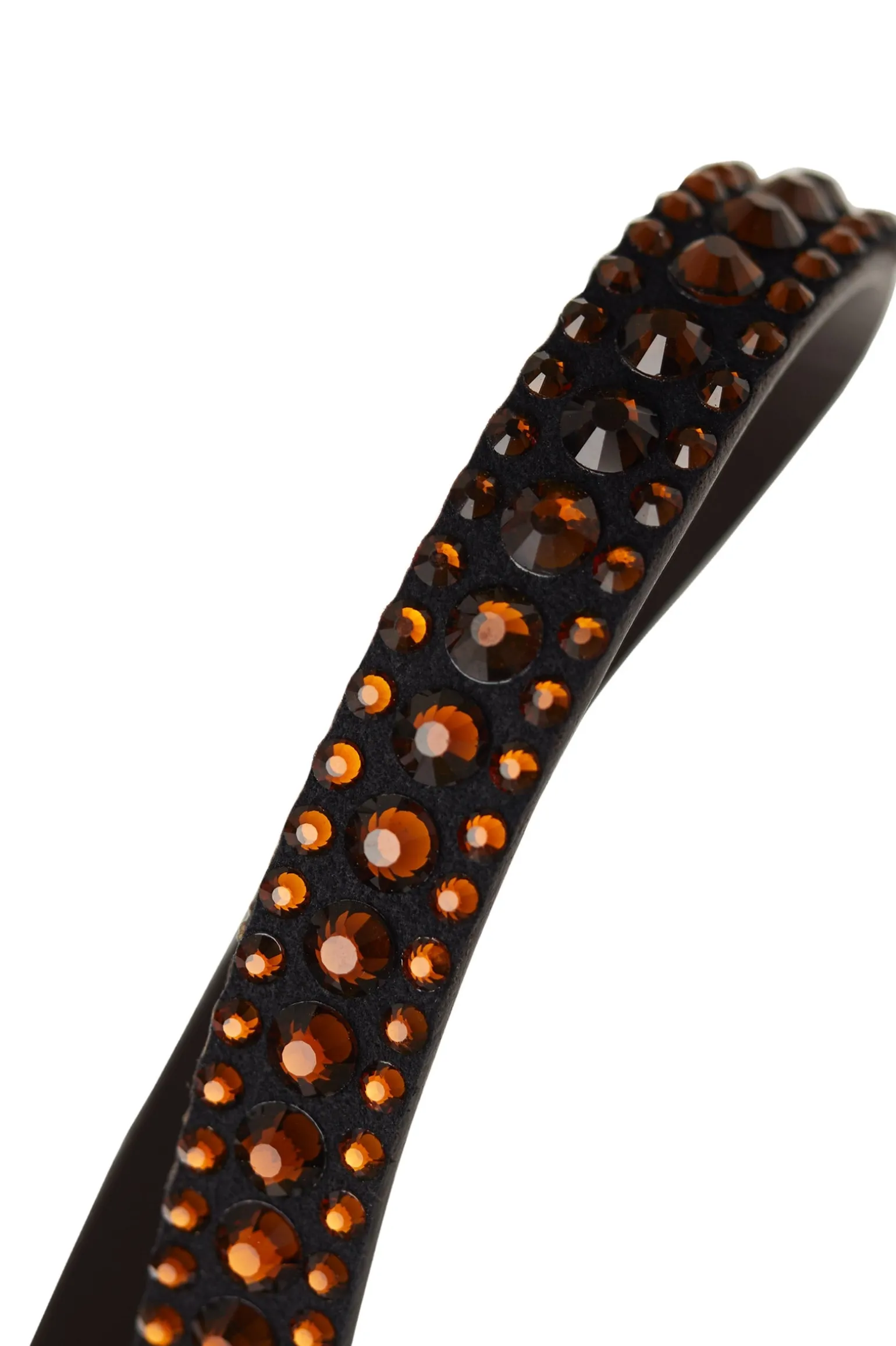 Der geformte Stirnriemen mit weicher Lederpolsterung und drei Reihen von Kristallen verleiht jeder Zäumung einen eleganten Touch.