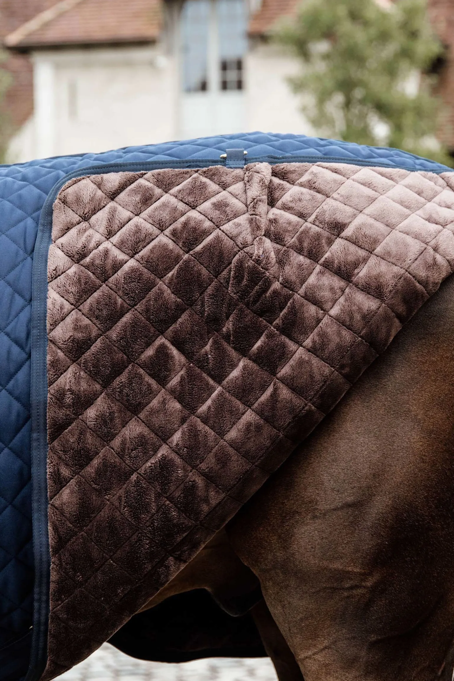 Das Innere der Stalldecke ist mit dem für Kentucky charakteristischen künstlichen Kaninchenfell ausgekleidet. Dieses verhindert Scheuern und bringt das Fell des Pferdes zum Glänzen. Außerdem schafft das künstliche Kaninchenfell eine isolierende Schicht um das Pferd, da es die Körperwärme des Pferdes einfängt und hält. Für noch mehr Wärme gibt es eine 200g Faserfüllung. Diese Füllung wirkt ähnlichen wie Daunen, ist aber freundlicher für den Anwender. Das Äußere dieser edlen Stalldecke besteht aus hochfestem 600D Polyester und ist in Rautenmuster gesteppt. Die Steppung kombiniert mit dem 600D Polyester macht es unglaublich schwer die Decke zu zerreißen. Späne bleiben auch nicht am Stoff haften.