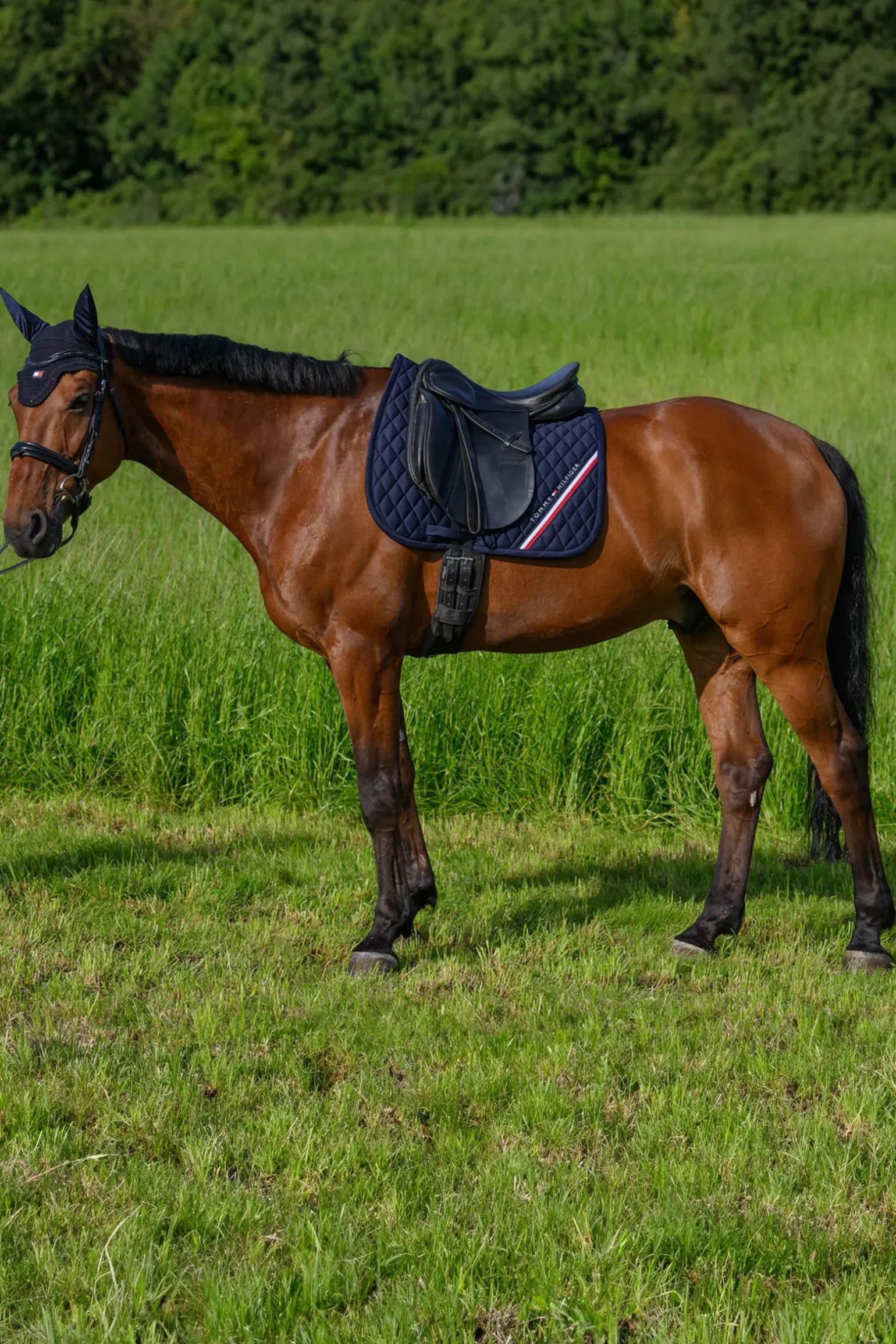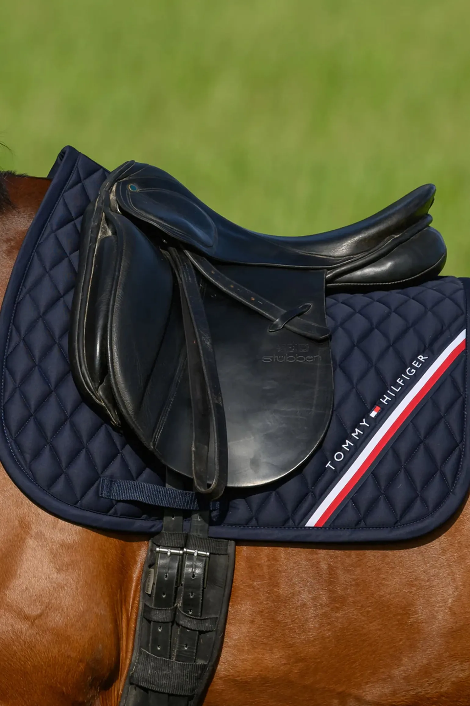 Die Tommy Hilfiger Equestrian Stanford Dressurschabracke vereint Eleganz und Funktionalität. Mit ihrer klassischen Rautensteppung bietet sie eine weiche Haptik und eine perfekte Passform für maximalen Komfort. Die gestickte Tommy Hilfiger Logo-Stickerei und das Global Stripe Branding auf beiden Seiten setzen stilvolle Akzente. Das waffelstrukturierte Innenfutter sorgt für optimale Atmungsaktivität und Feuchtigkeitsregulierung, damit sich dein Pferd bei jeder Reiteinheit rundum wohlfühlt.