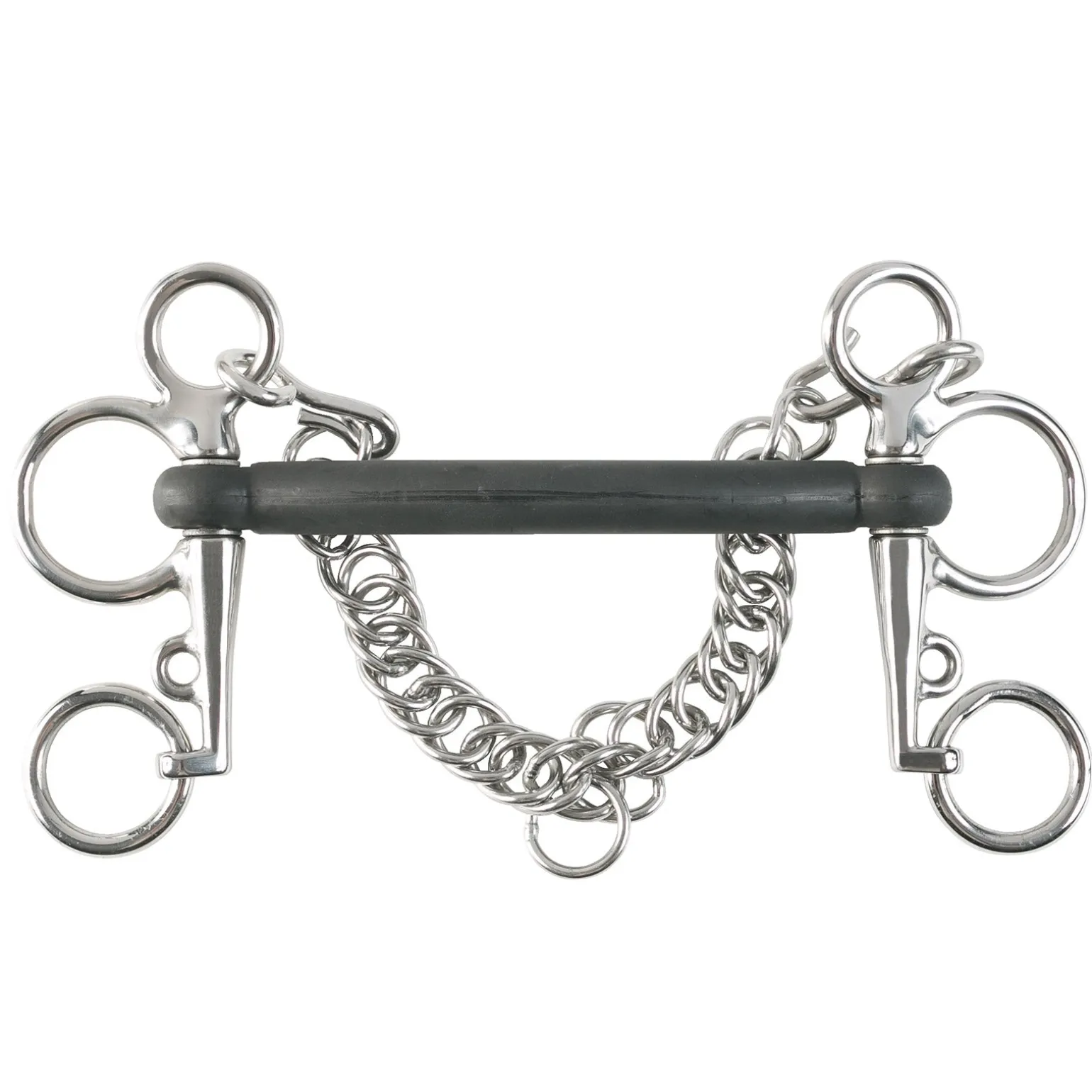 Das Stangengebiss im Pelham-Stil ist eine großartige Option für Pferde, die zusätzliche Kontrolle benötigen. Dieses mit Gummi ummantelte Gebiss ist schonend, aber effektiv um die Kopfhaltung und die Anlehnung zu verbessern. Gummigebisse kommen empfindlichen Pferden zugute, da das Mundstück flexibel ist und das Gummi das Kauen und Speicheln anregt. Das feste Mundstück sorgt dafür, dass sich der Druck auf die Zunge nicht verändert.