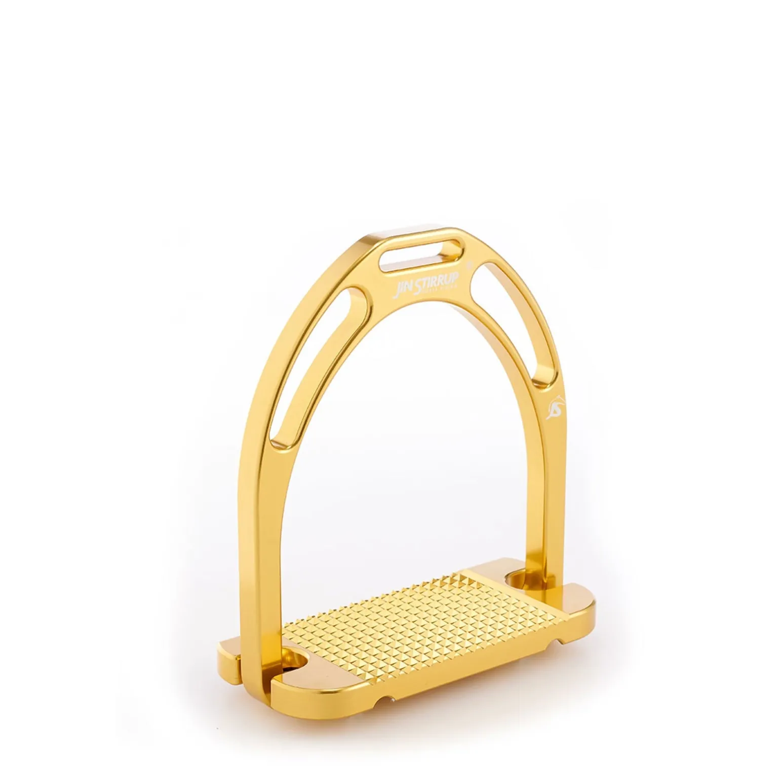 Jin Stirrups Steigbügel stehen für das revolutionäre Design und die Vorreiter-Funktion der Verwendung eines Materials wie Aluminium. Aluminium ermöglicht uns einen Steigbügel herzustellen, der ein maximales Gewicht von 300 Gramm aufweist, das niedrigste Gewicht in dieser Kategorie, ohne Einbußen und Kompromisse in der Sicherheit zu machen.• Der Jin Stirrup Steigbügel bietet einen „Grip“ ohne Kompromisse, dank der speziellen „Diamant“ Struktur des Trittbereiches und der großzügigen Oberfläche.• Beides, die große Form und die besondere Griffigkeit des Jin Stirrup, geben ein besseres Gefühl der Stabilität und eine Verbundenheit mit Ihrem Fuß.• Jin Stirrup Steigbügel wurden aus zertifiziertem Sky-High Aluminium und mit angesehenen CNC Maschinen hergestellt.• Die Farbgebung fand durch Eloxieren statt und geben dem Produkt einen effektiven Schutz vor Korrosion und zuletzt bietet es die Möglichkeit, aus vielen verschiedenen Farben zu wählen.“