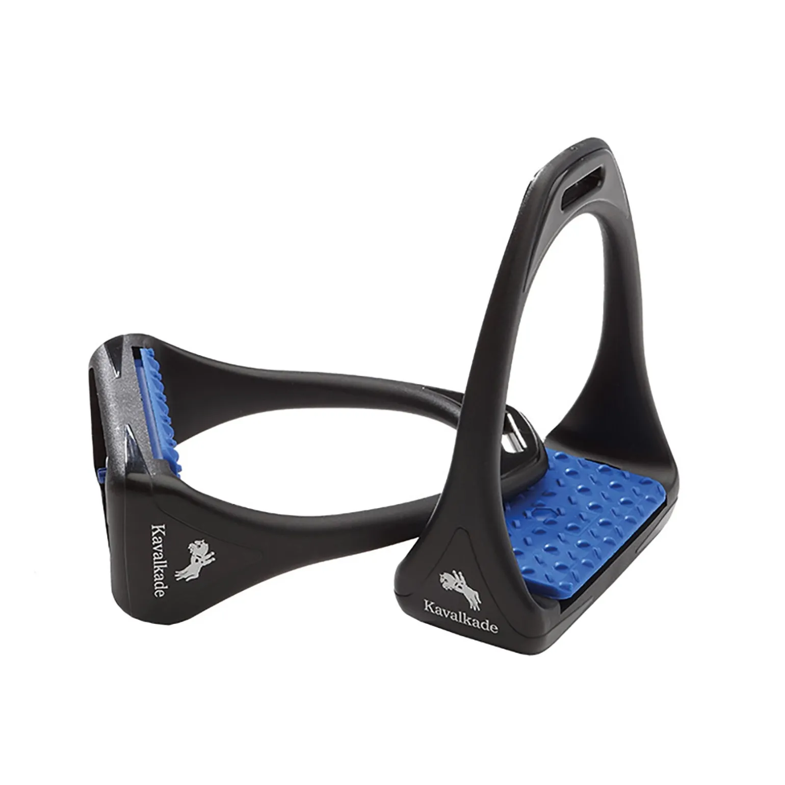 The Kavalkade stirrups ‚Reflex‘ serve a wide, glass-fiber reinforced swing-tread. They rest on a shock-absorbing cushion which cushions shocks and reduces the tension in the knees and joints. The slim profile / body of it is specifically formulated, that the foot in an emergency can be quickly removed from the stirrup.