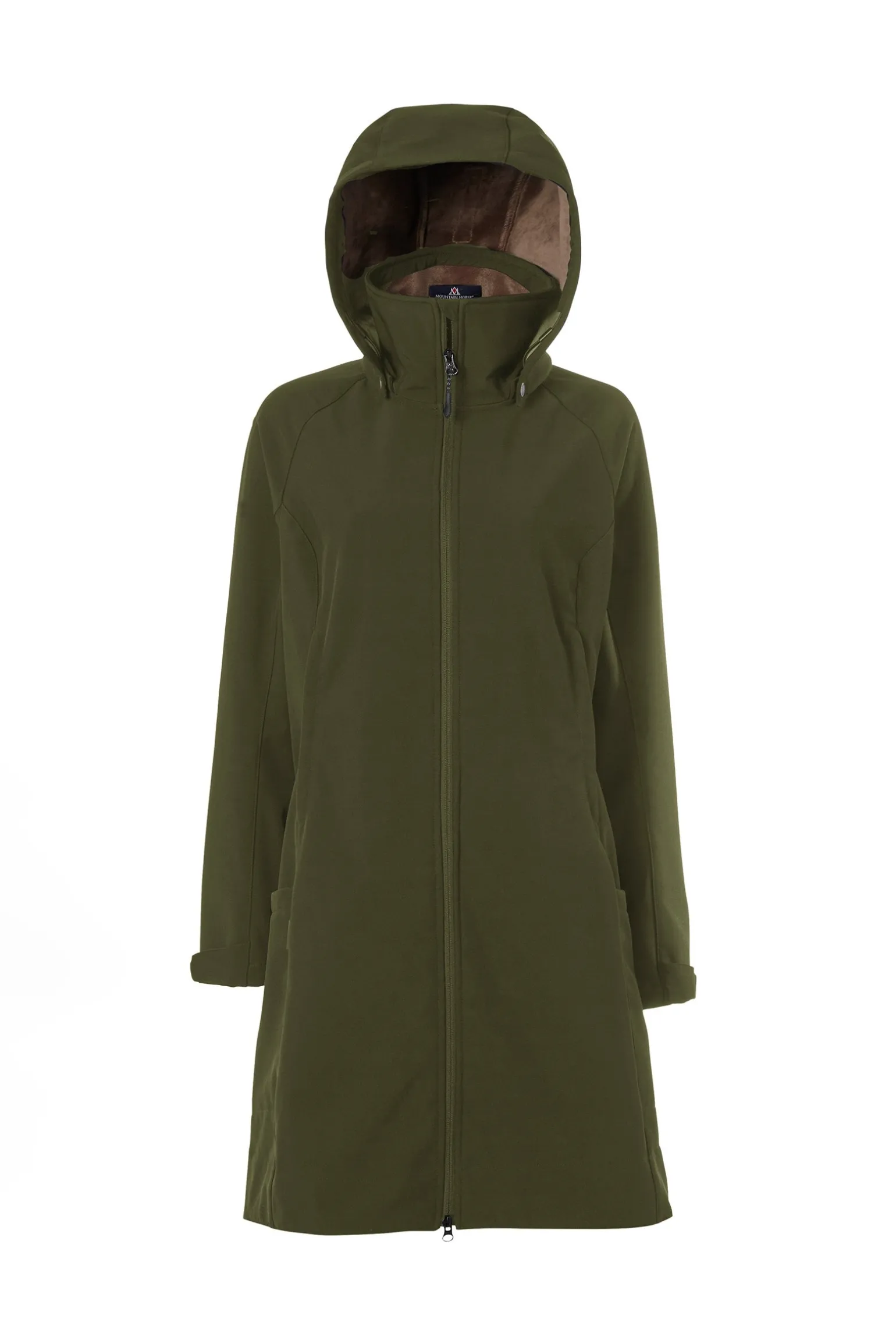 Funktionelle wasser- und windabweisende Softshell-Parka mit femininer Passform. Gefüttert mit weichem Teddy, lange Reißverschlussöffnung am Rücken und abnehmbare Kapuze.