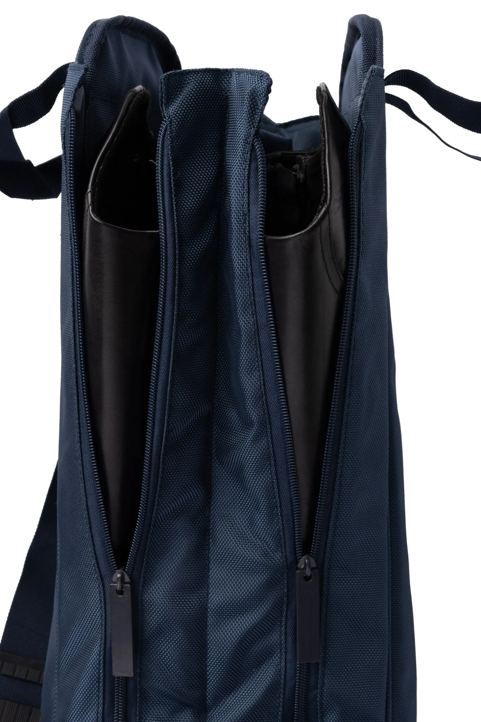 Die weiche Schaumstoff-Fütterung dieser tollen Stiefeltasche separiert die Kammern und wrid Ihre glänzenden hohen Stiefel schützen. Die robuste Tasche ist perfekt, um Ihre Stiefel zum Turnier mitzunehmen oder um sie in der Sattelkammer aufzubewahren. Der starke Reißverschluss ist robust und einfach in der anwendung, Griff und Schulterriemen machen das Tragen einfach, wenn Sie bereits volle Hände haben. Freches Horze Logo sieht auf der tiefblauen Tasche toll aus.