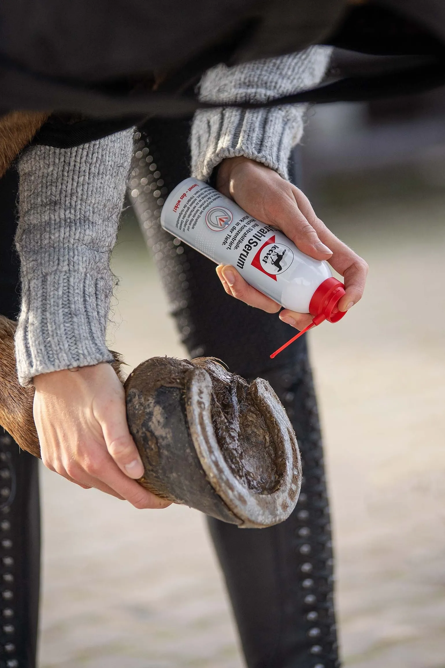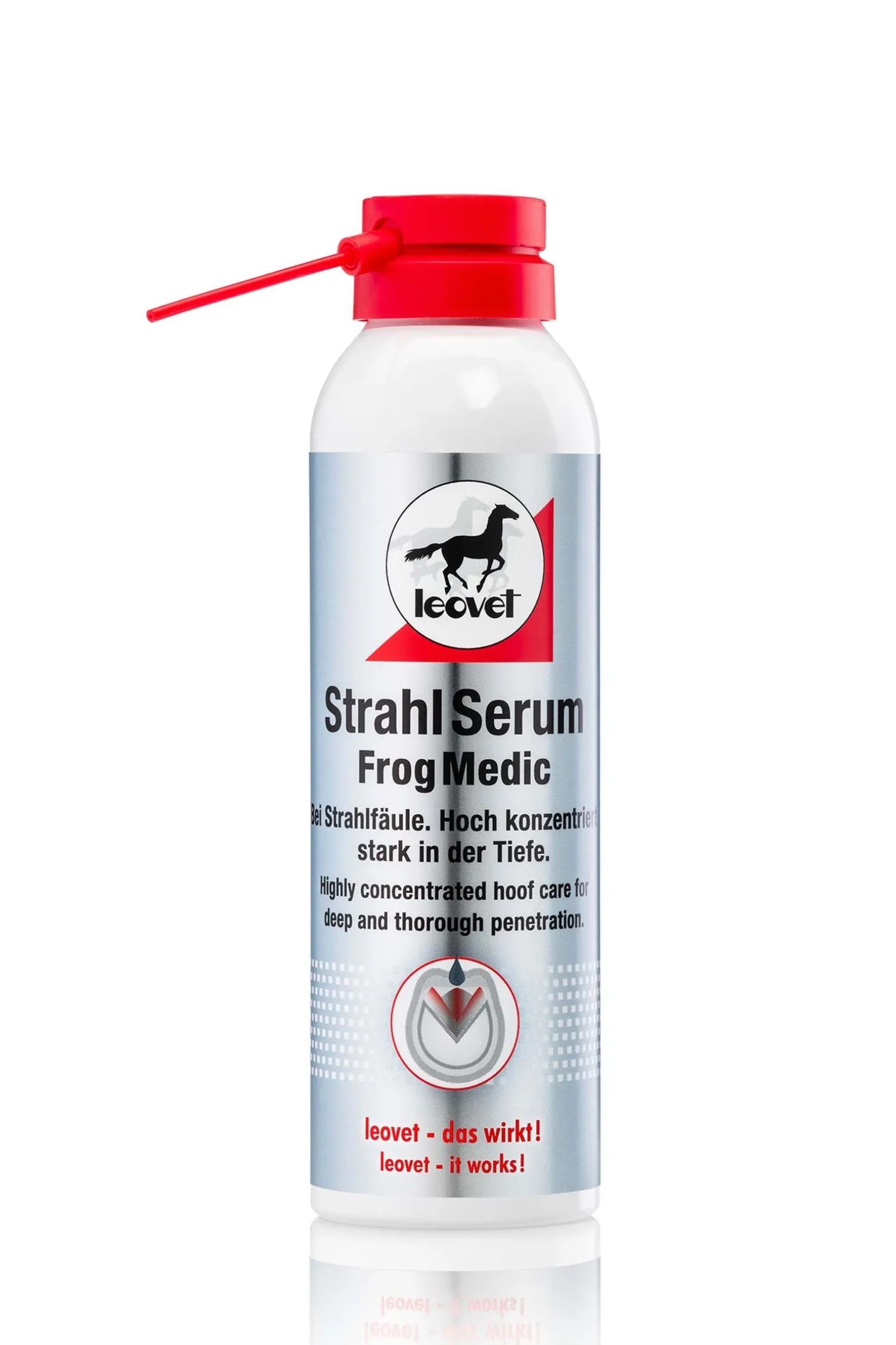 StrahlSerum ist die spezielle Hufpflege bei Strahlfäule: Es kriecht in die Furchen und feinste Risse und Taschen und dringt so zu verfaulten Stellen vor. StrahlSerum trocknet den Strahl, sodass gesundes Gewebe nachwachsen kann. Fördert die Hufgesundheit!