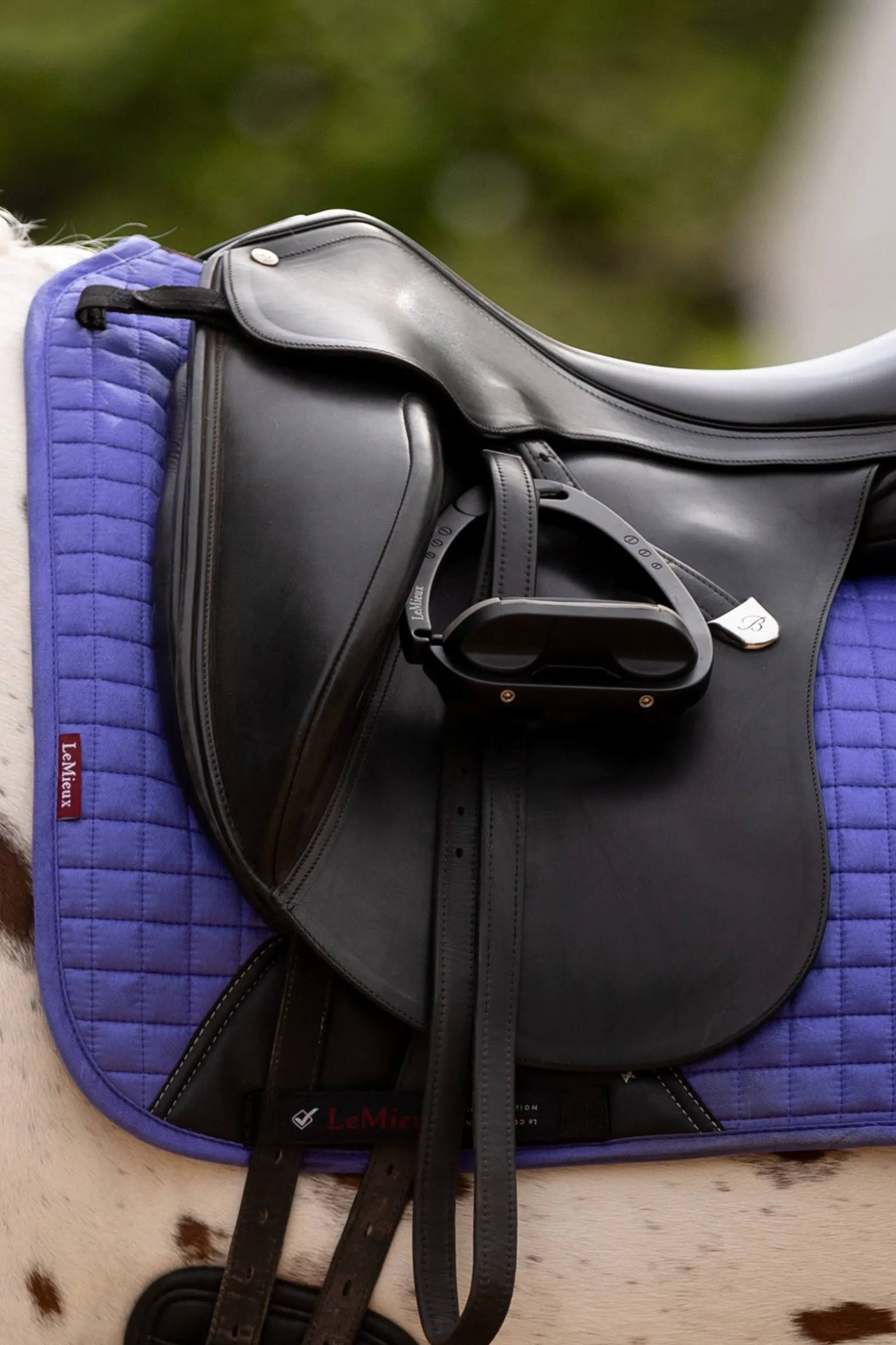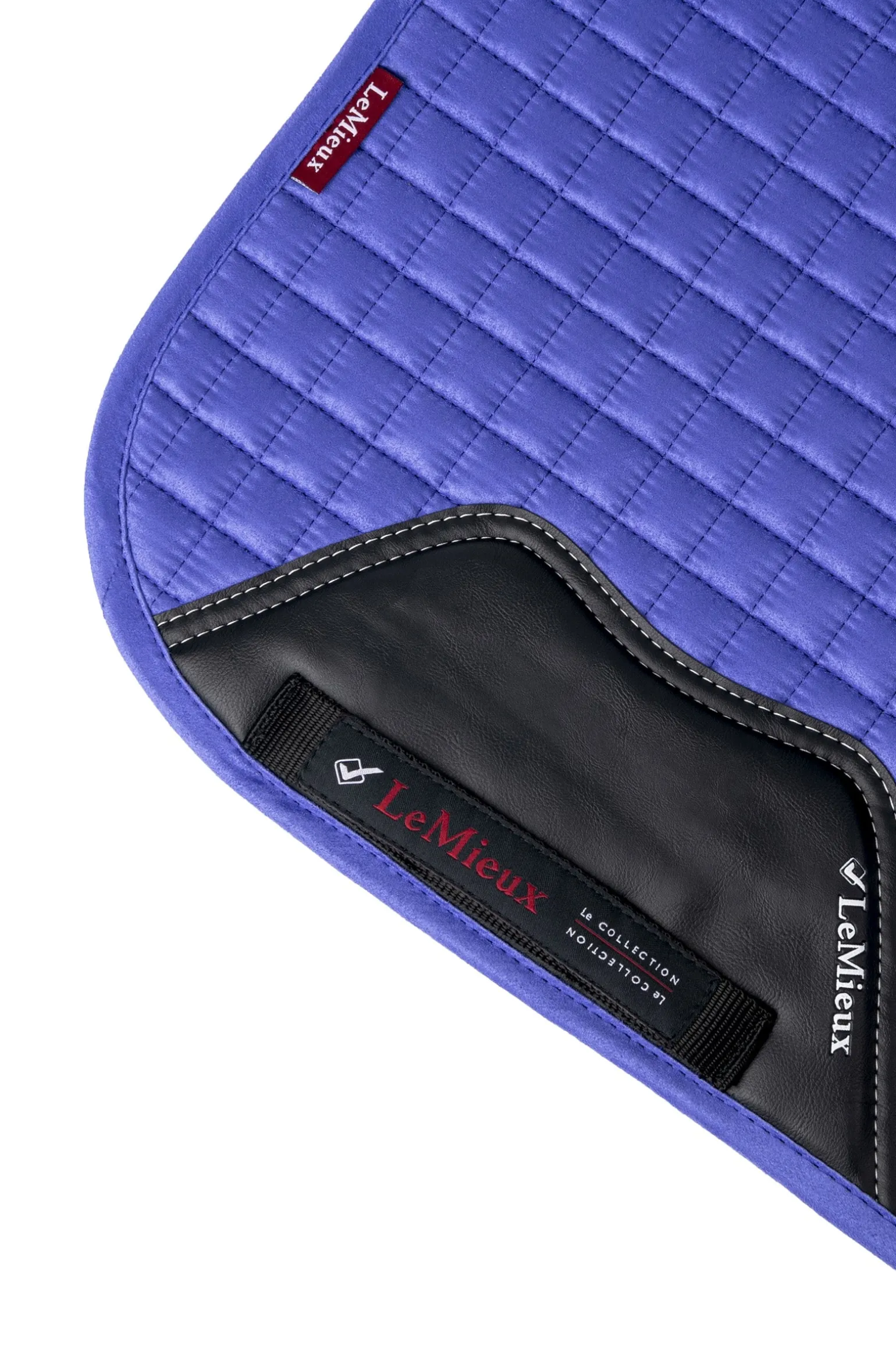 Mit dem hohen Widerrist, den langen Standardgurten und dem neuen PU-Leder-Gurtschutzbereich passt sie zu einer Vielzahl von Vielseitigkeitssätteln. Die luxuriöse Wildlederoberseite und die neue weiche Wildledereinfassung werden durch ein superweiches Bambusfutter ergänzt, das den Schweiß unter dem Sattel absorbiert und kontrolliert und für einen angenehmen und sicheren Sitz sorgt.