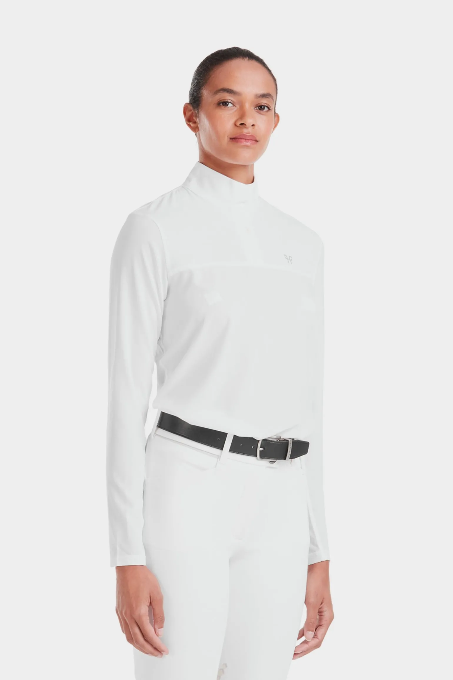 Für das Reiten entwickelt, hat dieses langärmlige Shirt einen lockeren Schnitt, einen stilvollen Hemdkragen sowie einen Reißverschluss- und Clipverschluss. Leicht und atmungsaktiv dank des Meshs unter den Armen und auf dem Rücken bietet es optimalen UV-Schutz.