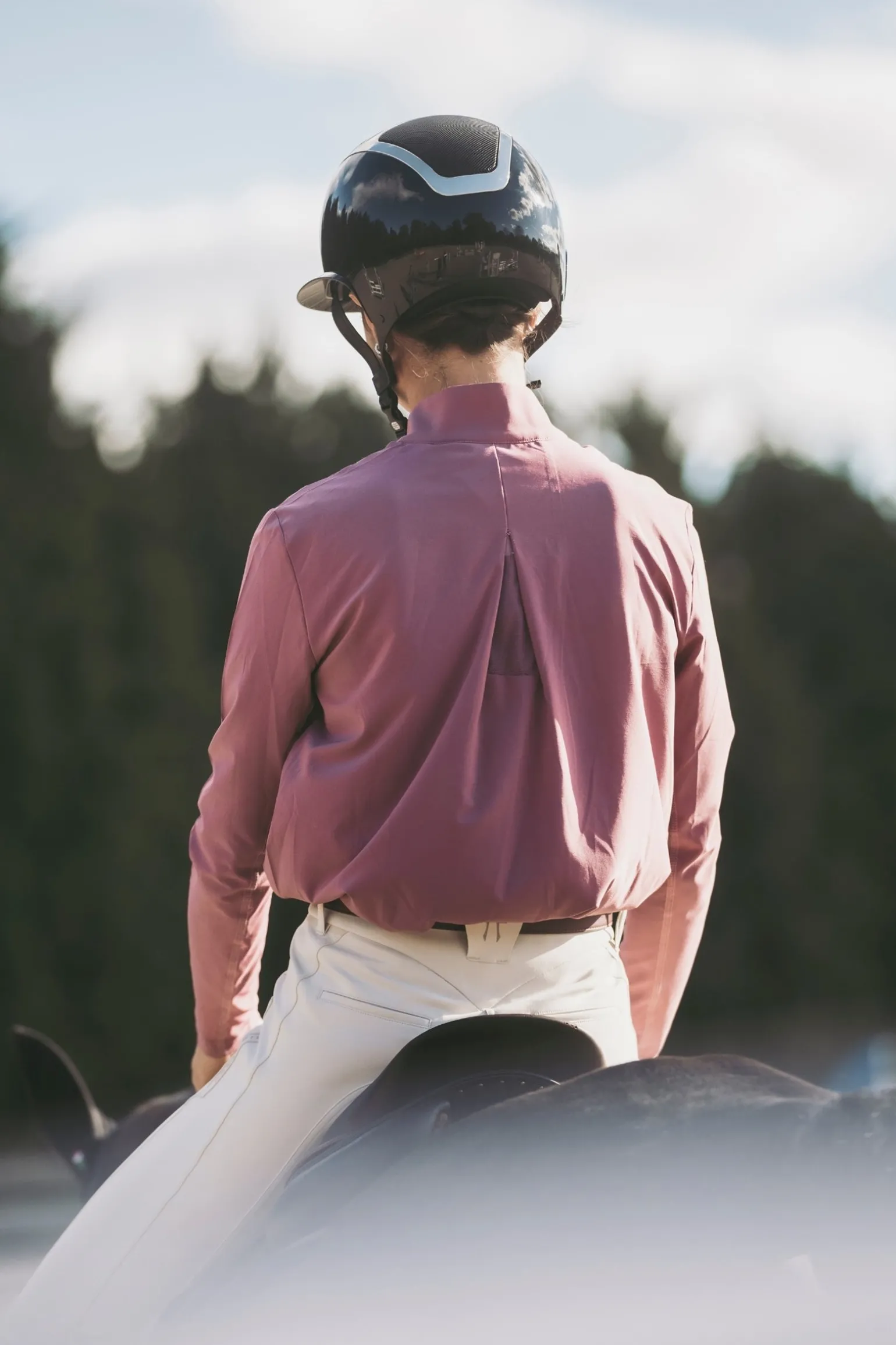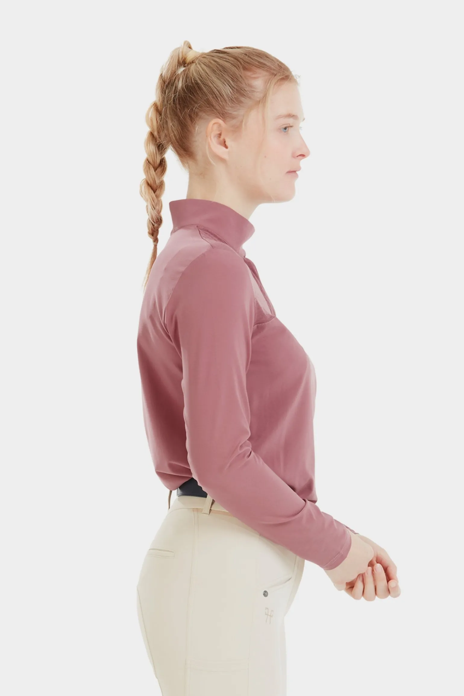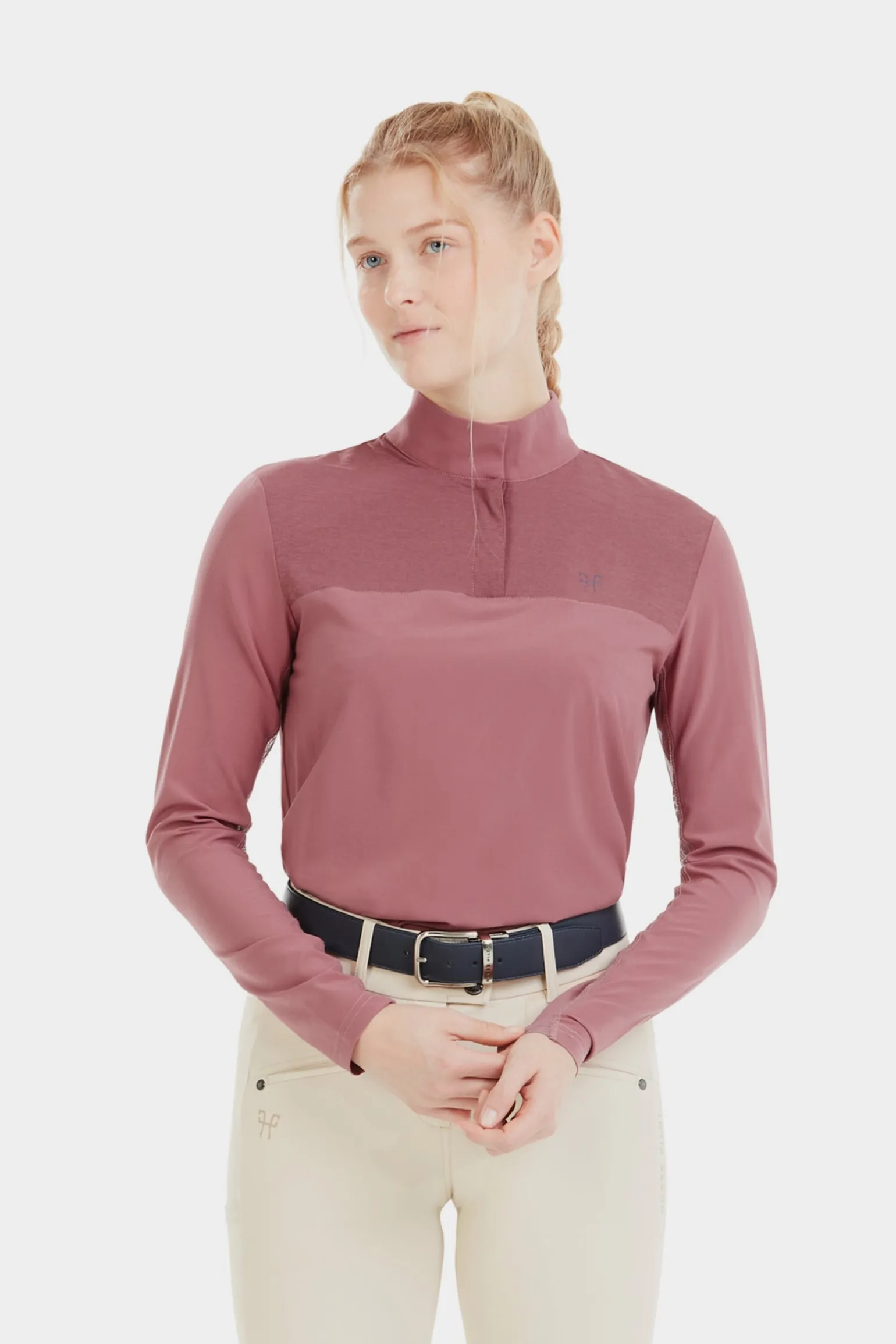 Für das Reiten entwickelt, hat dieses langärmlige Shirt einen lockeren Schnitt, einen stilvollen Hemdkragen sowie einen Reißverschluss- und Clipverschluss. Leicht und atmungsaktiv dank des Meshs unter den Armen und auf dem Rücken bietet es optimalen UV-Schutz.