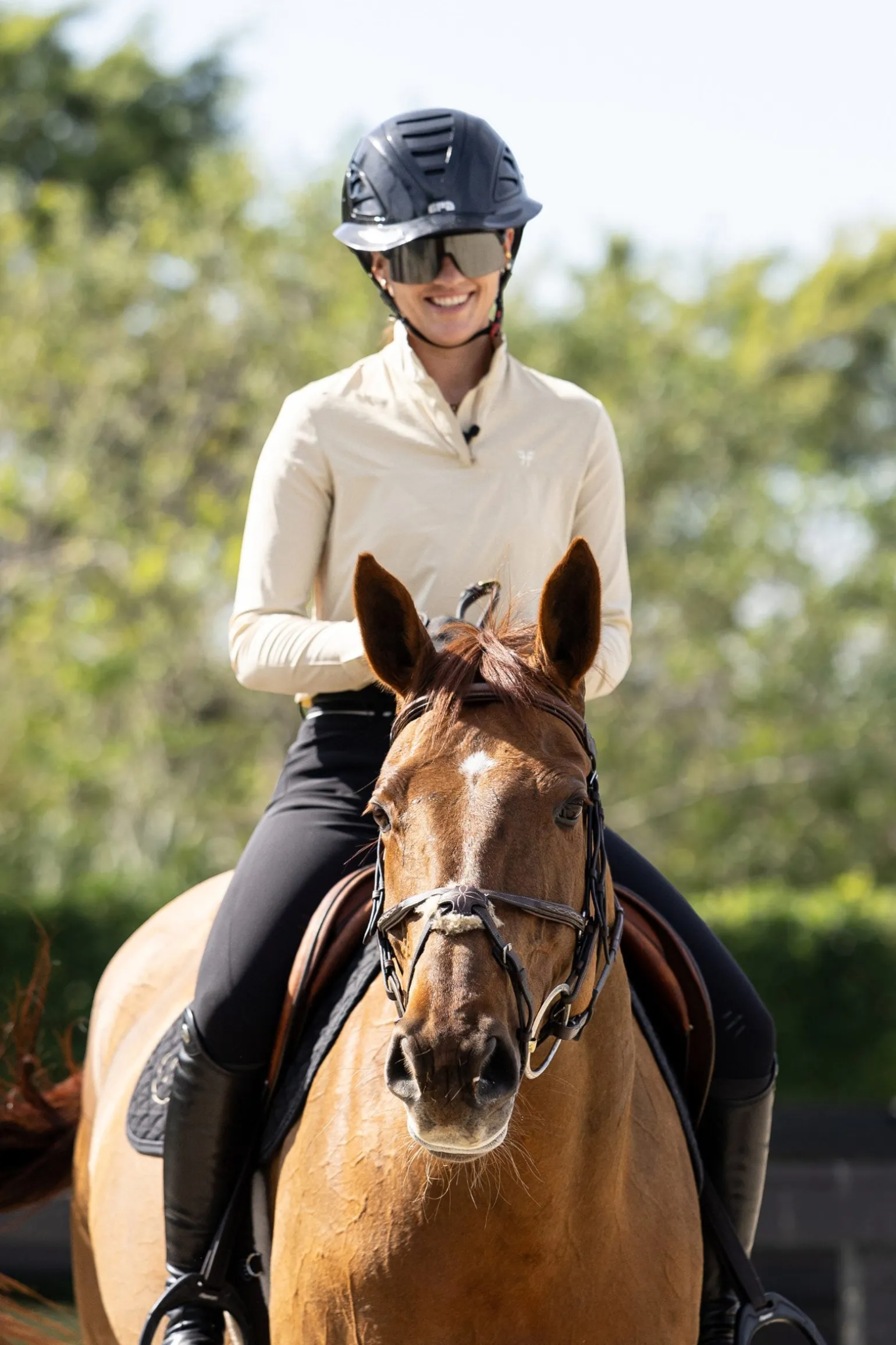 Für das Reiten entwickelt, hat dieses langärmlige Shirt einen lockeren Schnitt, einen stilvollen Hemdkragen sowie einen Reißverschluss- und Clipverschluss. Leicht und atmungsaktiv dank des Meshs unter den Armen und auf dem Rücken bietet es optimalen UV-Schutz.