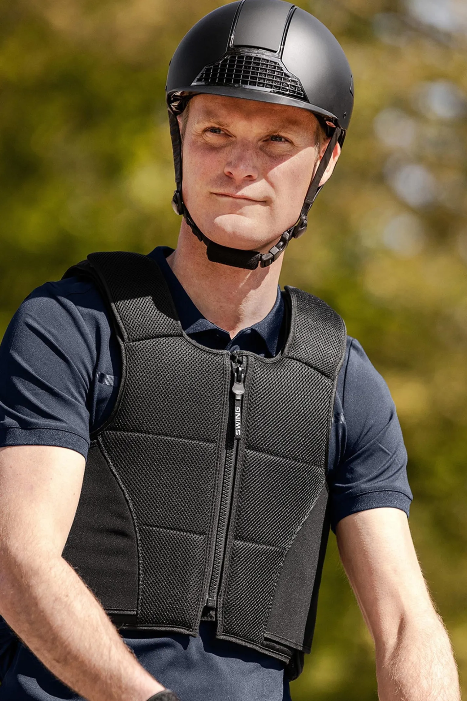Der Swing Bodyprotektor P24 Max – eine Sicherheitsweste, die neue Maßstäbe im Reitsport setzt. Sie entspricht den höchsten Sicherheitsstandards der EN 13158:2018 Level 3 & BETA Standard 3, und bietet einen umfassenden 360° Rundumschutz für ultimative Sicherheit. Mit einem 4-lagigen SWING-Flex Protektoren-Panel von nur 20 mm Stärke ist diese Weste nicht nur bemerkenswert dünn, sondern auch hervorragend belüftet, was eine optimale Anpassung an die Bewegungen des Reiters ermöglicht. Die verbesserte ergonomische Schnittführung und seitliche Klettverschlüsse garantieren eine optimale Passform, die sich perfekt an den Körper anpasst. Das elastische, leichte und atmungsaktive Gewebe sorgt für maximalen Tragekomfort, sodass Reiter sich ganz auf ihre Leistung konzentrieren können. Der Frontzipper mit dem Swing Safety Puller ermöglicht ein müheloses Öffnen und Schließen, selbst in Notfällen oder beim Tragen von Handschuhen. Der hochwertige CMZ-Reißverschluss gewährleistet ein einfaches An- und Ausziehen. Zusätzlich sind die Protektoren im Seiten- und Rückenbereich herausnehmbar, um eine einfache Reinigung und Pflege zu gewährleisten. Der Swing Bodyprotektor P24 Max ist die ideale Wahl für Reiter, die höchsten Schutz und uneingeschränkte Bewegungsfreiheit benötigen – sei es im Gelände oder beim täglichen Training. Entdecke die Freiheit des Reitens mit einer Weste, die Sicherheit und Vielseitigkeit vereint.