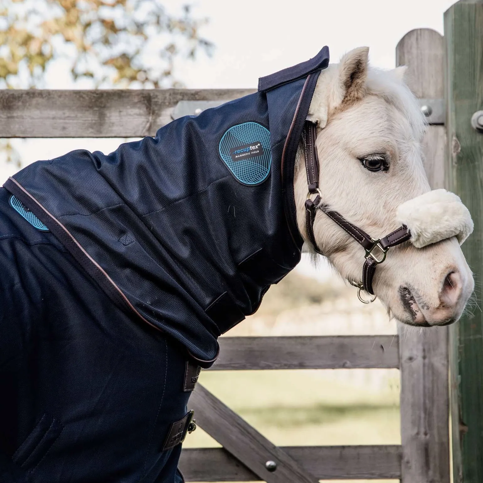 Eines der ersten Produkte im Kentucky Horsewear-Sortiment waren die Magnetic Stable Boots Recuptex. Da es sich um ein sehr erfolgreiches Produkt mit sehr hoher Kundenzufriedenheit handelt, haben wir uns dazu entschieden, auch eine Magnetic Rug Recuptex Deke zu entwickeln. Auch diese verwendet die gleiche RecuptexStofftechnologie, die sich als Stand der Technik erwiesen hat. Sie enthält feinstes, auf der Bekaert BEKINOX®-Technologie basierendes Inox-Garn (mit Fasern aus Edelstahl), das in den Stoff eingewebt wird. Dadurch entsteht ein Faraday-Käfig, der die im Körper des Pferdes erzeugten Magnetfelder reflektiert. Die Erhaltung dieser Felder fördert die Durchblutung und den Sauerstofffluss. Darüber hinaus beschleunigt es auch den Prozess der Erholung in einer geschützten, natürlichen Art und Weise. Die Decke besteht aus einem sehr starken Gewebe, das sowohl im Sommer als auch im Winter in Kombination mit anderen Decken verwendet werden kann. Es ist ideal, um die Muskeln des Pferdes vor und nach dem Reiten zu entspannen und kann auch über Nacht sehr gut auf dem Pferd gelassen werden. Wir empfehlen, die Decke zunächst eine Stunde zu verwenden und die Anzahl der Stunden an Nutzung beim Pferd in den folgenden Tagen schrittweise zu erhöhen, damit es sich an das Kribbeln gewöhnen kann, das entstehen kann. Maschinenwaschbar bei 30°, kein Trockner.