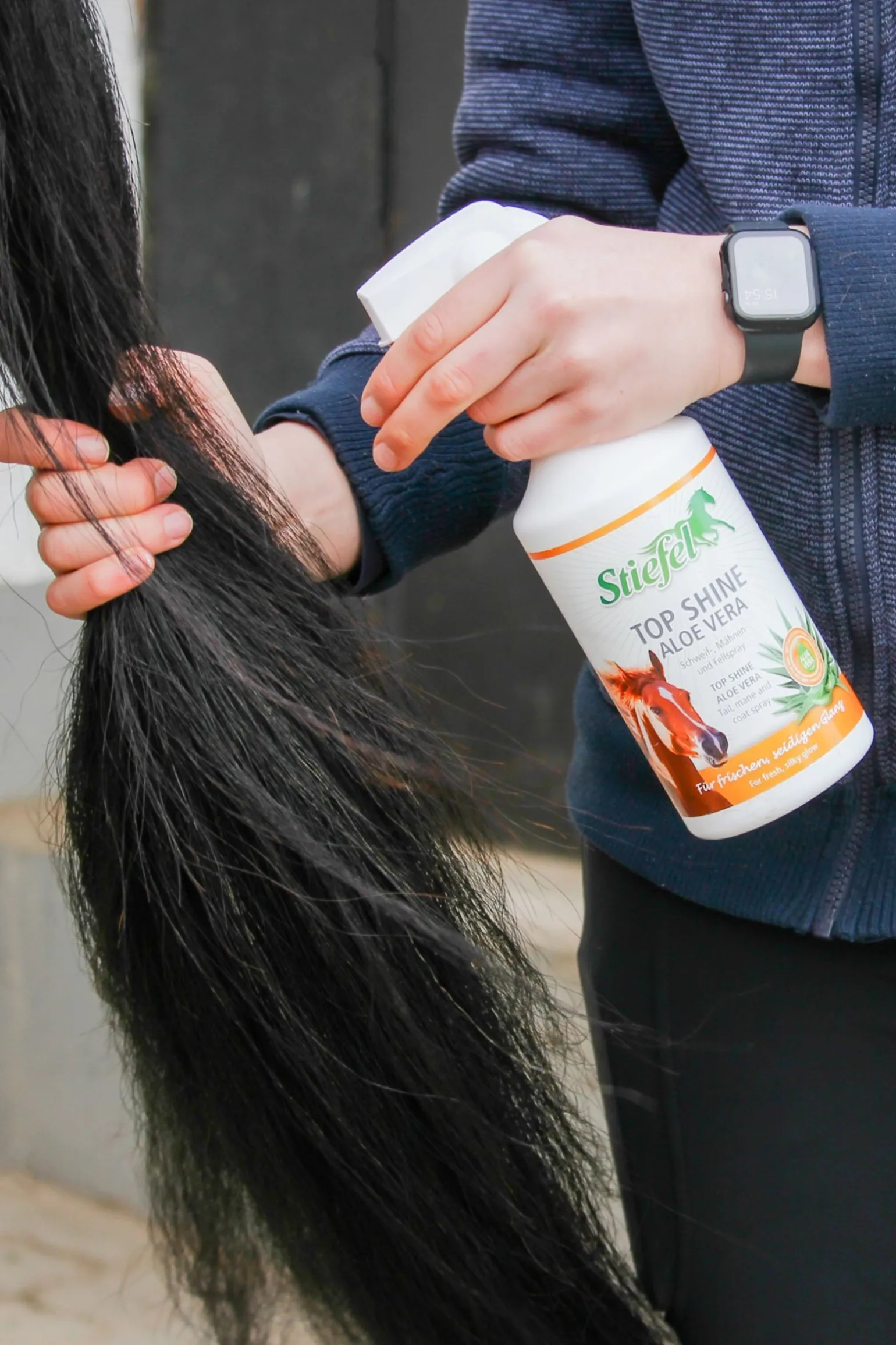 Stiefel Top Shine Aloe Vera ist die hochwertige Pflege für Fell, Mähne und Schweif des Pferdes. Durch die enthaltene Aloe Vera kann ein zusätzlicher Pflegeeffekt für gereizte Haut erreicht werden. Mähne und Schweif lassen sich leichter bürsten und von Knoten befreien. Das Fell wird schonend gepflegt und erhält einen seidigen Glanz. Der unsichtbare Schutzfilm, der Haare und Fell umgibt, kann staubabweisend wirken und eine erneuten Knotenbildung verhindern. Anwendung: Haare und Fell sparsam einsprühen. Langhaar verlesen und durchkämmen. Nach dem Antrocknen Haare und Fell gründlich ausbürsten. Vor Gebrauch schütteln!