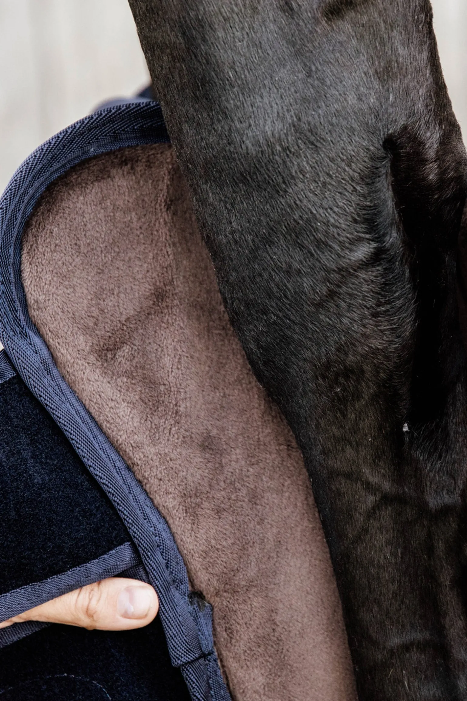 Die Außenseite der Transportgamaschen ist aus einem starken 600D Ripstop-Polyester. Ripstop ist eine spezielle Webtechnik, die das Gewebe widerstandsfähiger gegen Reißen macht. Der Fesselbereich ist mit Kentucky Kunstleder verstärkt, um diese empfindliche Zone besonders zu schützen. Die Transportgamaschen haben ein Futter aus künstlichem Kaninchenfell, das besseren Komfort bietet, Scheuern verhindert und die Beintemperatur reguliert. Im Inneren der Gamaschen findet sich ein stoßdämpfender Schaumstoff, um maximalen Schutz zu bieten. Alle Materialien sind leicht, atmungsaktiv, langlebig und sorgen für das Wohlbefinden deines Pferdes auf Reisen.