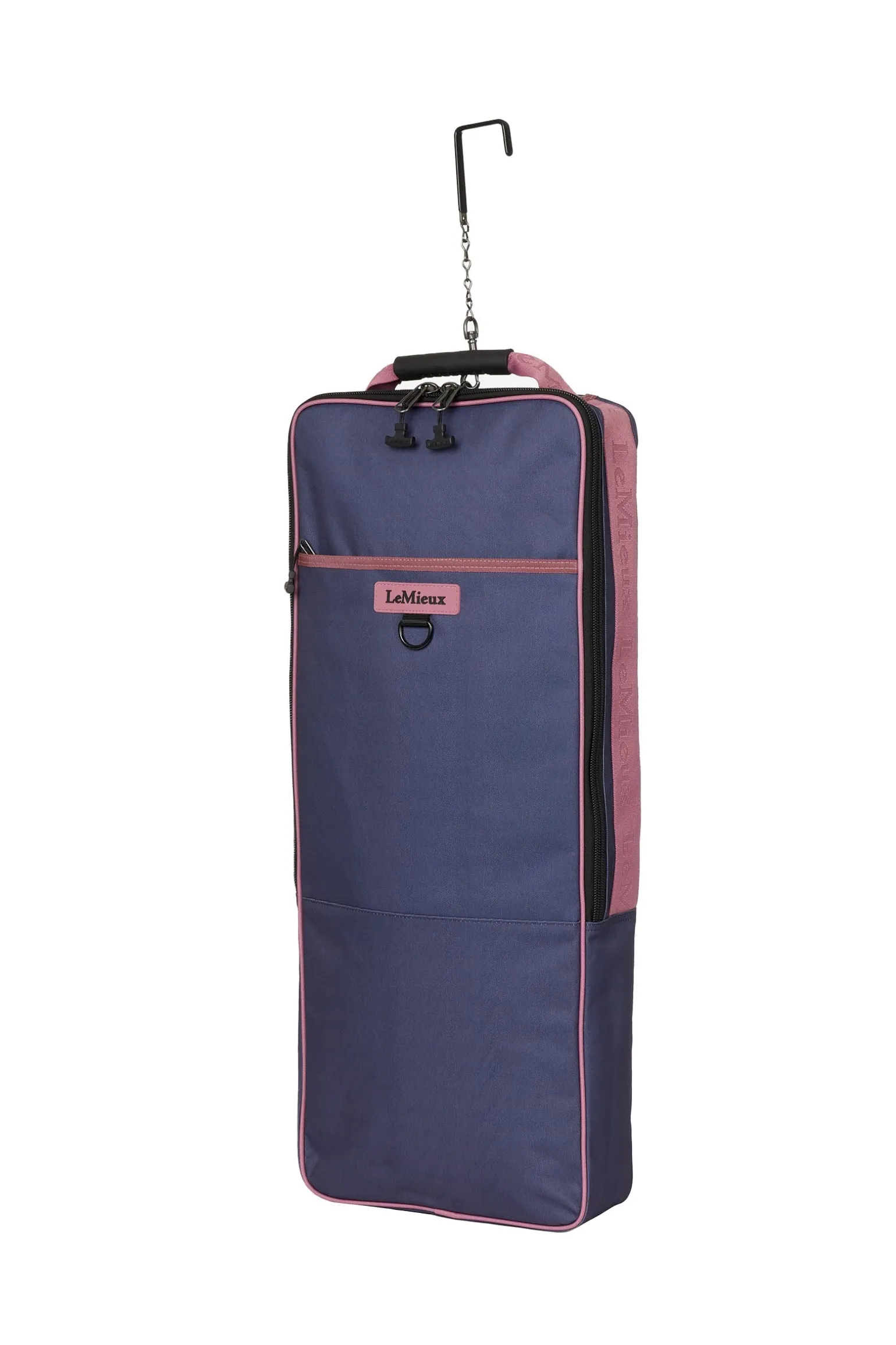 Halte deine Trense sauber und gut geschützt mit dieser besonders robusten Trensentasche. Diese wasserdichte und atmungsaktive Tasche für eine Trense verhindert Feuchtigkeitsstau und schützt sie vor Schimmelbildung – ideal für den Transport zu Turnieren oder die langfristige Aufbewahrung. Im Inneren befindet sich ein Fach zum Aufhängen der Trense, mit sicherem Frontreißverschluss und zwei Clips zur Fixierung. Der gepolsterte Tragegriff sorgt für hohen Tragekomfort. Stilvolle Details und das LeMieux-Logo verleihen der Tasche eine elegante Optik.