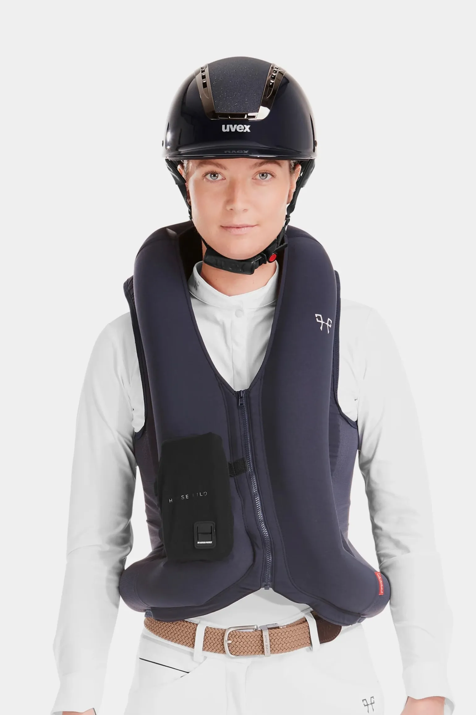 Richtiger Schutz für mehr Vertrauen im Sattel. Wie garantiert man Sicherheit, während man Komfort und Diskretion bewahrt? Dies war die Herausforderung, die sich Horse Pilot zusammen mit der Firma In&motion, einem Spezialisten für Airbag-Lösungen, gestellt hat, um den Twist’Air Airbag zu entwickeln. Entdecke diese neue Generation des Airbags, der in Frankreich hergestellt wurde und den neuen NF S72-800:2022-Standard erfüllt. Bei Auslösung schützt der Airbag den Hals, Rücken, Hüften und die Wirbelsäule. Die 42-Gramm-Gaskartusche macht ihn zu einem der gasintensivsten Airbags auf dem Markt. Der Twist’Air Airbag ist PPE (Persönliche Schutzausrüstung). Er ist 2 Jahre garantiert, und du kannst die Garantie um ein weiteres Jahr verlängern, indem du den Airbag innerhalb eines Monats nach dem Kauf mit dem beiliegenden QR-Code registrierst. Achtung: Entfernen nicht das Innenschild mit der Seriennummer. Das ergonomische Design und das bi-direktionale Stretchmaterial der Weste ermöglichen es, das Aufblasen des Airbags zu widerstehen und gleichzeitig leicht zu bleiben. Das Mesh auf den Rippen und am Rücken sorgt für Atmungsaktivität bei intensivem Einsatz. Das Kabel, das den Reiter mit dem Sattel verbindet, ist magnetisch, sodass es mit einer Hand verbunden oder getrennt werden kann, ohne die Zügel loszulassen. Der Airbag hat eine flache Innentasche, die ihn nahe am Körper hält. Die Kartusche ist ebenfalls flach. Diese beiden Faktoren machen den Twist’Air Airbag zu einem der diskretesten auf dem Markt. Der Reiter kann ihn problemlos unter einer unserer kompatiblen Jacken tragen: bei Wettkämpfen mit der Aerotech oder Aeromesh und beim Training mit dem Teddy oder Bombers. Der Twist’Air Airbag ist so konzipiert, dass er nahe am Körper unter kompatiblen Jacken getragen wird. Wenn du ihn jedoch über einer Jacke tragen möchtest, empfehlen wir, eine größere Größe zu wählen. ** Der Import von Gaskartuschen nach Mexiko ist stark reguliert und eine Importgenehmigung ist erforderlich. Bitte wende dich an deine nationale Delegation für weitere Informationen. **