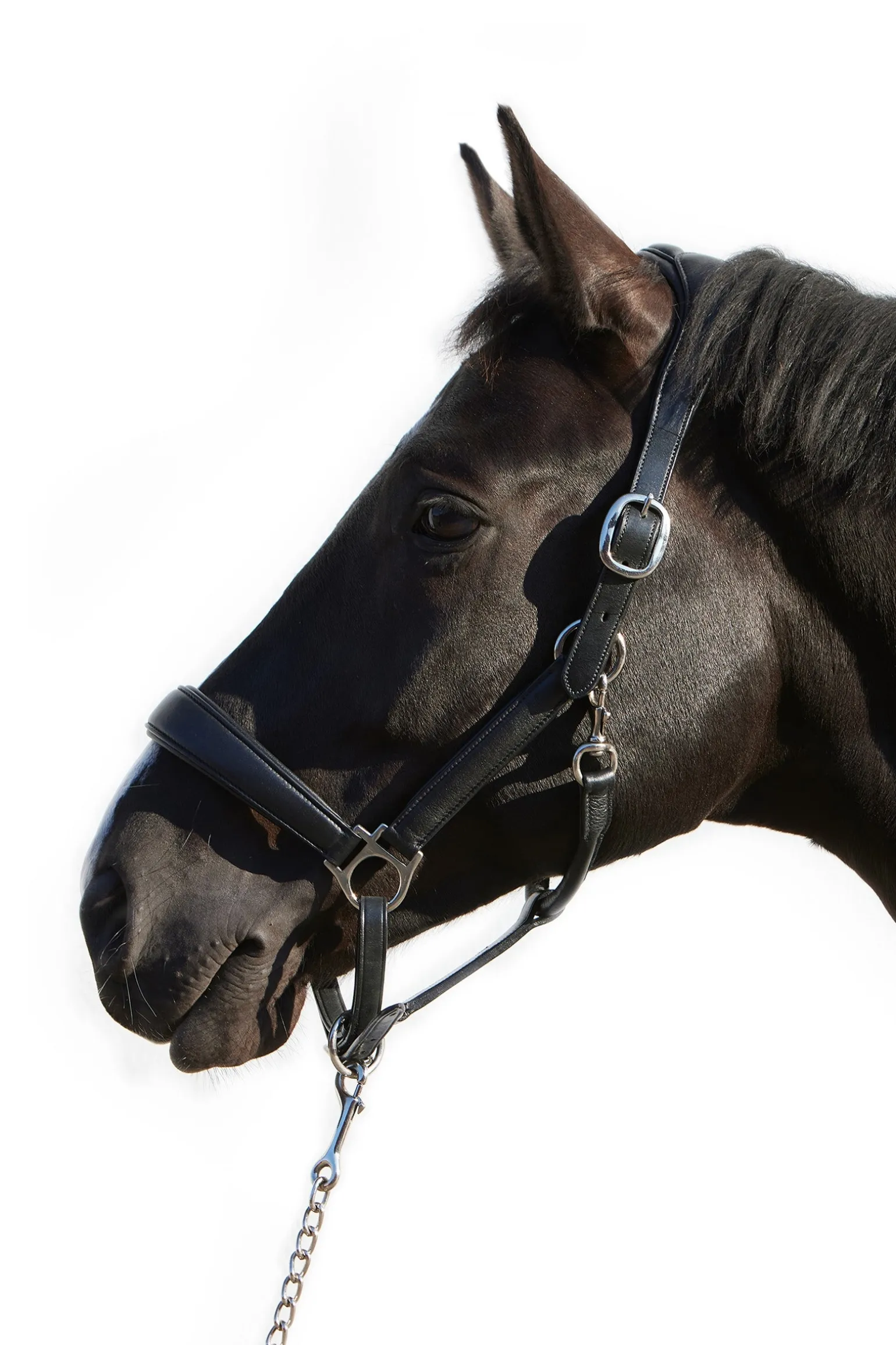 Elegantes Lederhalfter mit anatomisch geformten Genickstück.