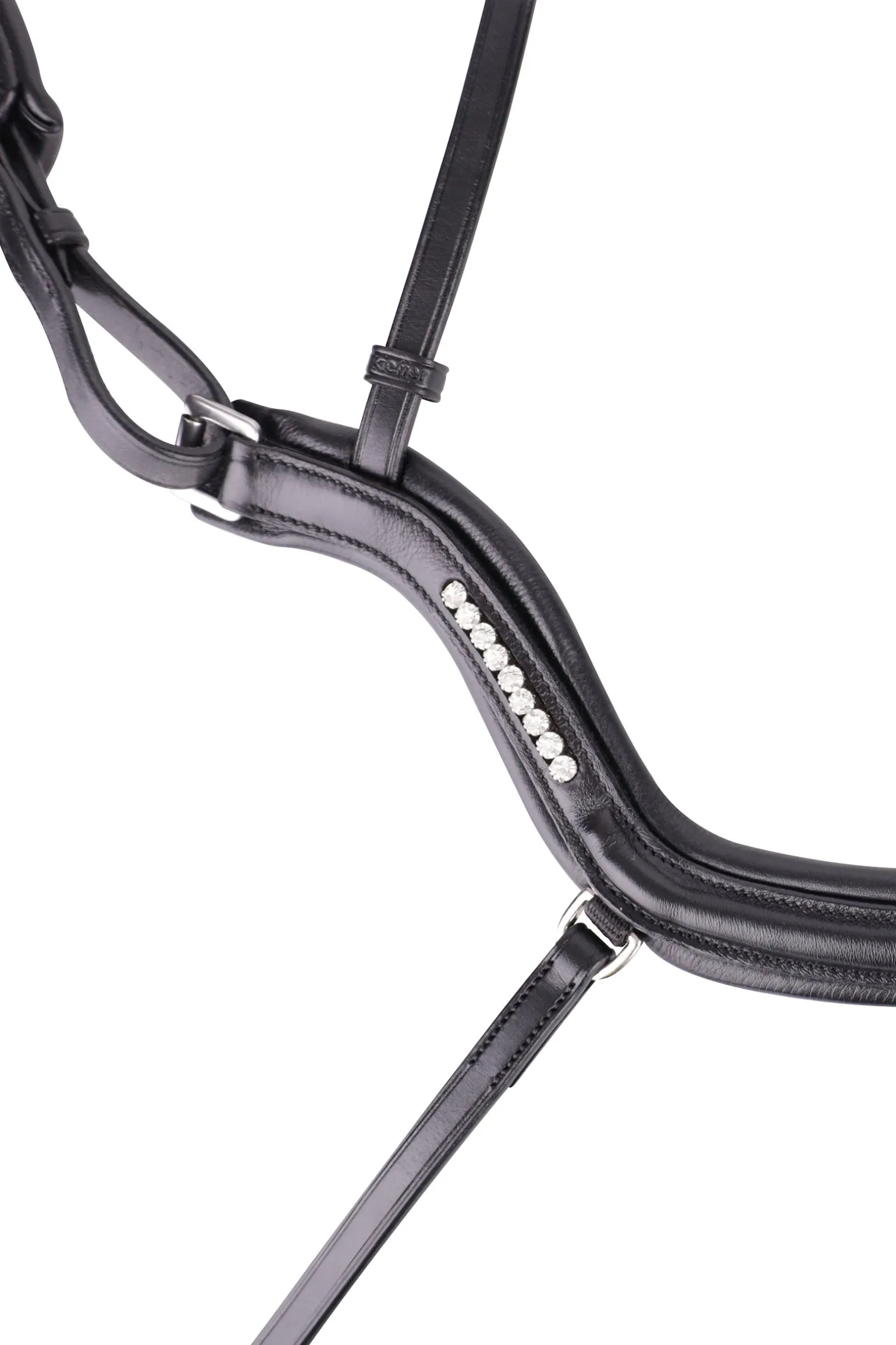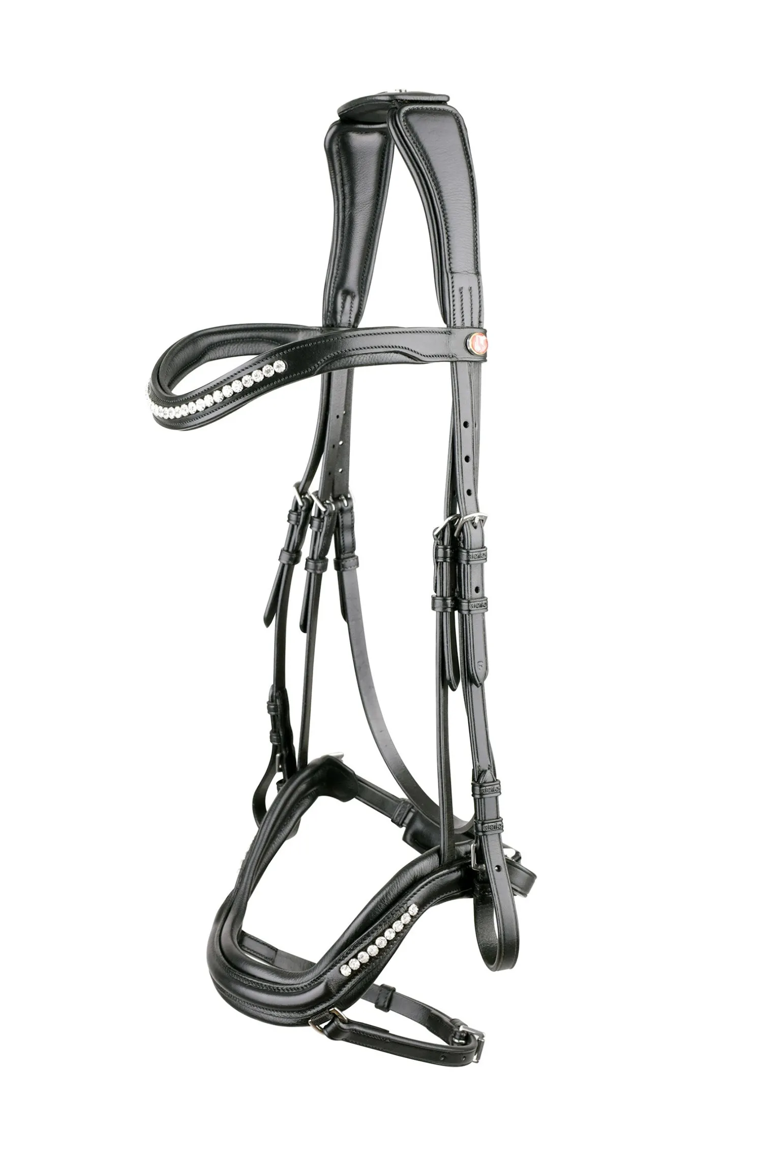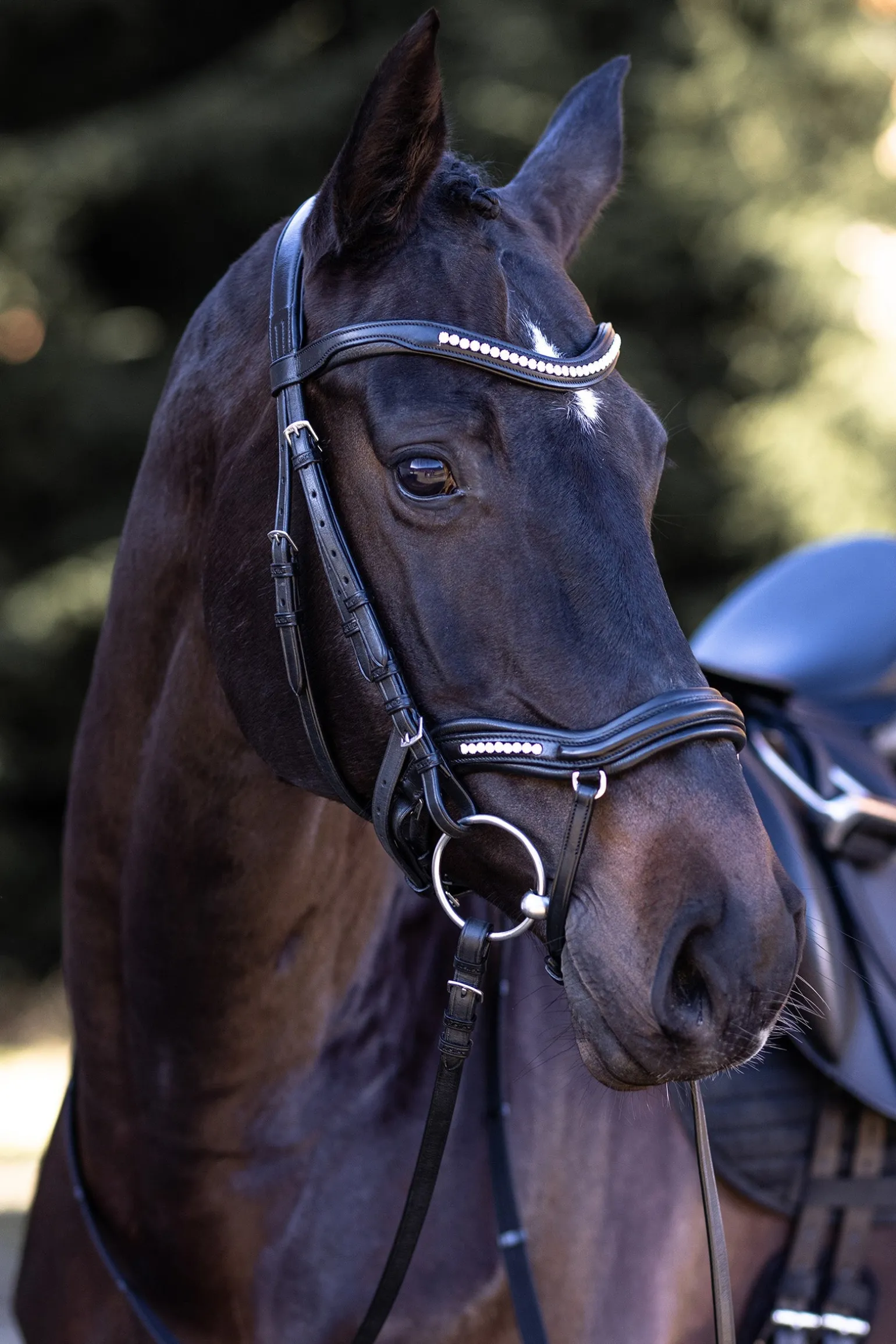 Eine atemberaubend schöne und pferdefreundliche Trense aus extraweichem Qualitätsleder: Kieffer Ultrasoft® Luna. Ein anatomisch geformtes, zweifach geteiltes Kopfstück sorgt für mehr Komfort und weniger Druck im Genick und an der Ohrmuschel. Das innovativ geschnittene Reithalfter mit seitlich versetzter Sperrriemenbefestigung sorgt für eine besonders schonende Druckverteilung auf dem Nasenrücken und verbessert die Lage der Gebissringe. Funkelnde Kristalle an Stirnband und Reithalfter machen aus der butterweich gepolsterten Kieffer Ultrasoft® Luna Trense einen pferdefreundlichen Eyecatcher.